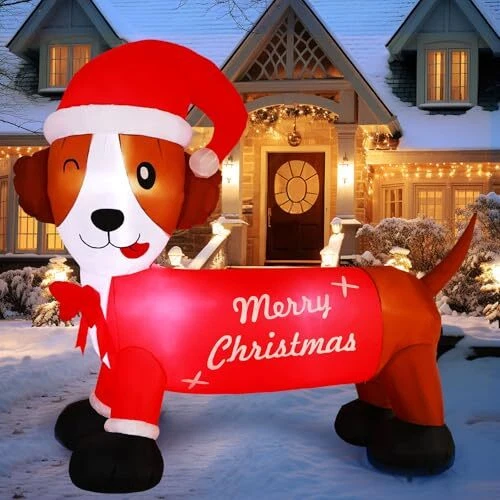 30 Days Return Policy Fast Delivery Trusted seller 7FT Christmas Inflatable Dog Outdoor Decorations with LED Lights, Lighted Blow Up Lawn Yard Garden Clearance for Family Indoor Xmas Holiday Party Decor Product Description ?【Perfect Size & Accessories】7 Feet wide christmas inflatable dog with led lights. Including a blower, 4 stakes, 2 ropes, 3m long power cord, instruction manual and a storage box. Perfect for decorating christmas, party, yard, balcony, garden, pergola, indoor and outdooor places. ?【Premium Fan for inflating Quickly】It can fully inflate in one minute as long as plug in. (Please check whether the fan is blocked if inflation is slow.) ?【Superior Airtight and Water-proof Material】The christmas inflatable outdoor decoration is made of durable Polyester, airtight excellently for full inflation and not easy to be pierced by sharp and hard things. The excellent stitching improves the durability of the Thanksgiving inflatable decorations to ensure years of usage. Soft, light and firm, wear-resistant. ?【Happy Christmas】 When the super bright led lights are lighted up, our inflatable christmas dog Decorations look eye-catching and cool. Decorate your house with our huge and adorable dog blow up yard decorations, a cute appearance and large body will attract the attention of children, neighbors or passersby. ?【Best Wishes】The power cord and rope are long enough, so you can put the item anyw you want, without any restrictions and any worries. The christmas inflatable will be a perfect and safe gift for your children or friends. ?【Customer Satisfactions】 Providing a satisfaction experience is our main priority to our customers. Please feel free to message us firstly through “contact sellers” if items can't meet your expectations or have any problem, we will help you solve it within 24hours. Then celebrations start at our unique lighted christmas inflatable dog decorations! Shipping Returns Payment Shipping Shipping is FREE to all addresses other than APO/PO boxes in the lower 48 states. All our stock ships from US-based warehouses. Shipped via USPS or UPS (depending on location and package weight) Unless stated otherwise, all orders will ship within 24-72 hours of your payment being processed. Check our feedback to see the great reviews of FAST shipping we offer. Returns As our valued customer, we will do our best to make sure the product you receive arrives to you on time and as expected. If you are not satisfied with your purchase, please contact us within 30 days of receiving your order to process a return. Payment We currently accept payment via eBay managed payments only. Once payment is cleared, we will dispatch your shipment within 1-3 business days. Please refer to the "Shipping" tab for more information regarding shipping speed to your destination.
