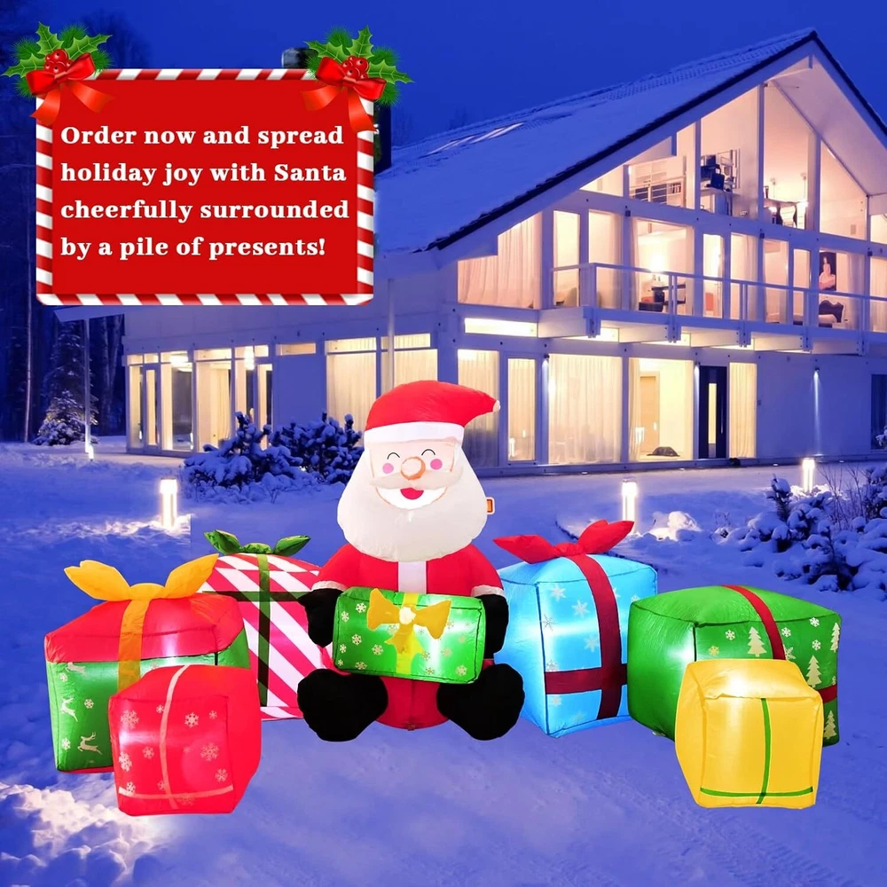 7FT Long Inflatable Santa Claus with Presents, Lighted Christmas Inflatable Gift Boxes Yard Decoration, LED-Lit Blow Up Santa for Outdoor Holiday Decor, Festive Inflatable Christmas Decorations Item Description Santa's Grand Gift-Giving Spectacle: Transform your yard into the ultimate holiday hotspot with our 7 ft inflatable Santa! With a jolly smile, Santa sits merrily among six vibrant gift boxes, each decorated with charming Christmas patterns like snowflakes, reindeer, Christmas trees, and bows. It's a scene straight out of a holiday storybook! Dazzling Holiday Lights: Make your Christmas nights sparkle with built-in LED lights that illuminate Santa and his colorful gifts. It's like having a mini light show right in your yard, spreading cheer to all who pass by. Instant Holiday Fun: Get your festive spirit soaring in minutes! Our powerful air blower and handy UL-certified adapter make setting up Santa and his gifts a breeze. With 6 ground stakes, Santa will stay put, even if he has to brave a winter wind! Built to Sleigh: Crafted from durable 190T polyester with sturdy stitching, our Christmas Santa inflatable is designed to withstand all the holiday fun. It stays inflated and jolly through the season and packs away neatly for the next year. A Present of Pure Joy: Spread the holiday magic by gifting this delightful Christmas Santa blow ups! Its playful design and generous size make it a standout present, arriving in a festive box that's perfect for Christmas lovers. › See more product details Transform your yard into a Christmas wonderland with this adorable 7-foot inflatable! Santa sits happily in the center, holding a gift, surrounded by 6 festive gift boxes, each decorated with classic holiday designs like snowflakes, reindeer, and Christmas trees! As the sun goes down, watch the magic come to life! The built-in color-changing lights will make Santa and his presents glow, creating a bright and festive scene that’ll have the whole neighborhood stopping by for a look. Perfect for day or night, this Christmas inflatable gift boxes will spread holiday cheer to kids, neighbors, and even Santa himself when he comes by! It's super easy to set up—just close the zipper, plug it in, and secure the Christmas blow-up gift boxes in place using the 6 included plastic stakes. It’ll stay put, even on chilly winter nights! When the fun’s over, simply pack it up for next year’s celebrations—easy as can be! Don’t wait to bring this joyful decoration home—it’s not just a display, it’s a holiday memory in the making! Payment We accept payment only through PAYPAL Shipping We ship products worldwide through standard express courier service, it will reach within 7 to 10 days to abroad buyers, we ship the product after recieved clear payment and give full information about shipment to the buyer Return We accept product return within 7 to 21 days from delivery date but product should be in original position and not in damaged condition,the return shipping charges will be buyer responsibility