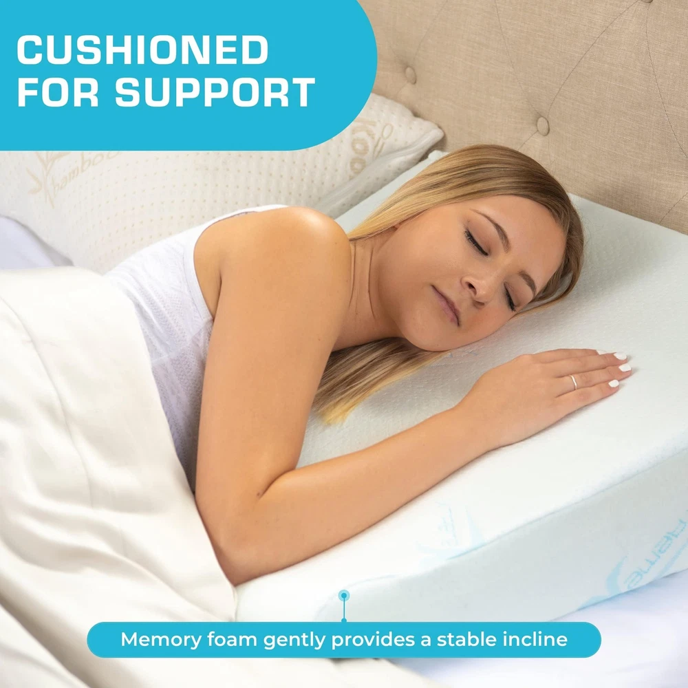 Finally, The Most Breathable & Effective Wedge Bed Pillow Is Now Available! Wait No More! Fed up with poor sleeping performances? Looking for a comfortable yet made to last bed wedge cushion? If the answer to any of those questions is yes, then you should keep on reading! Why not go for the best of the best when picking your sleeping wedge pillows? Sleep on one of our memory foam triangle pillows today and experience the difference for yourself! Promote Better Sleeping Conditions With An Wedge Pillow! One of the greatest things about this back pillow, besides its dense memory foam construction and breathable channels, is its multipurpose nature! Feel good and confident about yourself again! Here’s Why This Is The Last Wedge Bed Pillow You Will Ever Need: Premium quality breathable memory foam sleeping pillow. Zipper closure and machine washable cover. Soft, comfortable and convenient mattress pillow. It molds to your unique sleeping style! What are you waiting for? Get yours today and sleep like a baby again! Scroll Up & Click Add To Cart Now! PORTABLE PILLOW: Whether you're in bed or on the couch, this 30-degree incline bed wedge pillow will give you the cozy cushion comfort you need for a great night's sleep POTENTIAL HEALTH BENEFITS: This isn't just a great wedge pillow for sleeping, it can help you stay healthy, too! You can wake up every morning feeling refreshed SUPER SOFT: The cotton cover on our pillow wedge is soft, soothing, and safe. You won't have to stress getting the sniffles while you're snoozing FIRM, NOT FLAT: Unlike most memory foam wedges, ours won't get flat on you. It stays firm even after multiple uses to help prevent any aches or pains. Sayonara, soreness! COOLING: Sit back, relax, and stay cool! Our pillow wedge for sleeping won't leave you sweating - the cotton cover is breathable and designed to keep you nice and cool.
