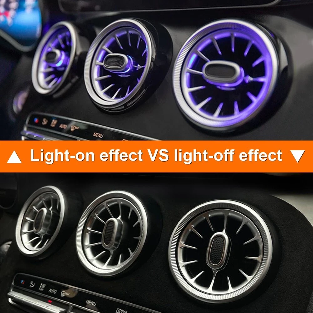 Features: 100% Brand New in Box W205 7PCS/Set 64 Colors NEW Version High Quality Plug and Play Interior Front and Rear Dashboard Air Vent with Ambient Light 1:1 Replacement; NO Modification Required Fitment: For Mercedes Benz C-Class W205 2017 2018 2019 2020 2021( 64 Colors ) - OEM design, fit original air vent position perfectly - Light color is synchronized with original ambient light - Light color and brightness can be controlled by original Command knob Package included: 7 PCS/Set Front and Rear Air Vents with Ambient Light NOTE: NOT Including Installation Guide or Manual. Professional installation is highly recommended .