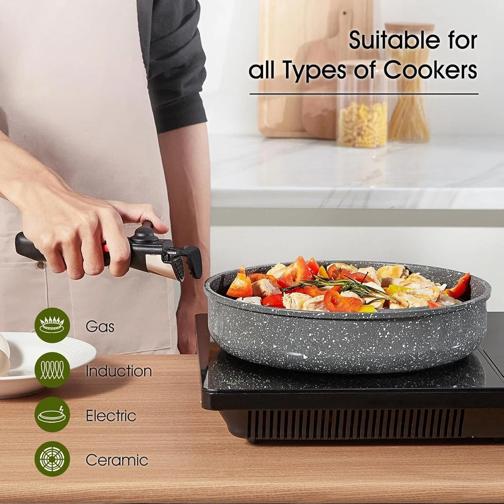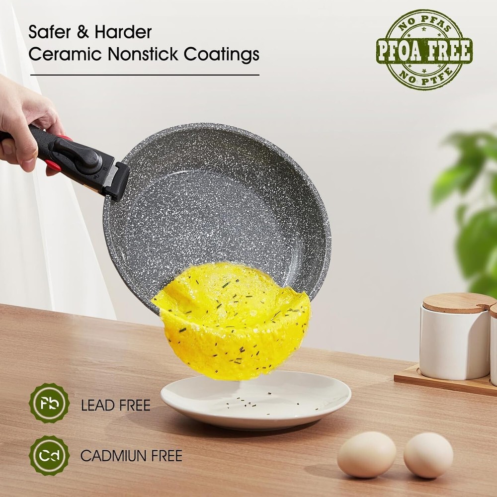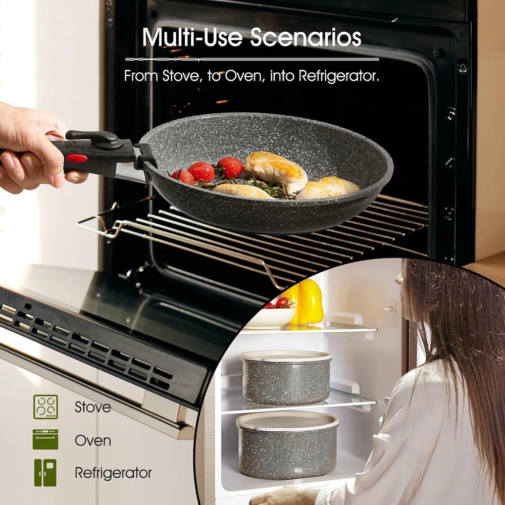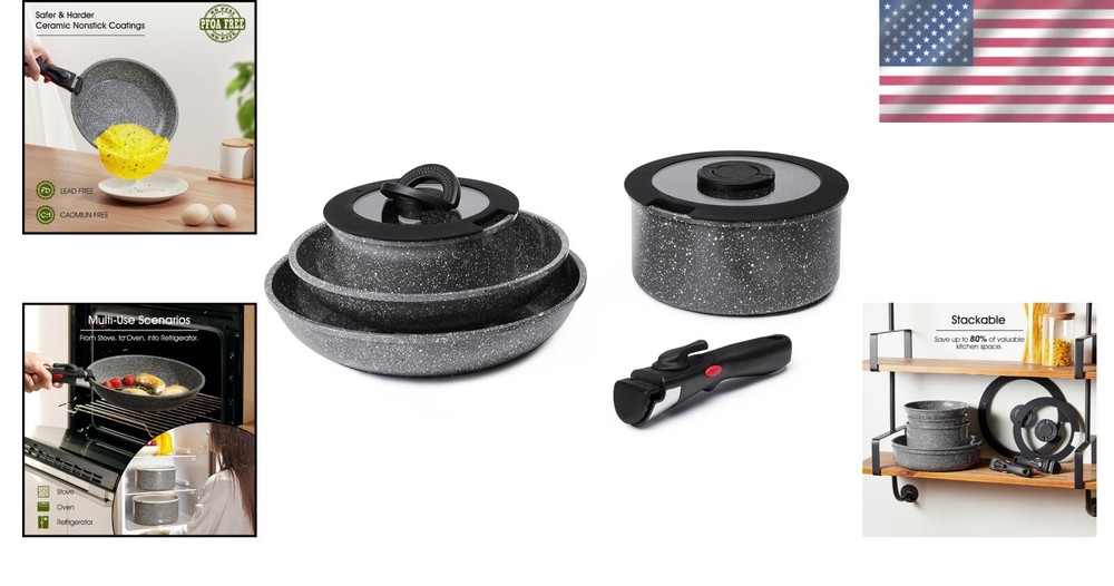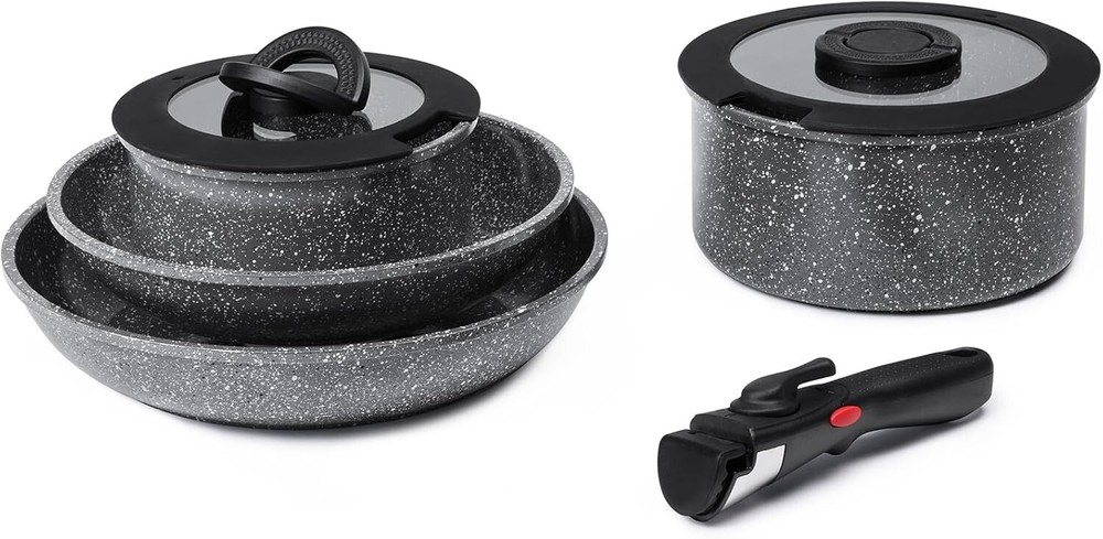 Versatile 7-Piece Ceramic Cookware Set with Detachable Handles - Induction Ready ‹ › ‹ › ‹ › ‹ › ‹ › ‹ › ‹ › ‹ › ‹ › ‹ › ‹ › Versatile 7-Piece Ceramic Cookware Set with Detachable Handles - Induction Ready Transform your culinary experience with this exquisite 7-piece ceramic cookware set, meticulously crafted from quality forged aluminum in France. Featuring advanced German GREBLON ceramic paints, this cookware set promises unparalleled durability and excellent non-stick performance for every aspiring chef. What's Included: 9.45'' Fry Pan 11'' Fry Pan 6.3'' (1.7QT) Saucepan 7.87'' (3.2QT) Saucepan 2 Glass Lids 1 Detachable Handle Key Features: Versatile Cooking Options: A complete set for everyday cooking, perfect for caravanning or outdoor adventures. Space Saving Design: Detachable handle allows for easy stacking, making it an ideal choice for small kitchens. Seamless Transition: Cook and serve effortlessly in the same pan with the innovative detachable handle. Scratch Resistant: The advanced GREBLON ceramic coating is designed to withstand metal utensils, ensuring longevity. Universal Compatibility: Safe for all stovetops—gas, electric, and induction—free from harmful chemicals like PFOA, PTFE, PFAS, lead, and cadmium. Effortless Cleanup: The non-stick ceramic surface makes cleaning a breeze and is dishwasher safe for added convenience. Why Choose Our 7-Piece Cookware Set? Elevate your cooking experience with a set that not only enhances your skills but also adds sophistication to your kitchen. This meticulously designed cookware set offers versatility, style, and the practicality of easy storage, making it the ultimate choice for both casual and professional cooks. Enjoy healthy cooking with a product that marries form and function seamlessly. Don't let ordinary cookware limit your culinary potential. Invest in elegance and efficiency today with our Versatile 7-Piece Ceramic Cookware Set. Your kitchen deserves the best! Shipping Free & Fast Shipping - We offer free shipping to most of the USA with a normal delivery time of 3-7 days. However, due to the current situation, additional delivery time (up to 3 weeks) may be required for some items. Alternative Carriers - We may use alternative carriers (e.g. USPS, FedEx, UPS, etc.) to ensure your package arrives safely and on time. Due to the use of multiple carriers, we are unable to provide a tracking number automatically. Handling Time - Orders are processed and shipped within 1-2 business days of receiving cleared payment. Shipping Restrictions - Shipping to Alaska, Hawaii, Puerto Rico, Guam, and other US territories may incur shipping charges or delivery restrictions. Please contact us before ordering, or your order can be refunded/cancelled. State Restrictions - There may be restrictions based on your state of purchase. For example, certain items may not be shipped to California due to state regulations. Contact for Tracking Updates - If you require tracking updates or have any concerns about the delivery of your order, please feel free to contact us, and we will be happy to assist you. Return 30-Day Hassle-Free Returns - We want you to be completely satisfied with your purchase. If you are not, you can return the item within 30 days of receiving it for a full refund or exchange. Easy Return Process - To start a return, simply contact us and we will provide you with a prepaid return shipping label and detailed instructions. Restocking Fee - There are no restocking fees for returns. However, the buyer is responsible for return shipping costs if the return is not due to a seller's error. Refund Processing Time - Refunds will be processed within 5 business days of receiving the returned item in its condition. Payment We accept all major credit cards, PayPal, and Apple Pay for your convenience. Your payment information is secure and encrypted to ensure a safe and seamless transaction. Please complete your payment within 3 days of purchase to avoid any delays in shipping. Feedback Your feedback is extremely important to us. We strive to provide the best products and customer service possible. If you are satisfied with your purchase, please take a moment to leave us a positive review. If you have any concerns or issues with your order, please contact us before leaving negative feedback. We are committed to resolving any problems and ensuring your satisfaction. Contact Us If you have any questions or concerns, please feel free to out to our customer support team. You can contact us through the eBay messaging system. We are available Monday to Friday, 9:00 am to 5:00 pm EST, and we will do our best to respond to your inquiry within 24 hours. Buy it now and enjoy a pleasant shopping experience! Unit Quantity: 7 piece Stove Type Compatibility: Electric,Gas,Induction Material: Aluminum,Ceramic,Forged Aluminium Features: Dishwasher Safe,Easy Clean,Non-Stick,Oven-Safe,Scratch-Resistant,Detachable Handle Set Includes: Frying Pan,Saucepan,Glass Lid,Glass lids,6.3'' (1.7qt) saucepan,7.87'' (3.2qt) saucepan,9.45'' fry pan,11'' fry pan Type of Oven: Electric,Gas,Induction,Oven Surface Coating: Ceramic Color: Ash Grey Type: Cookware Set Item Diameter: 9.45 in Shape: Round Number of Items in Set: Seven-Piece Item Depth: 5.94 in Heat Resistance: Up to 350°F Item Weight: 8 lb Unit Type: lb