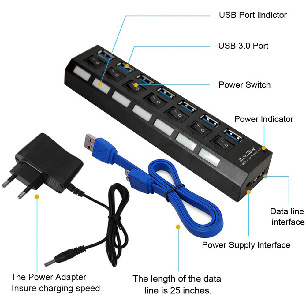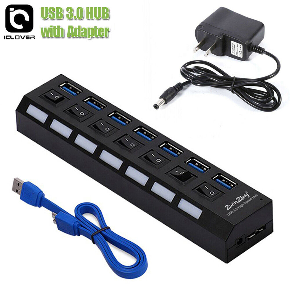 eBay 7 Port USB 3.0 Hub Splitter Adapter High Speed Extension For PC Laptop Mac Desktop USB 3.0 Hub(Support charging) Features: Hot plug & play USB device Fully compatible with USB specification version 3.0 LED indicator for power status ON/OFF switches activate or deactivate individual ports Designed with 7-port this compact USB3.0 high-speed hub is small enough for travel, and cable enough to meet your connectivity needs Cable: About 25 in Date Transfer Rate: Up to 5Gbps Compatible: WindowsXP /Vista/7 and MAC OS 9.1 or higher Size: 6.5x1.4x0.8in (L×W×H) Compliant with USB version: USB1.0 reaches 1.5Mbps (low speed). USB1.1 up to 12Mbps (full speed). USB2.0 reaches 480Mbps (high speed). USB3.0 reaches 5Gbps (speeding). 5gbps speed corresponding usb3.0 device Package includes: 1 x USB 3.0 7 Ports Hub OR 1 x USB 3.0 7 Ports Hub+1 x Po wer OR 1 x Power Adapter CONTACT US PAYMENT METHODS SHIPPING & HANDLING RETURNS / WARRANTY CONTACT US Contact Us We have always been trying to provide the best service and reliable products for every customer, however, accident may happen sometimes, please contact us to resolve any issue before leaving a negative feedback. Any question please click to contact us! Thanks for your visiting and purchasing! payment methods Payment Methods ● We only accept Paypal. Credit card payment can be made via Paypal. ● If you are paying through PayPal using eCheck, your item can be shipped only after eCheck has cleared ( it may take 5-10 working days to be cleared). ● All payments are expected within 7 days after the last winning auction is closed. A non-payment dispute will be opened if full payment is not received. ● Cancelling Your Order: If you happen to change your mind after placed the order, please send us the email to cancel it, we will do our best to help you. Shipping & Handling Shipping & Handling 1. W e will ship to worldwide from USA via USPS, UPS . 2. Ite m will be packed safely and protected by bubble sheets . All t he parcels have tracking number. 3. Items are generally shipped out within 24-48 hours after your payment has been cleared (Sat. & Sun. & Public holiday excluded.). 4. We only ship to the confirmed address provided by ebay. Before you pay, please make sure your address matches the address you would like us to ship to. 5. If you need the item urgently, please contact us for detail before purchase. ● UNITED STATES SHIPPING We ship our package with USPS first Class, O n av erage USPS first c la ss ta kes 2 -7 days for delivery. ● W ORLD WIDE SH I PPING We ship by USPS Mail, generally take 7-15 business days for delivery. Note: If you don't receive the items after 15 days, please contact me as soon as you can. I will do my best to resolve the problems. Returns / Warranty Warranty and Return : 60 Days Money Back Guarantee Return Policy for most products We offer a 100% satisfaction guarantee. In case you won't be 100% satisfied with your purchase, simply send an eBay Message to our customer service team . • You changed your mind and wish to request a return. • Your product was damaged during transit. • You are not satisfied with any product that you have purchased. • All items must be returned in exact condition as sent. All returns must be directed through Customer Service. Please do not return or post items before obtaining instructions from us. If you do, there is a risk that your returned item may not be identifiable and accepted. Please contact our customer service team firstly. SALES & EVENTS On May 3, 2024 at 06:20:54 PDT, seller added the following information: