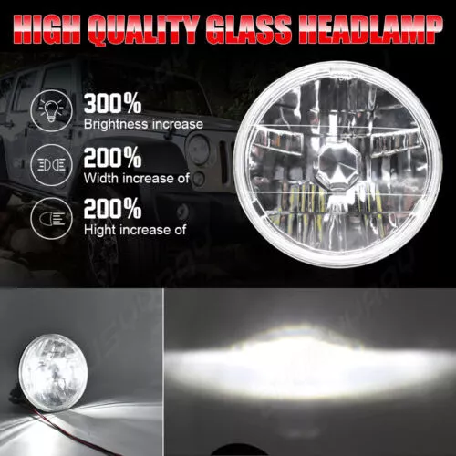 7" Inch Universal Round Cut Chrome Front Clear Glass Lens Diamond Headlights Kit 7" Inch Round Headlight Housing *Black Chrome housing with clear lens design , Lens is made out of clear glass. *Enhance visibility during night time, heavy rain, snow, or dense fog. Precision optics offers a highly controlled concentration of light to enhance visibility. *Direct replacement, easy installation. *High quality O.E grade materials to withstand the most rigorous weather *Compatible For Manufacturer Headlight Part Numbers # H6014 / H6015 / H6024 *These headlights are set up for high and low beams, just simply plug them into your original wiring. *This design is perfect replacement for old sealed-beam round headlight on any vehicle that uses standard 7” bucket. H4 HB2 9003 LED Headlight Bulbs Specifics -Color: 6000K Cool White -Power Consumption: 110 Watt -Luminosity: 11,000 LM -360 Degree / P2 Series CSP Chip Perfect Beam Angle -H4 - Dual Beam Function (You will have HIGH AND LOW!) -500% Brighter than Stock Halogen -Built in IC Circuit (Current Regulator)-Prevents LED Damage From Voltage Variations & Spikes. -Lifespan: 50,000 Hours -Operating Voltage: DC 12V / 24V -Amperage: 1.9A - 2.9A -Maintenance free, Waterproof IP67, Shockproof -Warranty 5 years Top Features 300% Brighter than Halogen: 110W 6000K cool white, 1w=100lm, with clear visibility and perfect beam pattern, so you can enjoy good vision while driving at night. Super Focused Beam Pattern: F5plus led bulbs with 1.0mm ultra-thin centered light emitting. No dark spots or foggy light, do not blind oncoming traffic. 10mins Easy Installation: The LED bulb’s almost 1:1 design as halogen. Plug and play. No other tools are needed 360° Adjustable Beam Pattern: Adopts 360° adjustable locker ring to ensure the best beam pattern. except H1, H3, 880, PSX26W 50,000 hours Lifespan: P2 plus comes with a copper base board, cold pressed aluminum heat sink and 12,000rmp cooling fan. Better solve the dimming or over heated of led bulbs. Information: a)Compatible List can not show up all Car model. Please check the Correct item size of your vechicle. it will work and fit.Thank you! b)If you are unsure the item fit or not , please do remember send message to tell us your car make, model, year and other information which is helpful to check the item fit or not.For example: For 2004 Ford F 150, high/low beam For 2015 RAM 1500 with projector-type, high beam For 2019 Ford F 150 ,XL Crew Cab Pickup 4-Door 2.7L Application: For Any Vehicle models with 7 inch Round headlight,such as: For Jeep Wagoneer (1963-1978) For Jeep CJ-7 (1976-1986) For Jeep CJ-8 Scrambler (1981-1985) For Jeep Wrangler TJ 2 Door (1997~2006) For Jeep Wrangler LJ unlimited (4 Door) (2004~2006) For Jeep Wrangler JK 2 Door (2007~2018) For Jeep Wrangler Unlimited JK 4 Door (2007~2018) For Chevy Camaro (1969-1981) For Mazda Miata MX5 MX-5 (1990-1997) For Honda Civic (1976-1981) For Ford Custom 500 (1971/1976) For Ford F100 Pikcup (1969-1974) For Ford F150 (1975-1979) For Toyota Corolla (1969-1980) For Toyota LandCruiser (1979-1987) For Toyota Pickup (1979-1981) For Oldsmobile Omega (1974-1979) For Plymouth Barracuda (1964-1974) For Plymouth Valiant (1963-1976) For Land Rover Defender 90 (1997) For Land Rover Defender 90 (1995) For Land RoverRange Rover County Classic Sport Utility 4-Door 1995 For Land Rover Range Rover (1987-1995) For Jeep Wrangler (1997-2015) For Land Rover 90/110 1983 to 1991 (including 2.5N/A, 2.5 Turbo, V8) For Land Rover 90/110 Defender 200 Tdi For Land Rover 90/110 Defender 300 Tdi For Land Rover 90/110 Defender Td5 For Land Rover 90/110 Tdci For Hummer H1 H2 (2003~2009) (H2 needs 9007 male to H4 female adapter, package not included) For Lada 4x4 urban Niva For UAZ Hunter For Suzuki Samurai For Kenworth T-2000 1998-2010(Buyer Note, Our Headlight plug is H4,H4-H13) For Puch G and Mercedes G models For 1990-1997 Mazda Miata For 1976-1977 Mazda Mizer For 1979-1985 Mazda RX-7 For 1976-1977 Mazda 808 etc... etc... (Note: 2* T10/501/W5W bulbs will be given to purchase this kit ) (T10/501/W5W Application: Interior Door Light Bulb / side Marker Light Bulb rear / front Tail Light Bulb Inner / License Light Bulb / Glove Box Light Bulb Trunk or Cargo Area Light Bulb/ Dome Light Bulb Check Engine Light Bulb / Courtesy Light Bulb / Parking Light Bulb Center High Mount Stop Light /Dome Light Bulb / Map Light Bulb Door Mirror illumnination light bulb) On Nov 11, 2024 at 03:21:39 PST, seller added the following information:
