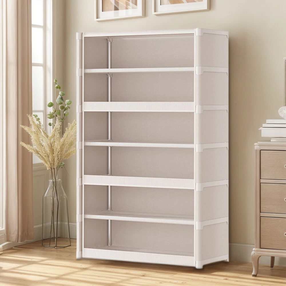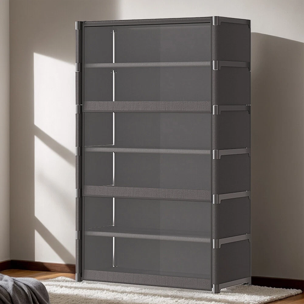6 Tier Metal Shoe Rack Space Saving Storage Organizer Shelf Shoe Tower W/Pockets
