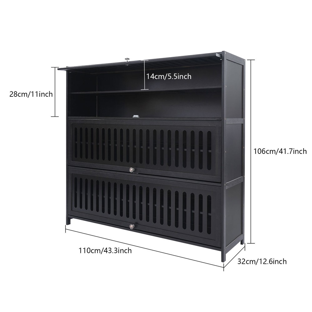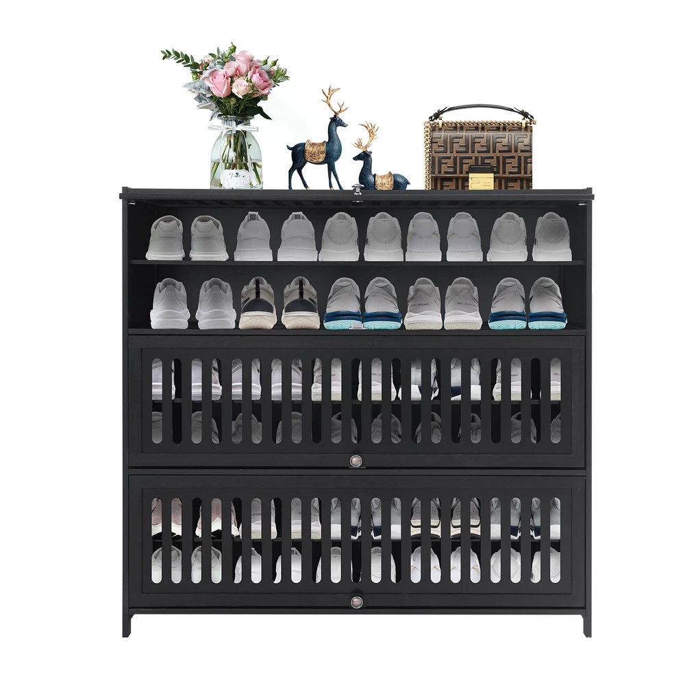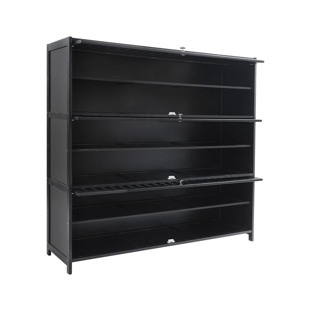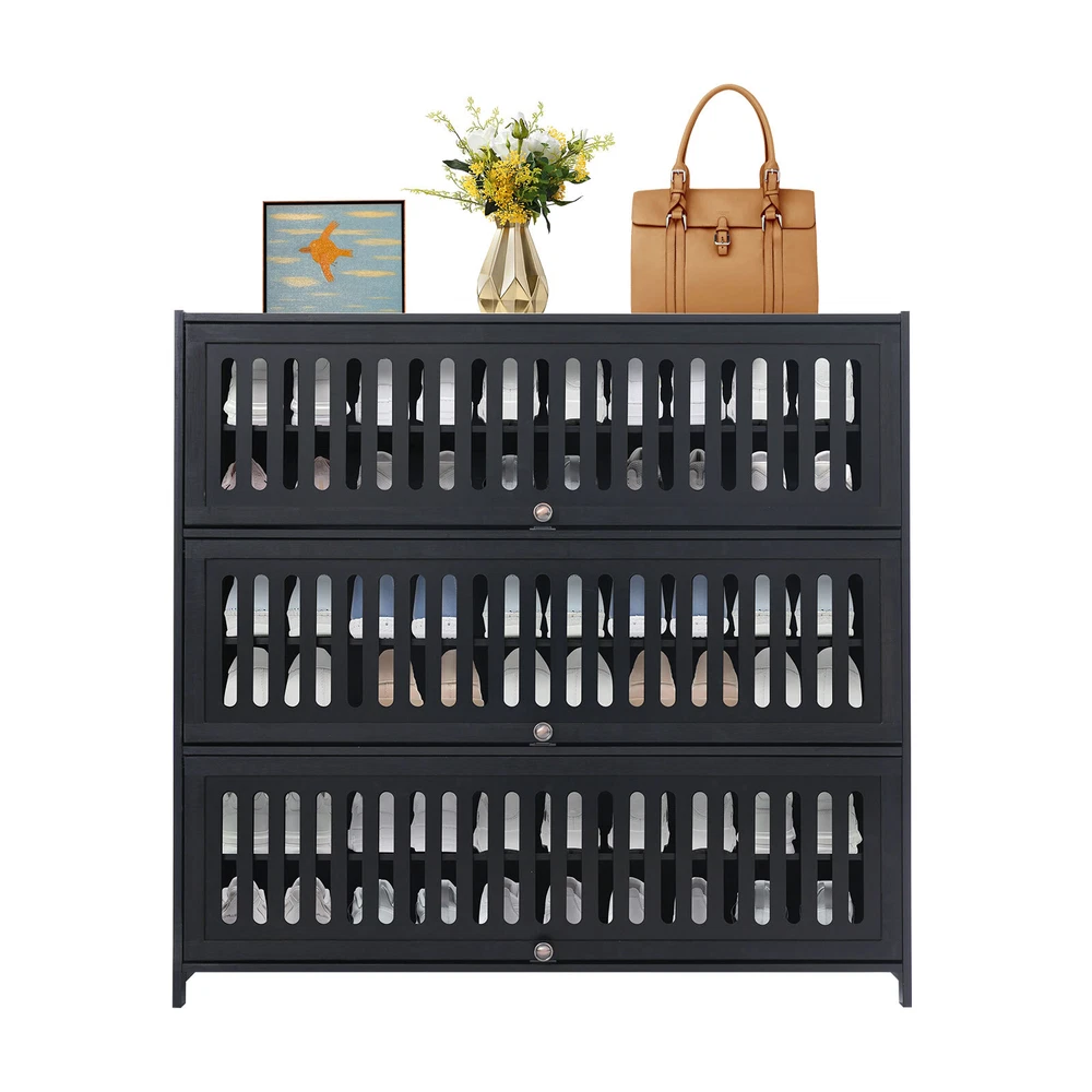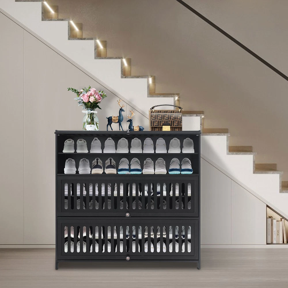 This shoe cabinet is a game-changer for small spaces! The flip-up doors save room, and the seven tiers hold all my shoes neatly. Assembly was straightforward, and the black finish looks sleek and modern. The bamboo and composite board feel sturdy, and each shelf holds a good amount of weight. Perfect for keeping my entryway organized without sacrificing style. Love how it maximizes vertical space—great buy!