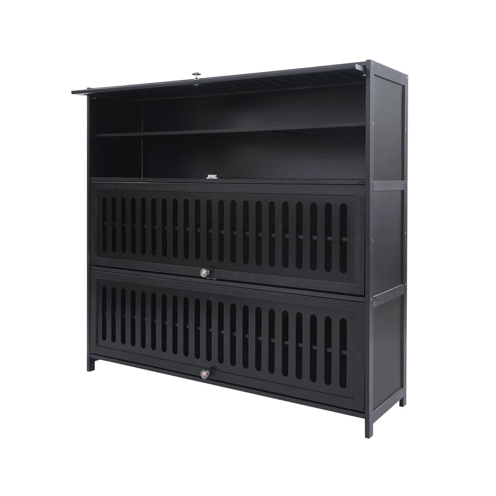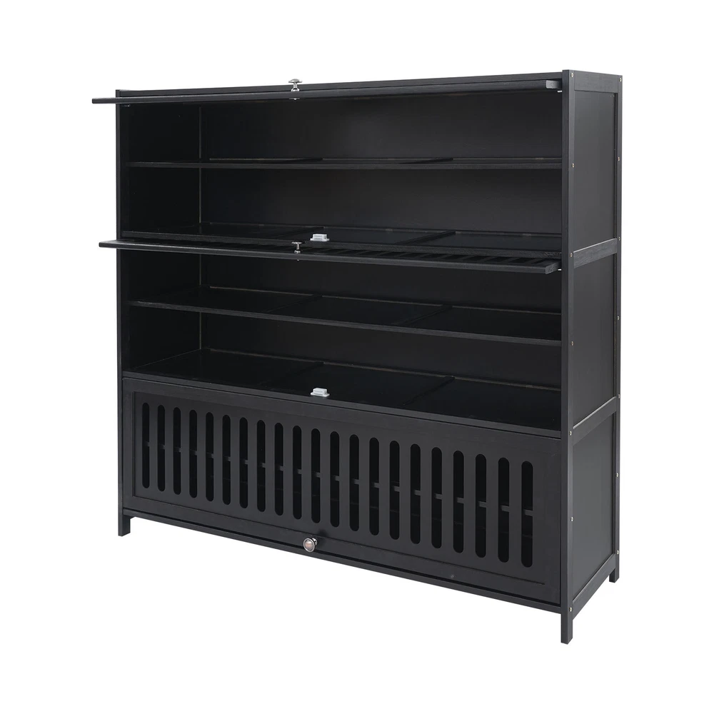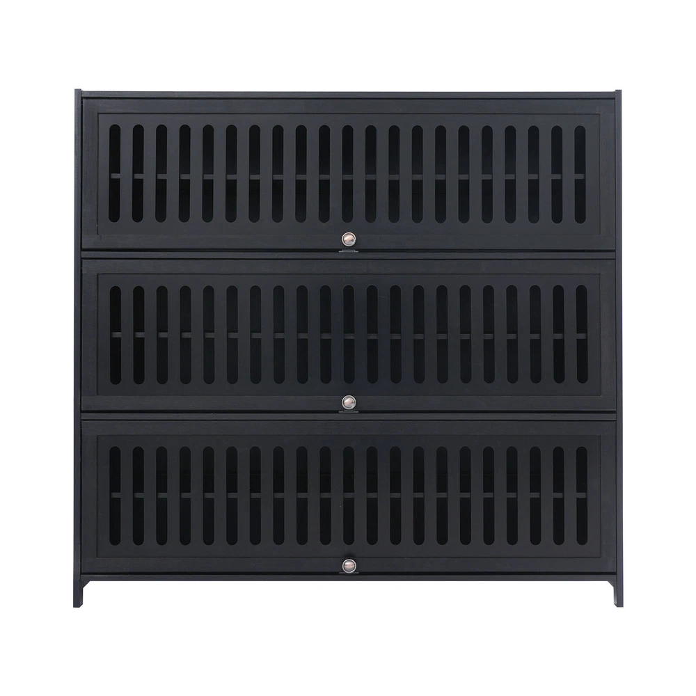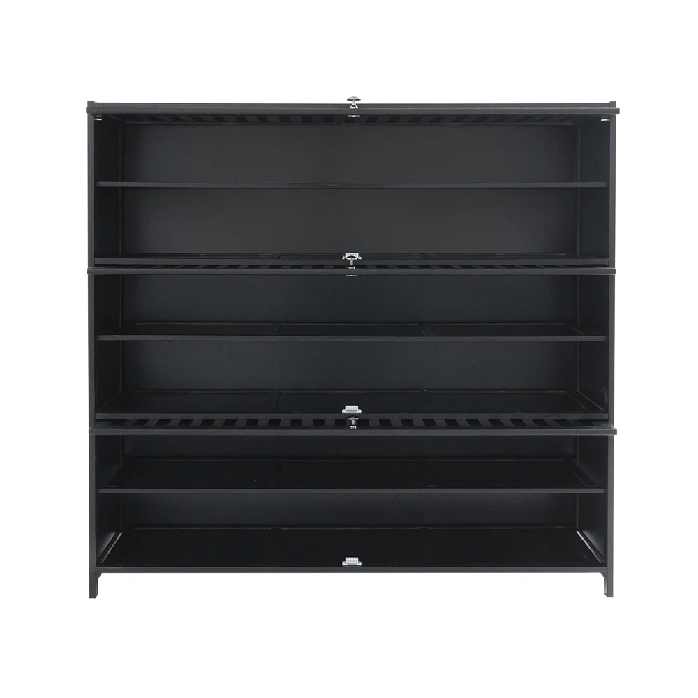 This shoe cabinet is a game-changer for small spaces! The flip-up doors save room, and the seven tiers hold all my shoes neatly. Assembly was straightforward, and the black finish looks sleek and modern. The bamboo and composite board feel sturdy, and each shelf holds a good amount of weight. Perfect for keeping my entryway organized without sacrificing style. Love how it maximizes vertical space—great buy!