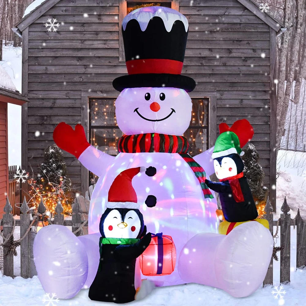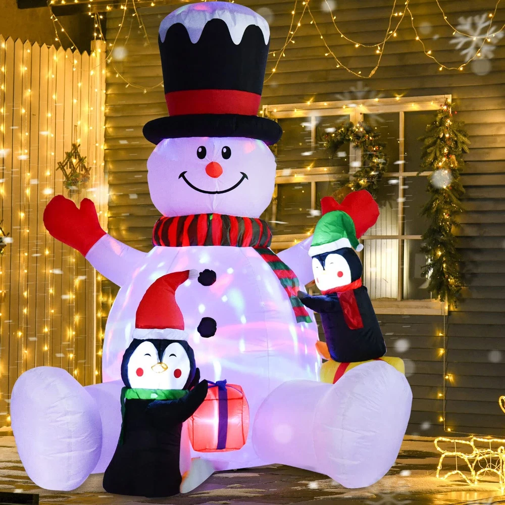 7ft Inflatable Christmas Snowman with Penguins, Rotating 7 Color Changing Led...