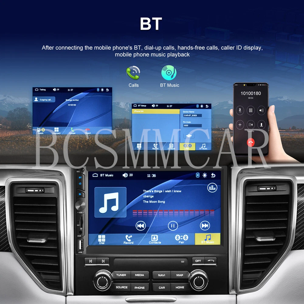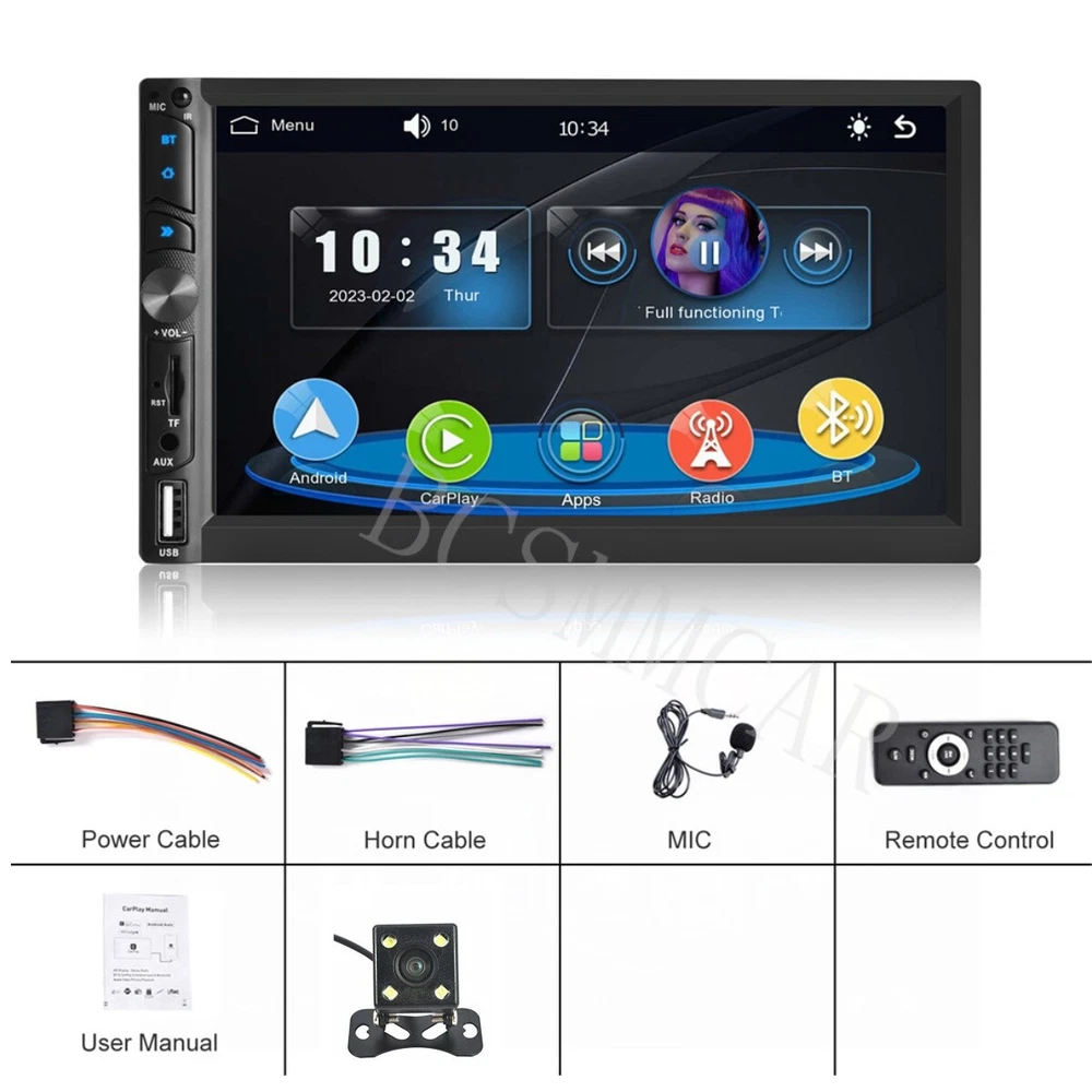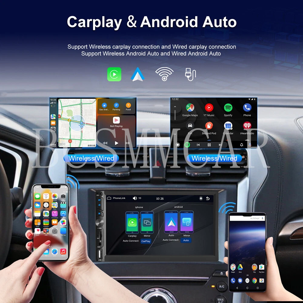 Product View Detail 7 Inch 2 din Car Radio MP5 Bluetooth Mirror Link Multimedia Player for Wireless Carplay with microphone +4LED Rear Camera Kit Note:Not is universal , Please check with your car panel's size !!! Features: ● Wireless Carplay: You can choose wired connection or wireless connection to carplay, connect to Apple mobile phone, access mobile phone address book, mail, notification, map navigation, music, video and other information, and realize voice control. ● Wireless Android auto: The Wireless Android auto car system can closely integrate the user's Android phone and player, and realize navigation, make calls, send and receive information, listen to music and other operations through data cable connection. ●Screen: 7-inch high-definition video playback. ●Mirror Link: Support Android/ Iphone Mirror Link,through phone's original USB line Can synchronized to the on-board screen,which can support Apple mobile phone 13.4 version, Android mobile phone version 10.1. More than this version or does not support mobile phones, need to upgrade the software after the original factory debugging. ●Built-in Bluetooth function, can connect to phone, and handsfree calling, more safer when driving car, bluetooth music play. ●Various UI theme wallpapers to choose from, switch styles at any time, bringing a different visual experience. ●FM radio: You can listen to real-time traffic, news boradcasts, weather forecasts, etc receiver 18 preset Store Function. ●Support Steering wheel control function : Quickly switch functions which you want with your car's steering wheel,more convenient. ● Rear view camera input function(included 4LED Camera): Need to choose the camera, if connect to a car backup camera, the car stereo monitor will turn to rear view reversing details automatically(require optional). ● Colorful backlight settings:Support seven color backlight,you can select your favorite color in the setup menu decorate your car. ●AUX audio input interface supports external MP3, mobile phones, music players, etc. ●Multi-function USB: support USB input to play music, as well as high current USB output to be charged mobile phone Specification: System: F133 Size: 7.0 inches Voltage: 12V Audio amplifier: 7388 Bluetooth: 5.1 Screen resolution: 1024*600 Output power: 4*45W USB interface: USB2.0 Reversing input: CVBS&AHD720 Radio range: FM 87.5-108.0MHZ (Europe) External microphone: support DVR: Support (designated USB recorder) Working temperature: -20℃ ~ 70℃ Factory Settings Key: 113266 Audio format: MP3/WMA/WAV/APE/FLAC Video format: MKV/AVI/TS/TP/MP4/M4V Max Bit Rate (50Mbps-80Mbps) Languages: English, French, Spanish, Russian, Italian, Portuguese, German, Polish, Chinese (simplified), Turkish, Arabic, Hebrew Package Included: 1 x car player 1 x Power Cable 1 x Horn Cable 1 x Remote Control 1 x external microphone 1 x User Manual 1 x 4LED Rear camera Shipping Policy Payment Method Returns Policy Shipping Policy Payment Method Returns Policy Copyright © 2017 DataCaciques Home Payment Shipping About us Contact us BCSMMCAR Store Categories Store Categories Other Product View Detail 7 Inch 2 din Car Radio MP5 Bluetooth Mirror Link Multimedia Player for Wireless Carplay with microphone +4LED Rear Camera Kit Note:Not is universal , Please check with your car panel's size !!! Features: ● Wireless Carplay: You can choose wired connection or wireless connection to carplay, connect to Apple mobile phone, access mobile phone address book, mail, notification, map navigation, music, video and other information, and realize voice control. ● Wireless Android auto: The Wireless Android auto car system can closely integrate the user's Android phone and player, and realize navigation, make calls, send and receive information, listen to music and other operations through data cable connection. ●Screen: 7-inch high-definition video playback. ●Mirror Link: Support Android/ Iphone Mirror Link,through phone's original USB line Can synchronized to the on-board screen,which can support Apple mobile phone 13.4 version, Android mobile phone version 10.1. More than this version or does not support mobile phones, need to upgrade the software after the original factory debugging. ●Built-in Bluetooth function, can connect to phone, and handsfree calling, more safer when driving car, bluetooth music play. ●Various UI theme wallpapers to choose from, switch styles at any time, bringing a different visual experience. ●FM radio: You can listen to real-time traffic, news boradcasts, weather forecasts, etc receiver 18 preset Store Function. ●Support Steering wheel control function : Quickly switch functions which you want with your car's steering wheel,more convenient. ● Rear view camera input function(included 4LED Camera): Need to choose the camera, if connect to a car backup camera, the car stereo monitor will turn to rear view reversing details automatically(require optional). ● Colorful backlight settings:Support seven color backlight,you can select your favorite color in the setup menu decorate your car. ●AUX audio input interface supports external MP3, mobile phones, music players, etc. ●Multi-function USB: support USB input to play music, as well as high current USB output to be charged mobile phone Specification: System: F133 Size: 7.0 inches Voltage: 12V Audio amplifier: 7388 Bluetooth: 5.1 Screen resolution: 1024*600 Output power: 4*45W USB interface: USB2.0 Reversing input: CVBS&AHD720 Radio range: FM 87.5-108.0MHZ (Europe) External microphone: support DVR: Support (designated USB recorder) Working temperature: -20℃ ~ 70℃ Factory Settings Key: 113266 Audio format: MP3/WMA/WAV/APE/FLAC Video format: MKV/AVI/TS/TP/MP4/M4V Max Bit Rate (50Mbps-80Mbps) Languages: English, French, Spanish, Russian, Italian, Portuguese, German, Polish, Chinese (simplified), Turkish, Arabic, Hebrew Package Included: 1 x car player 1 x Power Cable 1 x Horn Cable 1 x Remote Control 1 x external 