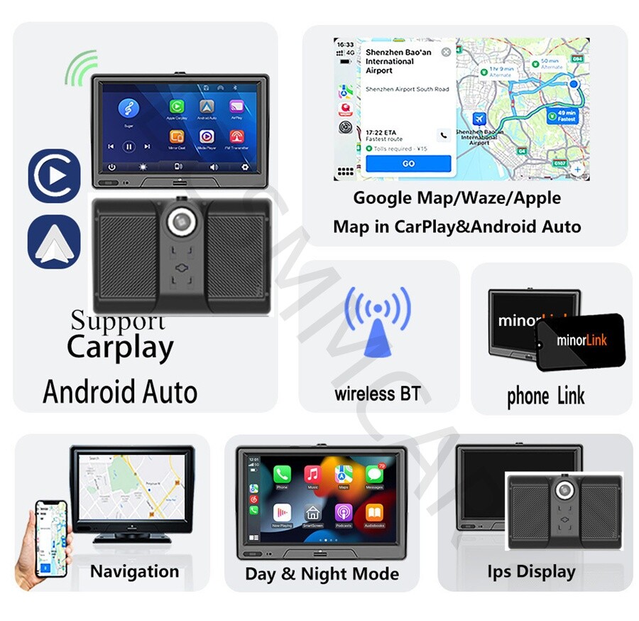 Product View Detail 7in Screen Car Dash Cam DVR Recorder Monitor Wireless CarPlay Android Auto Stereo Carplay Navigation Multimedia Player Add our listing to Watchlist Or Add to Cart , you will get more discount 7 Inch Smart ScreenPlayer System: Linux based system development; Support: wireless Carplay / Android auto / AutoLink / Airplay TFT Display :7" IPS 1024*600 resolution Touch Screen :2.5D Capacitive Touch Screen Use the navigation:Google Map/Waze/Apple Map in Carplay& Android Auto Bluetooth:BT 5.0 Built-in microphone for Siri function and Bluetooth calls WiFi:2.4G+5G Speaker:3W/4Ω Working Voltage:12V-24V FM Radio:87.5MHz-108MHz U disk:Maximum to 64GB Micro SD:Maximum to 64GB AUX IN:3.5MM Backup Camera in:2.5MM Reversing image: CVBS interface, extended to support AHD reversing(Rear camera not include) Multi-Language:English, Korean, Russian, Japanese,German, Italian, Arabic, French, Portugal, Audio Source Output Via FM Transmitting And AUX:2 Ways connection to transfer the audio from original car speaker Support bluetooth calls, bluetooth music and universal recording synchronization; Capacitive Screen multi-point touch, full screen touch function; Support FM transmission, 8 frequency points; It is suitable for all models, including trucks and buses. Function Support Wireless Apple CarPlay Support Wireless Android Auto Support Wireless Airplay Support Wireless Autolink DVR Full color HD Camera Features Noise Ratio ( SNR):≥69dB Horizontal viewing angle:160° TV System: PAL/NTSC Waterproof Rating: IP68 Minimum illumination: 0.01Lux Power Supply: DC12V Operating Temperature: -30°C~+80°C Pixel:2K 1600P Night vision images: Automatic gain control, automatic white balance, automatic backlight compensation Loop recording:1 minute/3 minutes/5 minutes G-sensor:support Shipping Policy Payment Method Returns Policy Shipping Policy Payment Method Returns Policy Copyright © 2017 DataCaciques Home Payment Shipping About us Contact us BCSMMCAR Store Categories Store Categories Other Product View Detail 7in Screen Car Dash Cam DVR Recorder Monitor Wireless CarPlay Android Auto Stereo Carplay Navigation Multimedia Player Add our listing to Watchlist Or Add to Cart , you will get more discount 7 Inch Smart ScreenPlayer System: Linux based system development; Support: wireless Carplay / Android auto / AutoLink / Airplay TFT Display :7" IPS 1024*600 resolution Touch Screen :2.5D Capacitive Touch Screen Use the navigation:Google Map/Waze/Apple Map in Carplay& Android Auto Bluetooth:BT 5.0 Built-in microphone for Siri function and Bluetooth calls WiFi:2.4G+5G Speaker:3W/4Ω Working Voltage:12V-24V FM Radio:87.5MHz-108MHz U disk:Maximum to 64GB Micro SD:Maximum to 64GB AUX IN:3.5MM Backup Camera in:2.5MM Reversing image: CVBS interface, extended to support AHD reversing(Rear camera not include) Multi-Language:English, Korean, Russian, Japanese,German, Italian, Arabic, French, Portugal, Audio Source Output Via FM Transmitting And AUX:2 Ways connection to transfer the audio from original car speaker Support bluetooth calls, bluetooth music and universal recording synchronization; Capacitive Screen multi-point touch, full screen touch function; Support FM transmission, 8 frequency points; It is suitable for all models, including trucks and buses. Function Support Wireless Apple CarPlay Support Wireless Android Auto Support Wireless Airplay Support Wireless Autolink DVR Full color HD Camera Features Noise Ratio ( SNR):≥69dB Horizontal viewing angle:160° TV System: PAL/NTSC Waterproof Rating: IP68 Minimum illumination: 0.01Lux Power Supply: DC12V Operating Temperature: -30°C~+80°C Pixel:2K 1600P Night vision images: Automatic gain control, automatic white balance, automatic backlight compensation Loop recording:1 minute/3 minutes/5 minutes G-sensor:support Shipping Policy Payment Method Returns Policy Contact US Shipping Policy All items will be checked before packing. All items are new and of high quality. Item will be shipped within 1 business days upon receipt of payment, excluding weekends and public holidays. If to USA,we will ship your order by USPS,it will take about 8-12 working days to you,and you can track it on line. If to other country,we will ship your order by China Post or Singapore Registered Air Mail,it will take about 14-21 working days to you,you aslo can track it on line. Delivery time is about 14-28 business days and it may take up to 8 weeks . Payment Method We accept payment by PayPal only ! Payment should be completed within 5 days after buyer places the order,or else an unpaid case will be opened in order to cancel the transaction. If you can not pay in time, please contact us. e-check from PayPal will only be processed once the payment clears. All of the items will be shipped to buyer's EBAY address,please confirm your address on Ebay before you buy.Your order will be usually shipped out the same or next business days once the payment is made and cleared. Returns Policy 30-day Warranty with Exchange for defective, malfunctioned, incorrect or parts-missing items. Please notify us and return the item with all parts and accessories packed and marked "FOR EXCHANGE" within 14 days of receipt. If defective, malfunctioned or parts-missing items are no longer available, a refund may be issued. All returning postage costs will be the responsibility of the buyers under all circumstances. Contact US If you encounter any problems about anything, please feel free to contact us and we will do our best to assist you solve the issue. If you are not satisfied in anyway, please feel free to let us know and give us a second chance to correct it before you decide to leave any neutral or negative feedback. Please contact us through eBay link if you have any questions. We will reply you within 24- 48 hours. Please check you spam mail if no response for 48 hours. Home Payment Shipping About us Contact us
