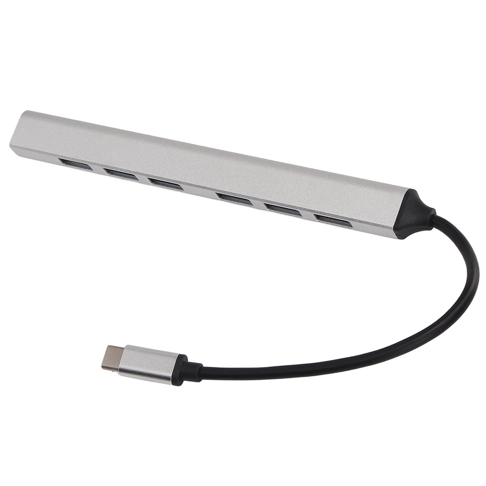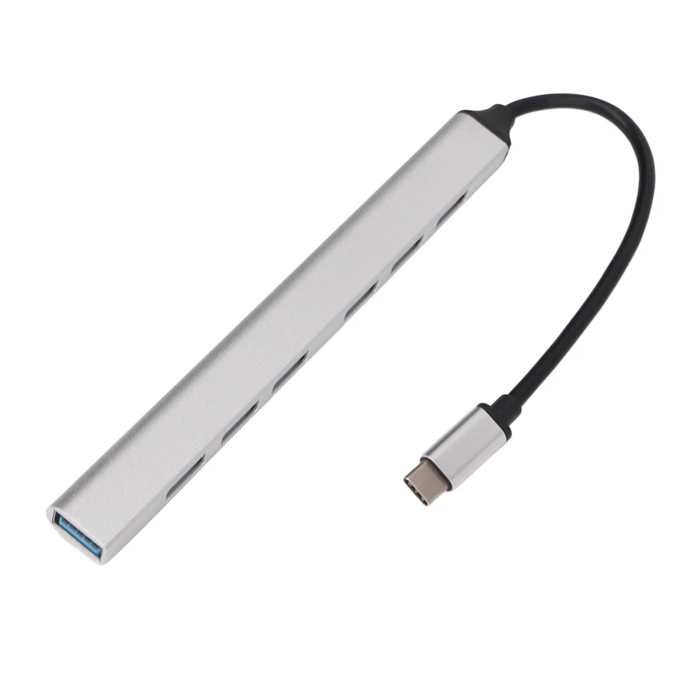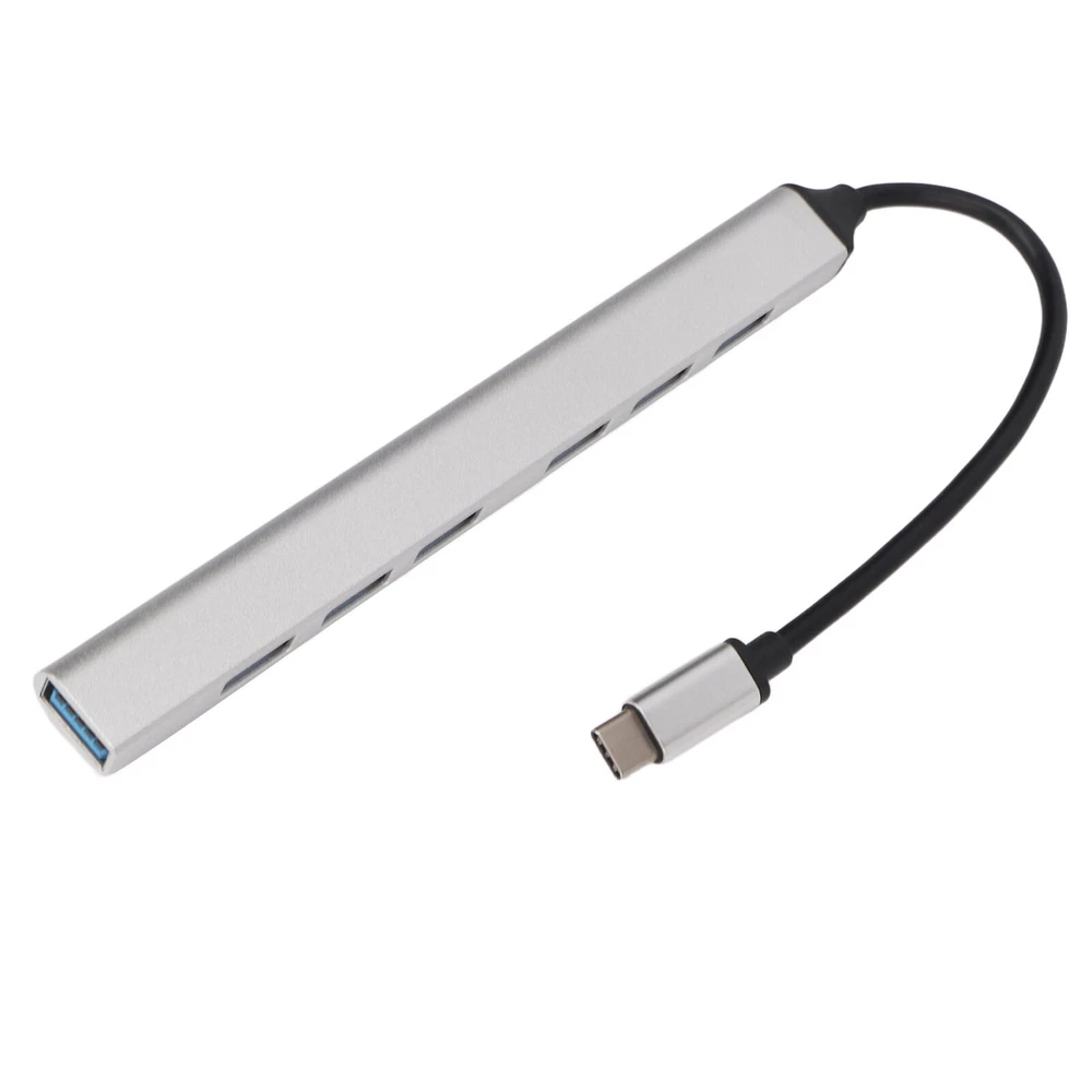 Feature: 1. and Practical: USB c hub uses a slim and chipset, you can arrange your laptop or desktop workstation for maximum comfort and productivity 2. Scope of Application: 7 in 1 USB3.0 hub is suitable for desktop PC with USB C interface, laptop with USB C interface, smartphone with USBC interface support 3. Heat Dissipation Design: USB C to 7xUSB3.0, with a good thermal design, even after a long time use will not heat up, can be used with confidence 4. Plug and Play: USB c hub multiport adapter is easy to use, plug and play, no drivers required, to meet your fast office needs 5. Wide Compatible: 7 in 1 USB c adapter is compatible with for 10, for 8, for 8.1, for 7, for Vista, for XP and for OS X, for Linux and for OS Specification: Item Type: USB C Hub Material: Aluminum Alloy Color: Silvery Port: USB C to 7 x USB3.0 Package List: 1 x USB C Hub