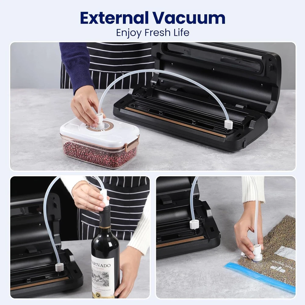 This vacuum sealer is a game-changer for keeping food fresh! The 7-in-1 modes make it super versatile—whether I'm sealing dry snacks or moist meats, it works perfectly. Love the built-in cutter and bag storage for convenience. The removable drip tray is a lifesaver for easy cleanup, and the starter kit has everything I need. Fast shipping too—highly recommend for anyone wanting to extend food shelf life without hassle!