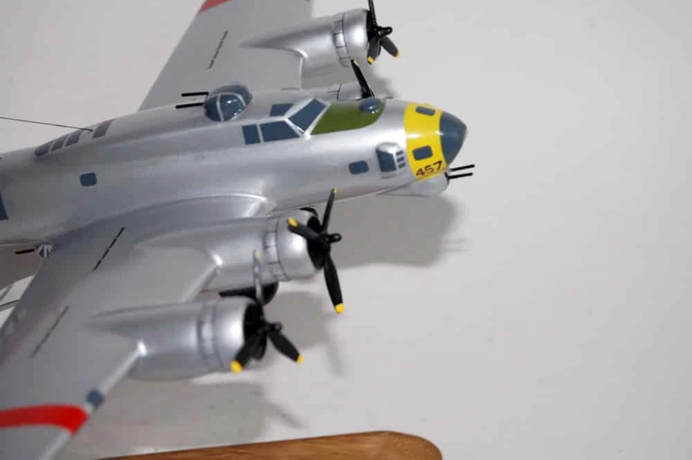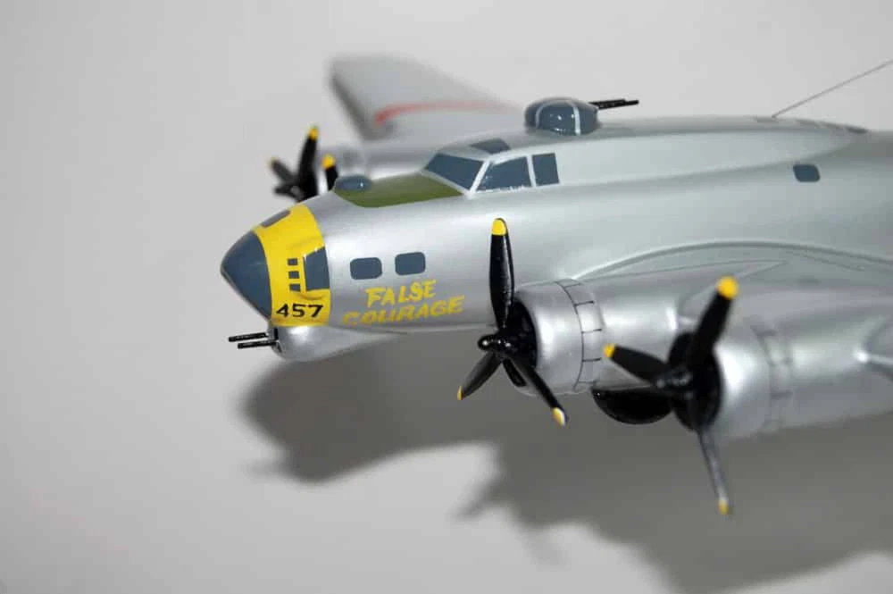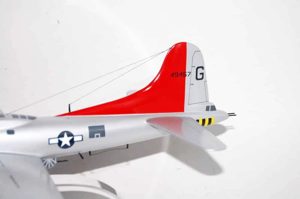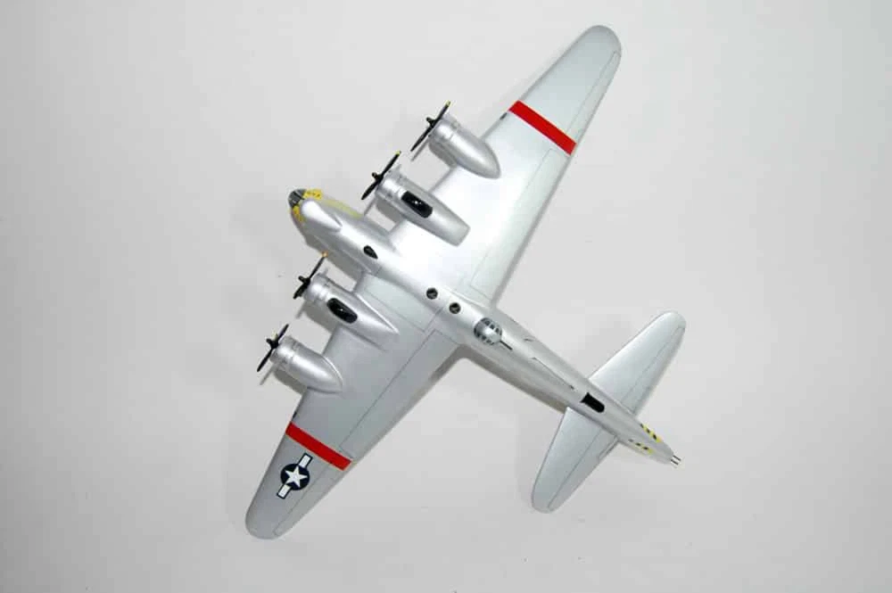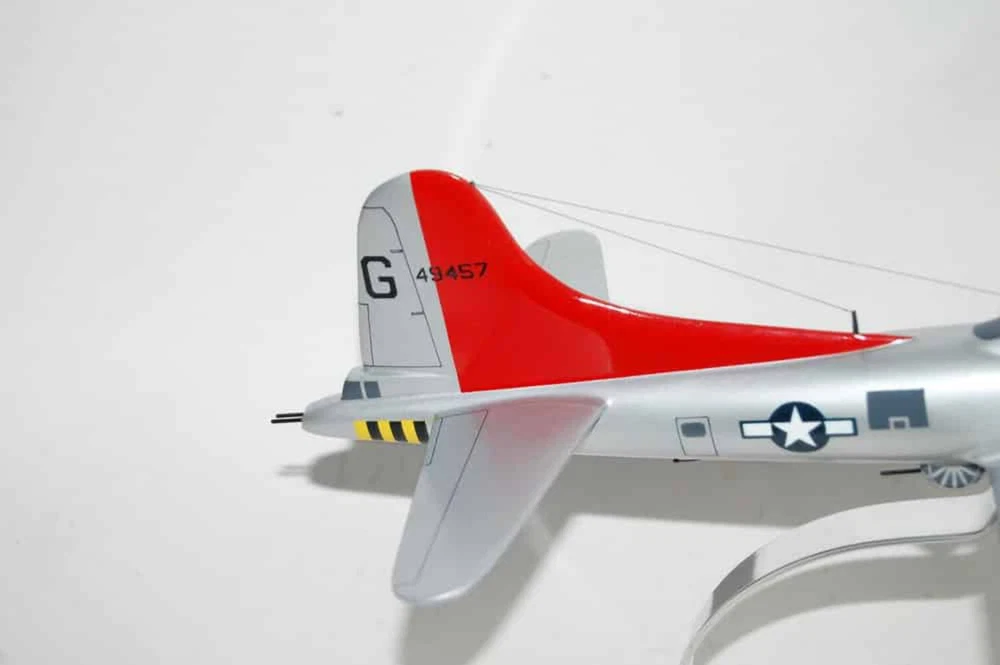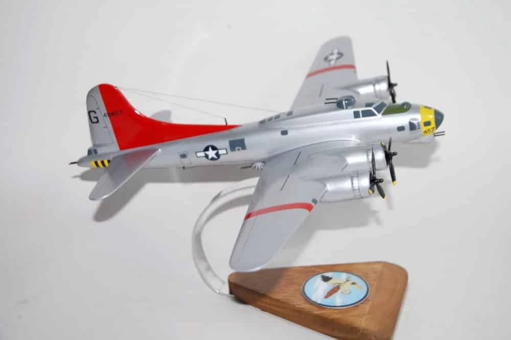 7th Bomb Squadron, 34th Bomb Group 'False Courage' B-17G Model Fly with the 7th Bomb Squadron, 34th Bomb Group Squadron, in this handcrafted B-17G model. Each piece is carved from wood and hand-painted to provide a piece you'll love. Length - 11 inches, Wingspan - 17 inches Made from Mahogany History The 7th Bombardment Squadron was activated at Langley Field, Virginia in January 1941 as one of the original squadrons of the 34th Bombardment Group. It was equipped with a mix of B-17C and B-17D Flying Fortresses and Douglas B-18 Bolos. In April 1941, the 34th Group and the 7th Squadron moved to Westover Field, Massachusetts. After the attack on Pearl Harbor, the 7th Squadron began conducting antisubmarine patrols off the northeast coast of the United States. However, it soon became part of Western Defense Command and moved to Pendleton Field, Oregon. By the summer of 1942, Second Air Force had primarily become a heavy bomber training force and the 7th Squadron became a B-17 Replacement Training Unit (RTU) at Geiger Field. RTUs were oversized units that trained aircrews before they were deployed to combat theaters. In December 1942, the 7th Squadron moved to Blythe Army Air Base in California, a base of the Desert Training Center. During this time, the unit provided cadres for several heavy bomber units that served with Eighth Air Force. The 7th Squadron began training with Consolidated B-24 Liberators for overseas combat operations on January 5, 1944. Its ground echelon moved to the port of embarkation on April 1, 1944, while the air echelon began its overseas movement on May 31, 1944, using the southern ferry route from Florida to Trinidad, Brazil, West Africa, and Marrakesh before arriving at RAF Valley, Wales. The 7th Squadron arrived at its permanent station, RAF Mendlesham, England, in April 1944 and entered combat on May 23, 1944. The 7th Squadron supported the preparation for Operation Overlord, the invasion of Normandy, by bombing airfields in France and Germany and attacking coastal defenses and communications during the landings in June. It also supported ground forces at Saint-Lô in late July and struck V-1 flying bomb launch sites, gun emplacements, and supply lines throughout the summer of 1944. In early 1944, plans had begun at VIII Bomber Command headquarters to standardize the 3rd Bombardment Division with the B-17 Flying Fortress due to the mixture of B-24s and B-17s causing operational problems. The 34th Group flew its last B-24 mission on August 24, 1944 and transferred its Liberators for overhaul and eventual transfer to units of the 2nd Bombardment Division. It then began converting to B-17s and flew its first mission with the new planes on September 17, 1944. The 7th Squadron primarily engaged in the bombing of strategic objectives from October 1944 to February 1945, targeting marshaling yards in Ludwigshafen, Hamm, Osnabrück, and Darmstadt; oil centers in Bielefeld, Merseburg, Hamburg, and Misburg; factories in Berlin, Dalteln, and Hanover; and airfields in Münster, Neumünster, and Frankfurt. It also supported ground forces during the Battle of the Bulge in December 1944 and January 1945. In March 1945, with few enemy industrial targets remaining and with Allied armies advancing across Germany, the 7th Squadron primarily focused on interdicting enemy communications and supporting Allied ground forces. It flew its last combat mission on April 20, 1945.
