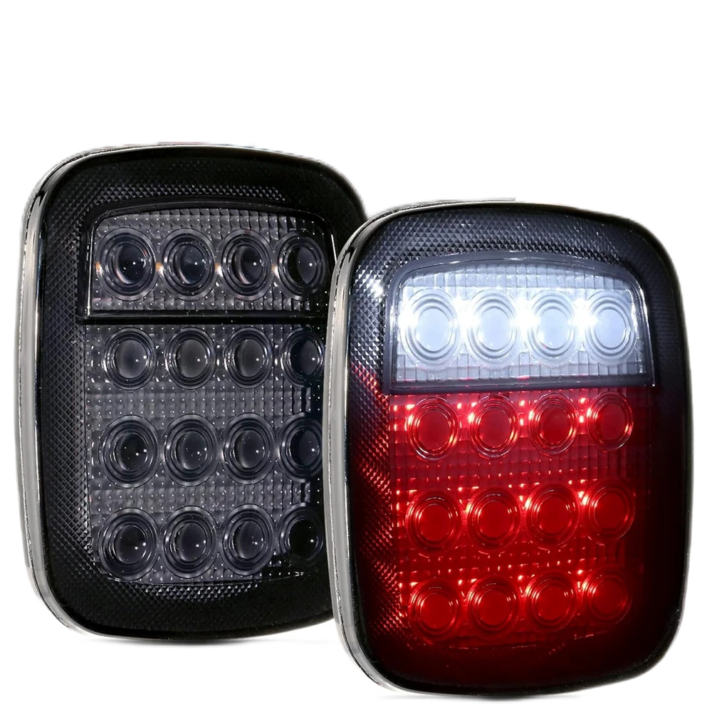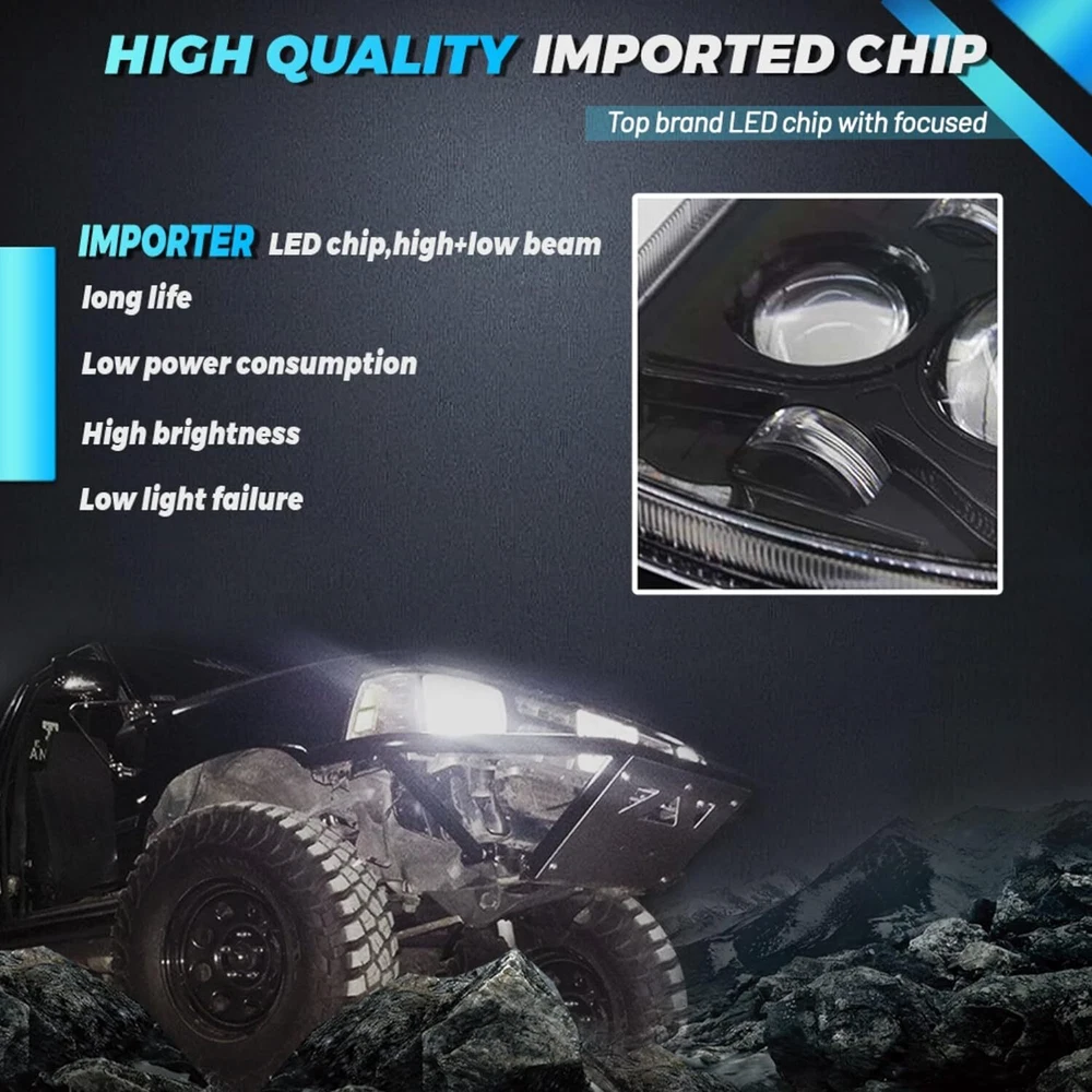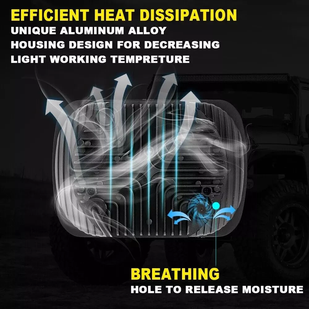 Product Description Fit any car or truck that has 7x6 / 5x7 inch headlights, replaces high/low sealed beam type: H6052 h6053 h6054 Plug play: Although this kit is plug and play, professional installation is highly recommended PLEASE NOTE Some vehicles with sensitive electronic system may have flickering problem when they get replacement. You can purchase a set of H4 anti-flicker hardness Specifications: 1. New shape super bright LED, suitable for wide voltage range of various models, long service life. 2. Waterproof IP68 anti-corrosion, can withstand bad weather such as rain or fog, can be clearly visible in any weather. 3. Widely used in cars / trucks / off-road / agricultural vehicles / engineering vehicles / snow forklifts / excavators. 4.Die-Cast aluminum alloy case, black, high heat dissipation. 5.6000K-6500K cool white can provide better lighting effect for the road surface 6. This LED headlight is suitable for most vehicles and requires little modification. If the rear space of the headlights is limited, some modifications to the bucket may be required. Some car need use H4 wring socket to change pins(not included in the package),few old japan brand cars will need to buy extra relay kit. 7. Some vehicles such as Toyota may need to move the pins on the headlamp plug to different position. Some vehicles have different plug orientation. Specification: Function: Hi/Lo Beam Plug: H4 / 9003 Size: 5x7 inch / 7x6 inch LED Power:120W/PCS / 240W/PAIR Luminous Flux: 12000LM@high beam,8000LM@low beam Operating Voltage: 9-32V DC Waterproof rate: IP 67 High intensity LEDs Color Temperature: 6000K-6500K Material: Die-Cast Aluminium heat sink alloy body Lens material: PMMA Lens Life Span: more then 80000 hours Working temperature: -40~ 85℃ Fit Model Compatitable with headlights: H6014 H6054 H5054 H6054LL 69822 6052 6053 Tail Lights Kit: Description 100% Brand New, With High Quality LED Quantity: 16 LEDs (4 White LEDs and 12 Red LEDs) Including 12 red square LEDs (Stop,Turn & Tail) & 4 white square LEDs (Back-up/Reverse) Voltage: 12V Epoxy sealed,100% waterproof, High light efficiency, low power consumption, energy saving Function: stop, turn, tail and back up lights Waterproof, Dustproof, Anti-shock & Anti-vibration. Long lasting, lifespan above 50,000 hours. Easy Install to different types vehicles. Acrylic lens is screwed on to the housing Features chrome reflector inside the lens which is much brighter and more visible from different angle Stud Mount, four wires (1 black, 1 red, 1 white and 1 brown) Professional Installation is Highly Recommended (No Instruction Included) Wire Connection Tips Black Wire(negative) + Red Wire (Positive), Red light is high brightness Black Wire(negative) + Brown Wire(Positive), Red light is low brightness Black Wire(negative) + White Wire(Positive), White light works This square stop turn tail light is universal, Also you can DIY it to suit for Jeep YJ JK ,Jeep CJ CJ-7 CJ-5 ( NOT factory Jeep light ) Package includes: 2pc 7x6 5x7 led headights 2x Stop/Turn/Tail/back up Lights