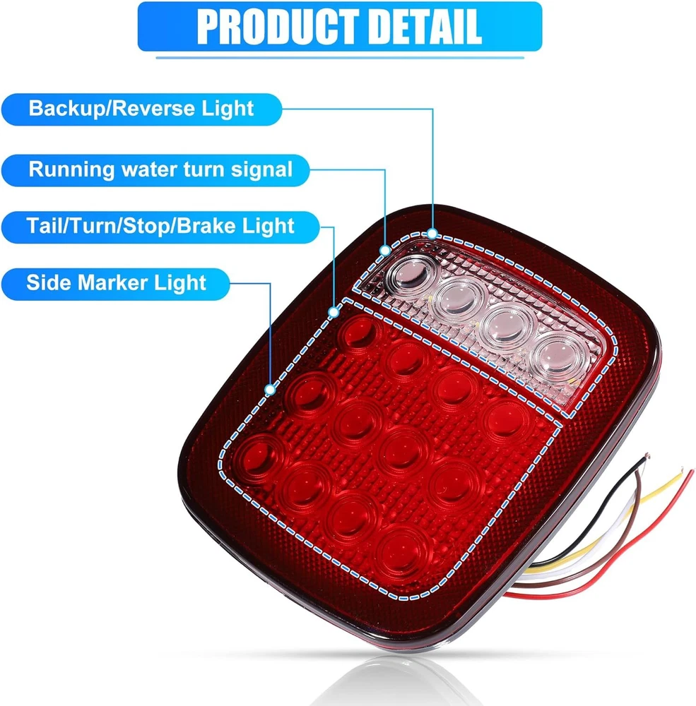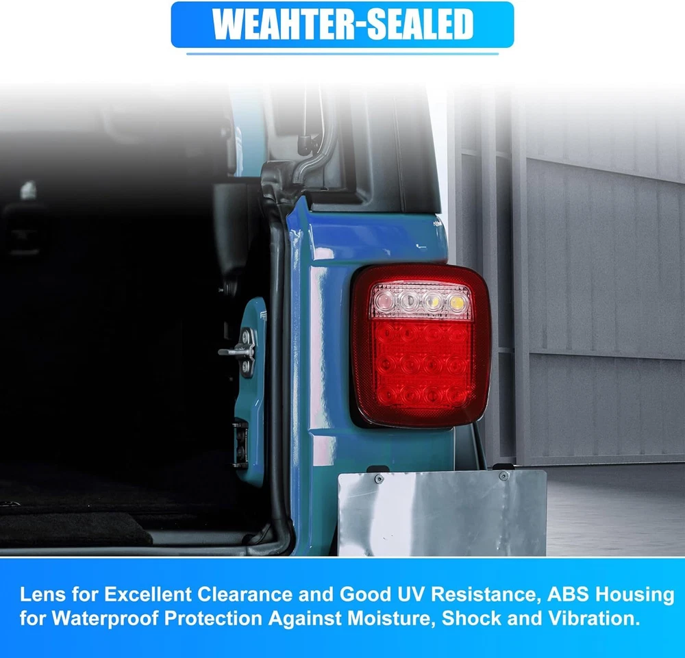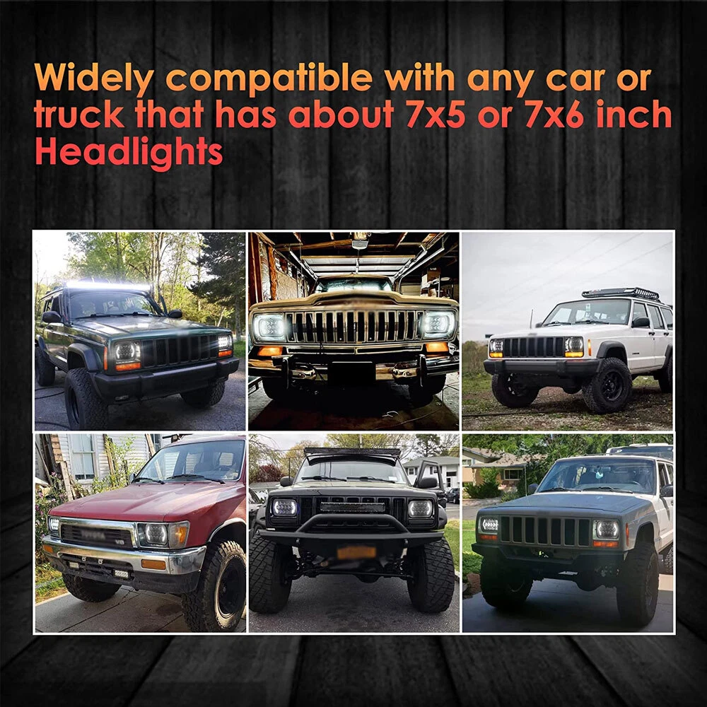 Package Included: 2 x 16-LEDs Tail Lights for Jeep Wrangler 2 x 5x7" 7x6" LED Headlights Fitment: Fit for Jeep Wrangler YJ 1987-1995 7x6" Headlight Specification: Product name : LED Headlight Material : Aluminum alloy housing, PC lens Housing color : Black Voltage : 12-24V Power : H/55W,L/30W Lumen : H/8250LM,L/4500LM Color Temperature : 6000K Waterproof : IP68 Beam Type : Running light / turning light / high beam / low beam Working temperature : -20°to 40° Lifespan : 50,000 hours Plug type : H4 Size : 19.5cm/7.68" x 14.1cm/5.55" ( L x W ) Tail Light Specification: Name: tail light Voltage: 12V Light source: 16LEDs 4 light modes: reverse light, tail light, brake light, turn light(Both lights flashing yellow at the same time indicate hazard light) Light color: white light, red light, amber light Location: rear Lens color: smoke black Note: 1. Due to manual measurements and slight color variations, please allow 1-3 cm (0.4-1.18 inches) difference to suit different display settings. 2. Due to the light and screen difference, the item\'s color may be slightly different from the pictures. Please understand.