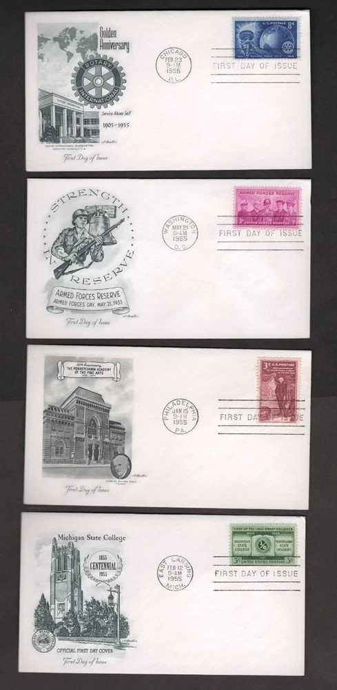 8 1955 Commemoratives FDCs Scott # 1064-1071