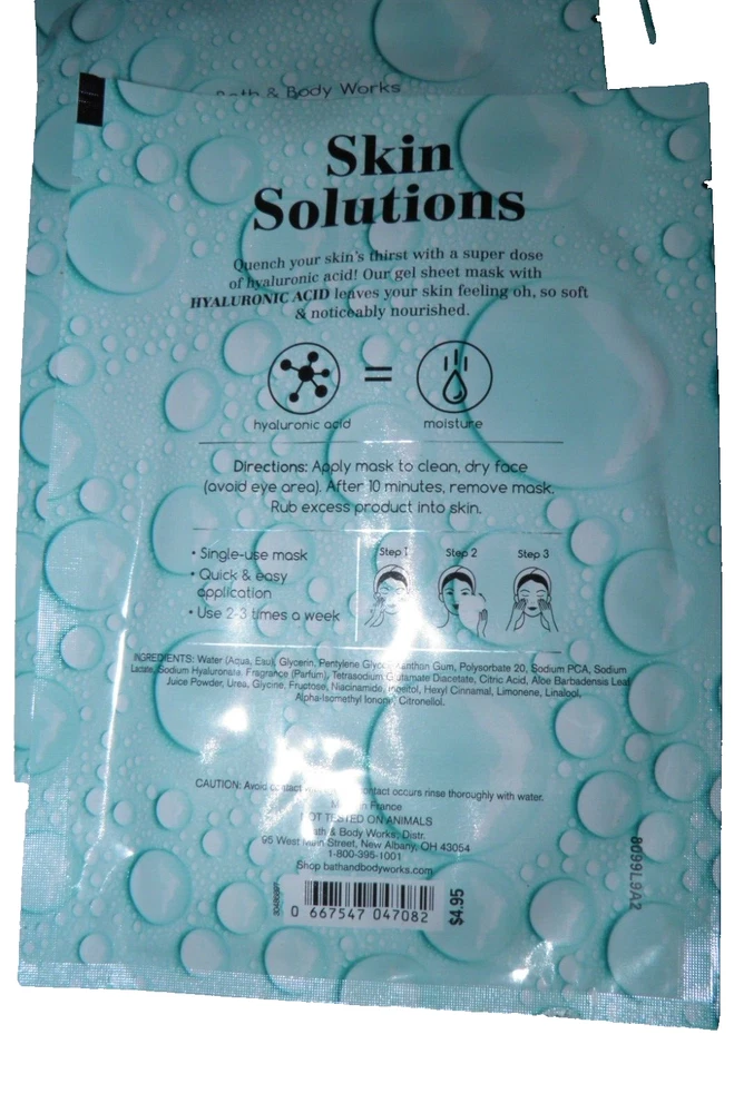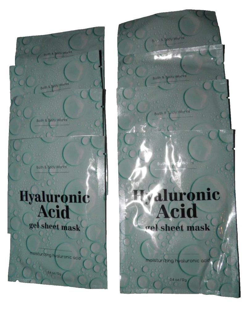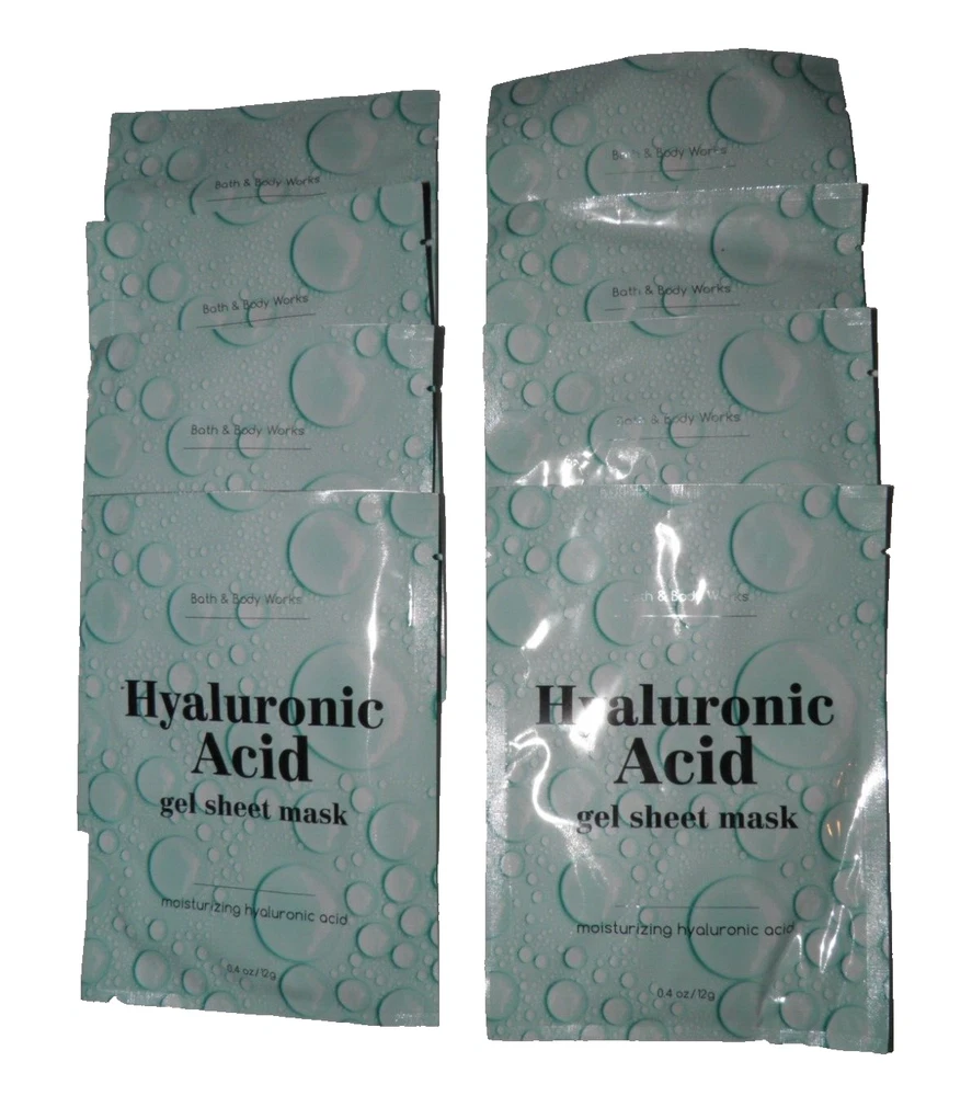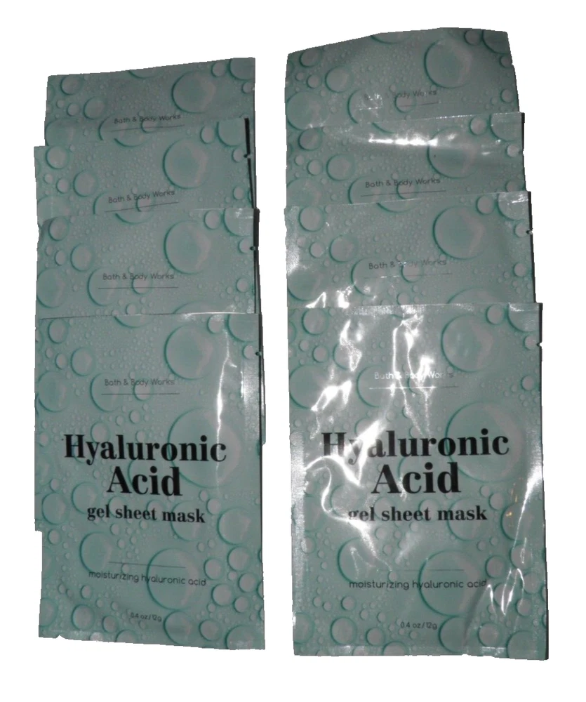 8 Bath & Body Works HYALURONIC ACID GEL SHEET FACE MASK Mailing Address - We will ONLY ship to the address on file with eBay. Before making a purchase, please ensure that your address is correct. We may otherwise cancel the sale. Handling Time - Our handling time is set to THREE BUSINESS DAYS. We ship packages Monday - Friday, except on holidays. This listing is NOT sponsored by, affiliated with, or representative of the mentioned brand(s), trade name(s), or trademark(s) and does not claim any ownership of such. All trademarks or brands mentioned in this listing are registered trademarks of their original owners who reserve all their rights and ownership. The use or mention of any trade name, product name, or trademark is necessary for identification and is for reference purposes only.