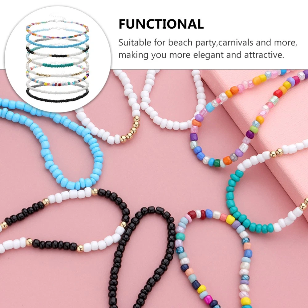 Absolutely love these colorful bead anklets! They're lightweight, comfortable, and add a fun pop of style to any outfit. Perfect for festivals, beach days, or just everyday wear. The beads are vibrant and well-made, staying secure without irritation. Great value for a set of 8—so many mix-and-match options! Highly recommend for anyone who loves playful, boho-inspired accessories.