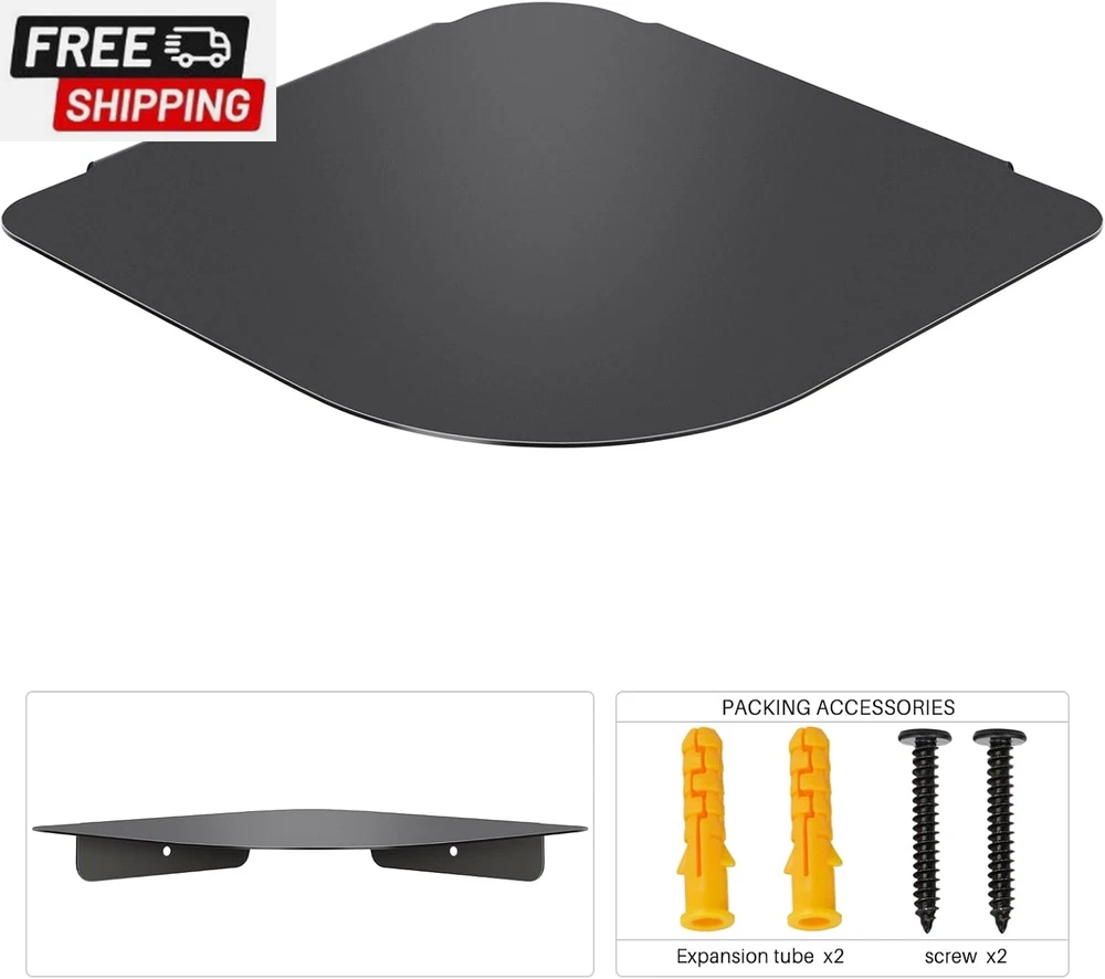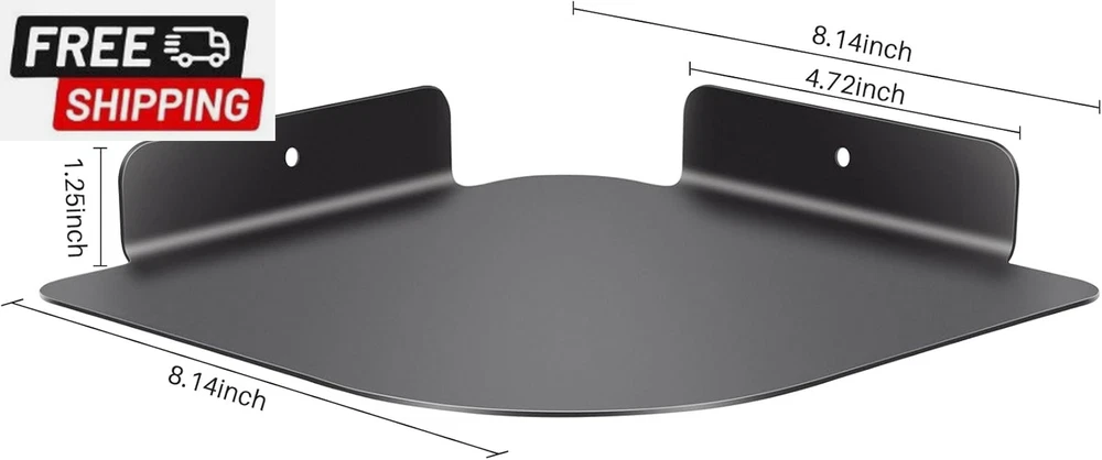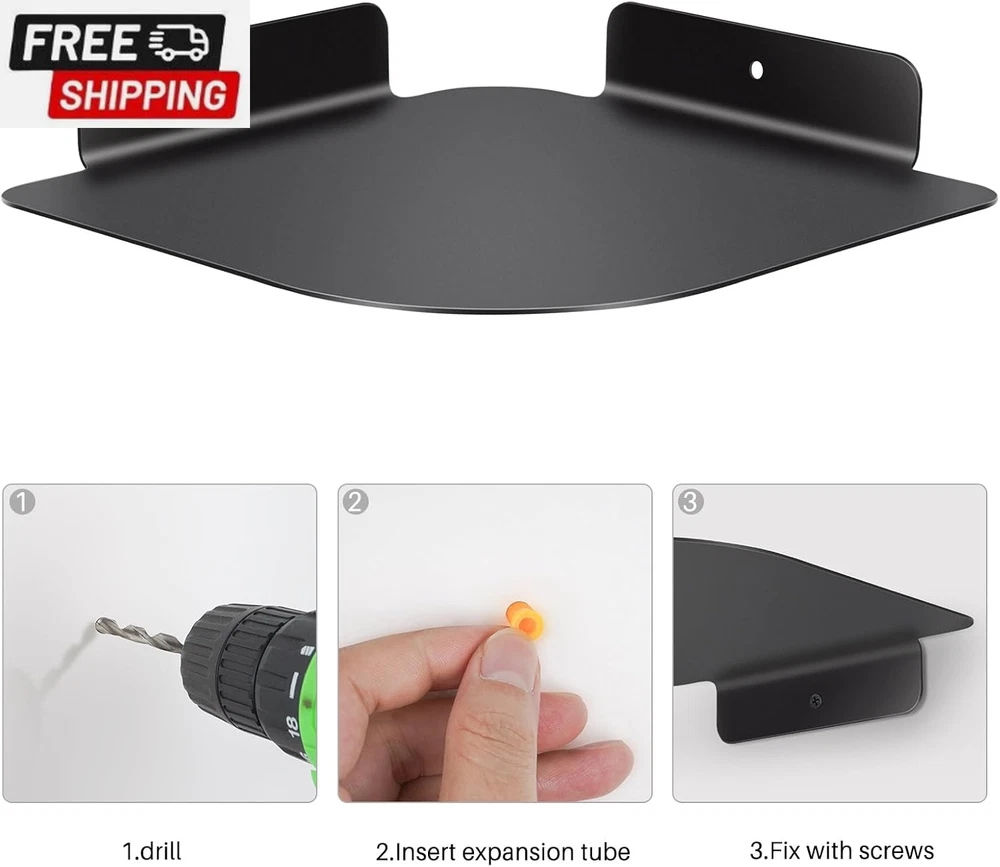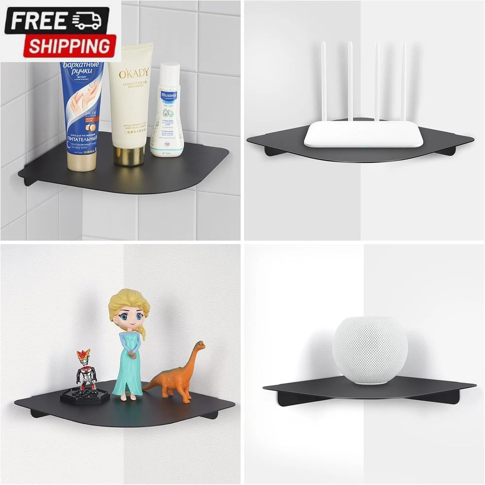 8" Floating Corner Shelf, Metal Corner Shelf Wall Mount for Wall Storage, for Smart Home, Speakers, Internet Router, Security Camera - for Bathroom, Kitchen, Bedroom, and Living Room (Black) Simple Multifunctional Storage Shelf--- The corner shelf can be used in any vertical corner of bedroom, living room, bathroom, kitchen, office, Bathroom, Nursery and Office, saving space and adding home decor. It is ideal for displaying and holding small plants, photo frames, books, collectibles, etc. Durable Metal Corner Shelf--- The corner shelf is made of aluminum metal with fine coating. It is durable, waterproof, rustproof, easy to wipe, and environmentally friendly. It is strong enough to support up to 20 pounds. Easy to Install --- Working at 90° angle corners, the corner shelf is fixed to the wall through 2 screws only. You need drill 2 small holes on the wall for screws. Detailed installation instructions are included, just follow simple steps. Space Saving Corner Organizer --- The corner shelf can save room space, very useful for adding extra storage space to store and reorganize small items in your bedroom, living room, kitchen and more. It is a great space saver. Valuable gift – With superior workmanship and good function, the corner wall shelf is a gift for home decoration, Fathers' Day, Thanks Giving, Christmas. It can be merged into home environment, and it is great for users of all ages Product Description Brand Story We founded in 2021 with the mission to invent innovative product to satisfy our customer globally. Our passionate team pays high attention to not only the best user experience, but also the aesthetic feeling, comfort of life, and sustainability. This Corner Shelf was made by premium quality materials, with excellent workmanship. Our original intention of designing this product is to make life simple and comfortable. Meanwhile, the aesthetic design of this product can beautify your life. Want to place your Speakers, Security camera, Baby Monitors, Internet Routers at anywhere safely? aplslpa Corner Shelf is something that just designed for you and your family. Questions and Answers Q: Is this Corner Shelf useful? A: You will find the Corner Shelf very useful once you have it. It can save room space, very useful for adding extra storage space to store and reorganize small items, speakers, Security Camera, etc. It can also be used to hold other items as long as the size is less than 8 inches (L) x 8 inches (W) and the weight is less than 5 pounds. Q: Where can I put the Corner Shelf? A: You can install it in any vertical corner of bedroom, living room, bathroom, kitchen and office. It all depends on what you want it to support and where you want to use it. Q: Is the Corner Shelf easy to install? A: You will find it easy to install. Just drilling two holes on the wall, insert expansion tubes and mount the shelf, you will install it in a short time. Q: Will this Corner Shelf make my home ugly after installed? A: On the contrary, the Corner Shelf has aesthetic design and superior workmanship, it will definitely beautify your home environment. Item model number Corner Wall Shelf Style Contemporary Number of Items 1 Country of Origin China Shelf Thickness 1.24 Inches Room Type Kitchen, Living Room, Bedroom Weight capacity Maximum weight: 20 Pounds Assembly Required No Installation Type Wall Mount Model Name Corner Wall Shelf Finish Type Anodizing Specific Uses For Product Decorative Items, Kitchen Utensils, Plants, Books Material Aluminum Mounting Type Wall Mount Product Name Floating Corner Shelf Back Style Backless Item Weight 10.2 ounces Special Feature Waterproof, Space Saving, Durable Weight Limit 20 Pounds Color Black Furniture Finish Aluminum Recommended Uses For Product Kitchen, Living Room, Bedroom Size 8.13x8.13x1.24 Product Dimensions 8.13"D x 8.13"W x 1.24"H Product Care Instructions Wipe with Dry Cloth Shelf Type Corner Shelf Shape Triangular Shipping Fast shipping is very important for us. Our standard US shipping service is FREE. Your order will be shipped within 2-3 business days upon full payment received. Your order will be delivered within 2-3 business days after the handling time. We only ship to the confirmed PayPal address. We reserve the right to cancel any order for any reason at any time. We are not responsible for undeliverable addresses. Returns and payment We offer a 30 days return policy from checkout winning date. We allow only PayPal as payment method FeedBack Your feedback very important to us, after you get your package and you are satisfied with our service please leave us positive feedback If you have any problem with your order / any questions please before leave any type of feedback For any questions, using eBay contact system Please visit our eBay store to check out other items for sale! Thank you for shopping at our store.