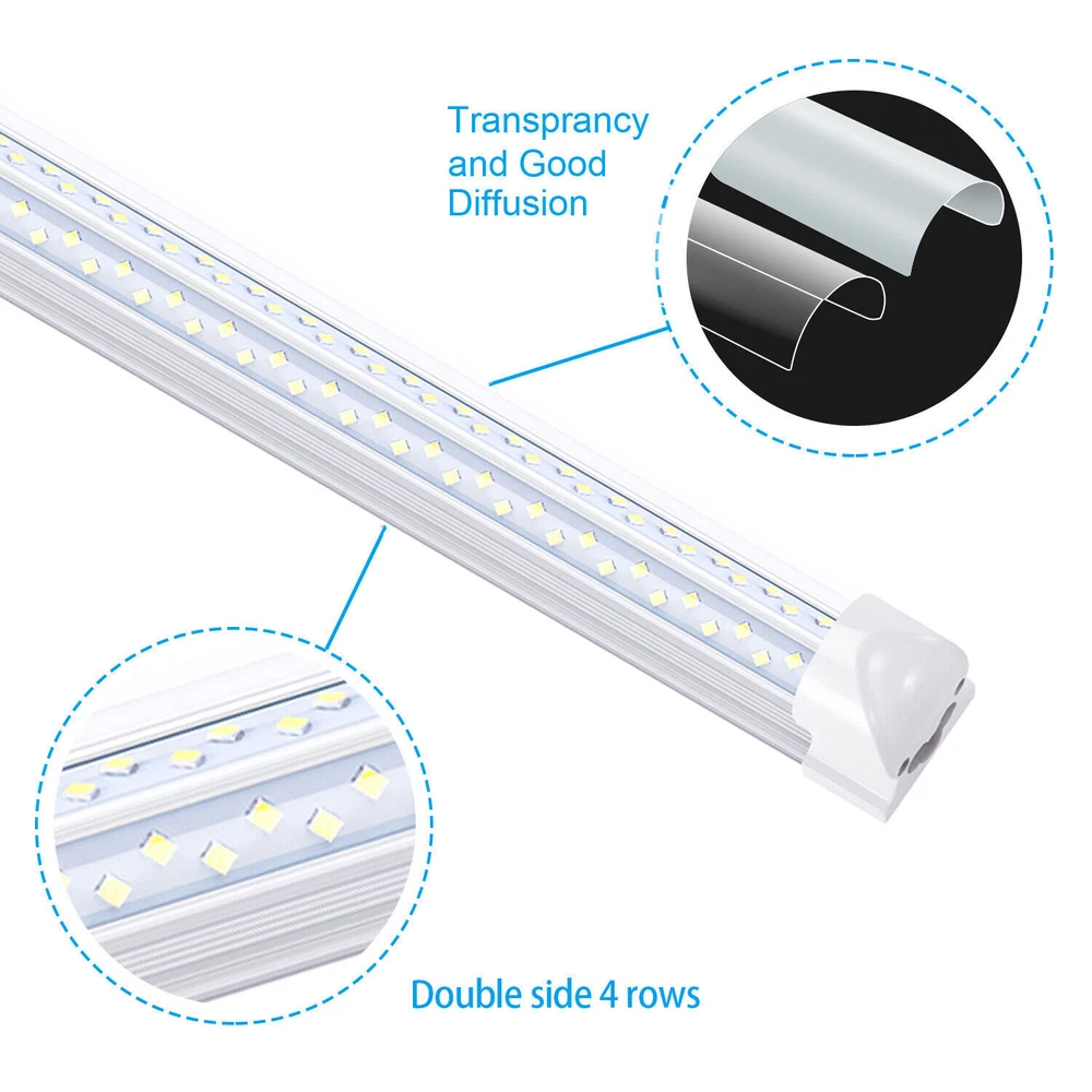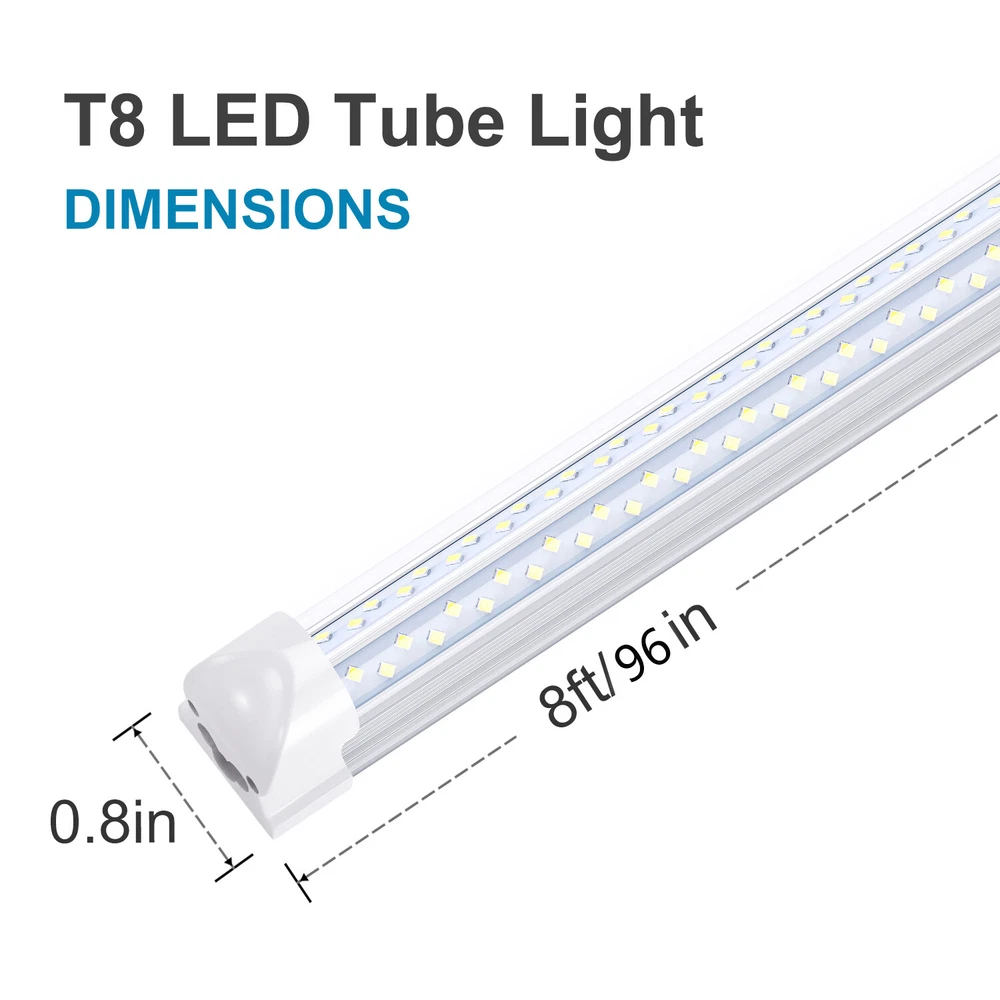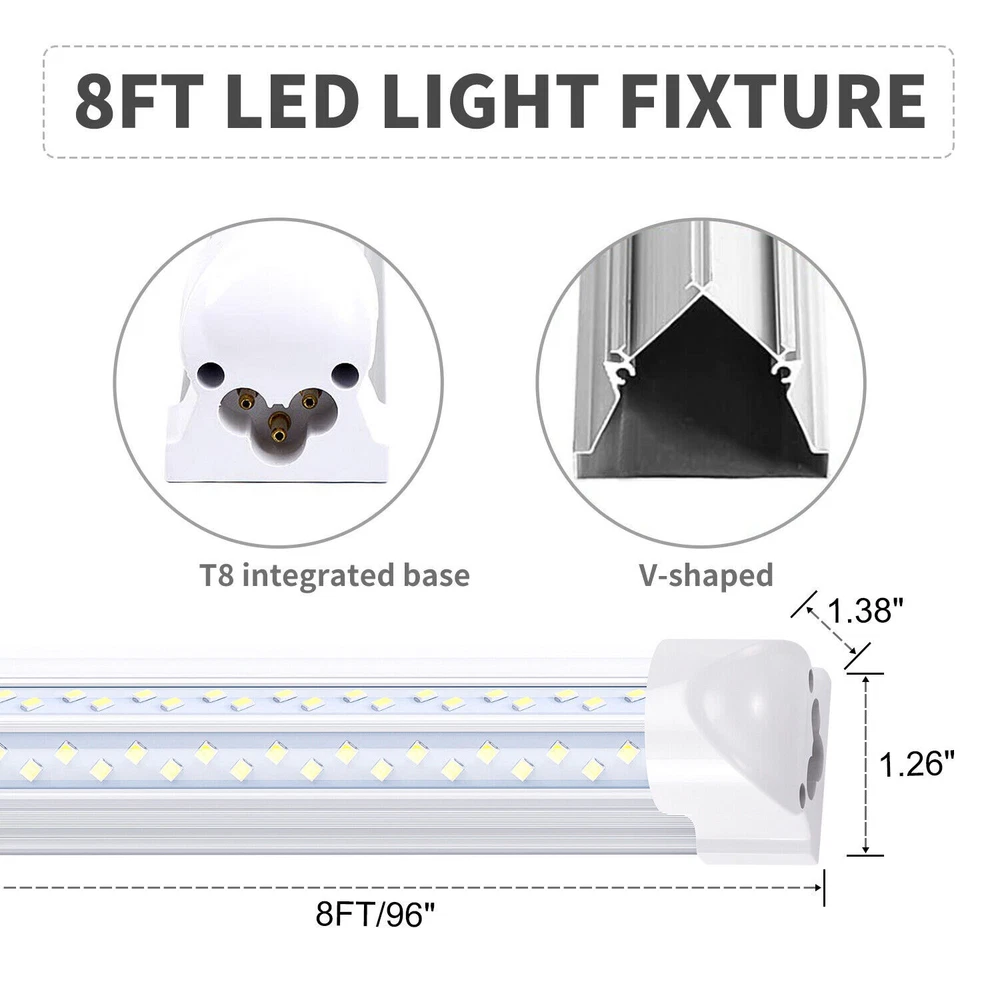 Features: Model Name: T8 Integrated V Shaped LED Tube Length: 8FT Power: 8FT 120W,100W,72W LED Source: 2835SMD Lumens: 120Lm/W Base Type: Integrated (With Bracket) Beam Angle: 270 Degree Voltage: AC85-277V Housing material: Aluminum Drive: Built-in drive CRI: > 80 Power factor:>0.90 Operation temperature: -20C to 50C Life: 50,000 hours Frequency: 60Hz to 50Hz Warranty:3 Years PC cover: Clear Color temperature: Cold White (6000K-6500K) Key Benefits: 270 Degree angle design, which shed more light on your products to make much brighter Double row LED, which give more light output Clear cover, which emits more light than frosted cover Cut Energy Costs by 60-80% Lamp Lifespan: 50,000 hrs Bright Light output Mercury free, No Health Hazards 8 Foot LED Shop Lights 120W 72W 8FT Led Tube Light Fixture 8' T8 Integrated Bulb Features: Model Name: T8 Integrated V Shaped LED Tube Length: 8FT Power: 8FT 120W,100W,72W LED Source: 2835SMD Lumens: 120Lm/W Base Type: Integrated (With Bracket) Beam Angle: 270 Degree Voltage: AC85-277V Housing material: Aluminum Drive: Built-in drive CRI: > 80 Power factor:>0.90 Operation temperature: -20C to 50C Life: 50,000 hours Frequency: 60Hz to 50Hz Warranty:3 Years PC cover: Clear Color temperature: Cold White (6000K-6500K) Key Benefits: 270 Degree angle design, which shed more light on your products to make much brighter Double row LED, which give more light output Clear cover, which emits more light than frosted cover Cut Energy Costs by 60-80% Lamp Lifespan: 50,000 hrs Bright Light output Mercury free, No Health Hazards Easy Installation: 1. Remove Old Fixture (If needed) 2. Install Mounting Clips to Doors 3. Snap LED Tube Light into Mounting 4. For multiple lights installation, Connect other end of the Tube light output to second light input and so on. With one power source, it can connect 2 Tube lights utmost for 8FT Tube. 5. Connect to Power Source Application / Usage: Reach-In Coolers / Freezers Multi-Deck Cases , Bakery Display Cases Meat Coolers , Industrial / Medical Refrigeration Show Case , Super Market, School, Factory, Residential , Commercial Bus, shuttle, railcar passenger interiors,Places where need energy-saving and high-color rendering index lighting Connection method : 72W No more than 3 lights 120W No more than 2 lights Payment Delivery details Terms of sales About us Contact us Payment 1.We only accept payment by Paypal. 2.If you pay by paypal with E-check, it normally takes 5 business days to clear, Once your E-check payment clears, your item will be dispatched within 1-2 working days. 3.Payment must be received within 7 days after the auction ended. Delivery details 1.All orders ship within 24 hours after receiving your payment. 2. Fedex shipping from our US warehouse, takes about 3-5business days for delivery. 3.Please verify your address during checkout. We are not responsible for any wrong or undeliverable addresses. Terms of sales We strive to ensure 100% satisfaction for each and every one of our customers. we offer a 30-day 100% money-back guarantee on all eBay orders. If your item isn't just as you wished, simply send it back to us and we'll refund or replace your item. Please note that all returns must be authorized by our Customer Service department. please contact us though message first if you have any problem . About us 1.Our working time is Monday to Friday. 9.30-18.30 BeiJing time am. 2.We will reply you within 24 hours(1work days). 3.We are always been trying to provide best service and reliable products for every customer. Contact us 1. If you are dissatisfied for any reason, please do not be quick to leave negative/neutral feedback. We work hard to make sure EVERY CUSTOMER 100% SATISFIED and resolve any problem for you and always leave positive feedback to all our customers. 2. If you are satisfied with the product you received,please leave us positive feedback and 5 scores DSR.