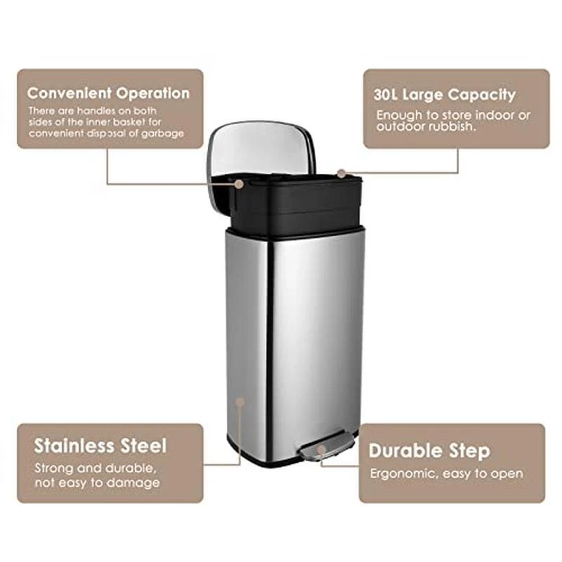 You may also like Touch Top Kitchen Trash Can 13 Gallon Durable Plastic Odor Control Waste Bin New 27.87 USD 29.34 USD Free shipping 5% off 32-Gallon Brute Trash Can W/ Lid Grey Outdoor Garage New Comfort Reinforced Base 52.45 USD 55.21 USD Free shipping 5% off About this item 【 STUNNING THAN THE PICTURES 】 The gloss of the trash can is not reflected in the picture, but can only be experienced with the naked eye. Might as well try to buy a classic 8 gallon trash can, its appearance will not let you down. 【 STAINLESS STEEL 】 The stainless steel trash bin is durable and rust-free, even if it gets water stains and household waste during use, it only needs to be wiped off with a clean rag dipped in water. 【 SILENT LID AND AVOID FINGERPRINT 】 Provided you with a quiet environment, the lid of kitchen trash can adopts noise reduction setting. Multiple touches tend to leave fingerprints, and FINETONES' garbage can lessens their marks. 【 RELEASE YOUR HANDS 】 Just lightly press the pedal with your feet and the lid will open without using your hands. The black inner basket is thick and heavy, and the handles on both sides are easy to operate. 【 EFFICIENT PROCESSING 】 Regardless of pre-sales and after-sales, whether it is logistics, parcel, or return issue, we will respond within 24 hrs, and efficiently solve the problem until you are satisfied. Brand:FINETONES Capacity:8 Gallons Color:Silver Opening Mechanism:Step-On Material:Stainless Steel Recommended Uses For Product:Kitchen Room Type:Kitchen : : : You may also like 2-Layer 20-Frame Langstroth Beehive Honey Bee Beekeeping Metal Roof New 209.94 USD 220.99 USD Free shipping 5% off 34" Square Resin Fold-in-Half Camping Table Heavy Duty Picnic BBQ Party Outdoor 48.56 USD 51.12 USD Free shipping 5% off Outdoor Potting Bench Table w/ Storage Shelf Workstation Patio Planting Garden 87.11 USD 91.69 USD Free shipping 5% off Portable Propane Gas Fire Pit 58,000 BTU Outdoor Campfire Bowl W/ Cover & Kit US 170.9 USD 179.89 USD Free shipping 5% off 125BVx Gas Leaf Blower 28-cc 1.1-HP 2-Cycle Handheld Leaf Blower Vacuum Kit 336.15 USD Free shipping 8' Surf Fishing Rod Big Game Anglers Durable Fiberglass Freshwater & Saltwater 31.82 USD 33.49 USD Free shipping 5% off Food Processor Attachment Dicing Kit Kitchen Accessories Durable 227.99 USD 239.99 USD Free shipping 5% off Adjustable Aluminum RV Entry Screen Door Grille 22"- 31.5" Black Protector New 62.66 USD 65.96 USD Free shipping 5% off Mid-Century Modern Accent Chair with Wooden Frame Faux Leather Home Bedroom 114.05 USD 120.05 USD Free shipping 5% off 6'6" Medium Action IM6 Graphite Spinning Rod W/ Split Grip Handles & Hook Keeper 40.9 USD 43.05 USD Free shipping 5% off Stackable Dining Side Chair Kitchen Chairs Dining Room Home Office Set of 2 71.57 USD 75.34 USD Free shipping 5% off Quiet 6” Inline Duct Fan with Speed Controller Ventilation Exhaust Fan F/Heating 103.36 USD 108.8 USD Free shipping 5% off