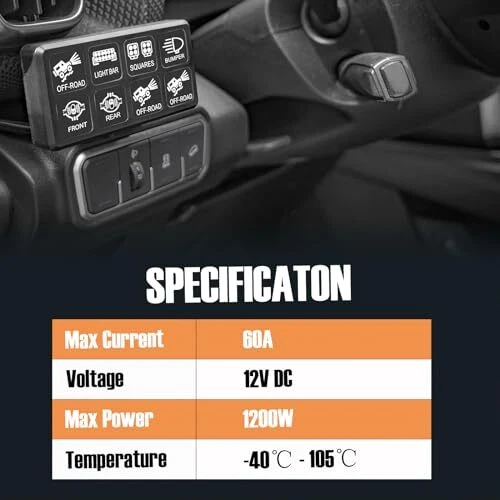 Return Policy Fast Delivery Trusted seller 8 Gang Switch Panel ON-Off Switch Pod Circuit Control Relay System with Fuse Wiring Harness Universal Boats Switch Panel Waterproof Nilight Switch Panel fit for Cars Trucks ATV UTV SUV Product Description [VERSATILITY]: 8-in-1 8 gang button switch can power all types of 12V DC accessories. Such as off-road vehicles, ATVs, UTVs, RZRs, trucks, cars, SUVs, boats, RVs, etc. such as compatible with jeep, Ford, Polaris, 4x4, SxS, boats, etc. Switch panel is perfect for organizing and controlling car accessories [MAX POWER]: 8 groups switch panel 12V DC working max power is 360W / 720W at 24V, can control up to 6 different devices, provides the perfect solution to clean up all the wiring harnesses and add one panel to control all the devices. The switch compartment can be customized with a sticker to remind you when in use. [PREMIUM QUALITY MATERIALS]:The upgraded 6-group switch panel is made of high-quality housing materials anodized aluminum and polycarbonate switching film, which protects against over-voltage, over-current and over-heating. The switch panel and circuit control box are IP65 waterproof rated with relays and fuses to provide a safe environment for all connections, and overload/overcurrent/overheat and reverse polarity protection ensures that circuits won't burn out due to incorrect wiring, helping you to monitor the electrical safety of your machine. [KIT INCLUDES]: 8 in 1 8 gang button switch with intelligent memory function, even if the power is turned off, it will not affect the second switch, which 6 in 1 kit includes: circuit control relay system, fuse, wiring harness, extension cable, DIY stickers and switch panel mounting bracket, no need to buy other accessories [EASY INSTALLATION]: The switch panel plug and play wiring harness with extension cord ensures that you can easily connect your LED lights or accessories, and the included instructions help you install it quickly and easily. Shipping Returns Payment Shipping Shipping is FREE to all addresses other than APO/PO boxes in the lower 48 states. All our stock ships from US-based warehouses. Shipped via USPS or UPS (depending on location and package weight) Unless stated otherwise, all orders will ship within 24-72 hours of your payment being processed. Check our feedback to see the great reviews of FAST shipping we offer. Returns Seller does not accept returns Payment We currently accept payment via eBay managed payments only. Once payment is cleared, we will dispatch your shipment within 1-3 business days. Please refer to the "Shipping" tab for more information regarding shipping speed to your destination.
