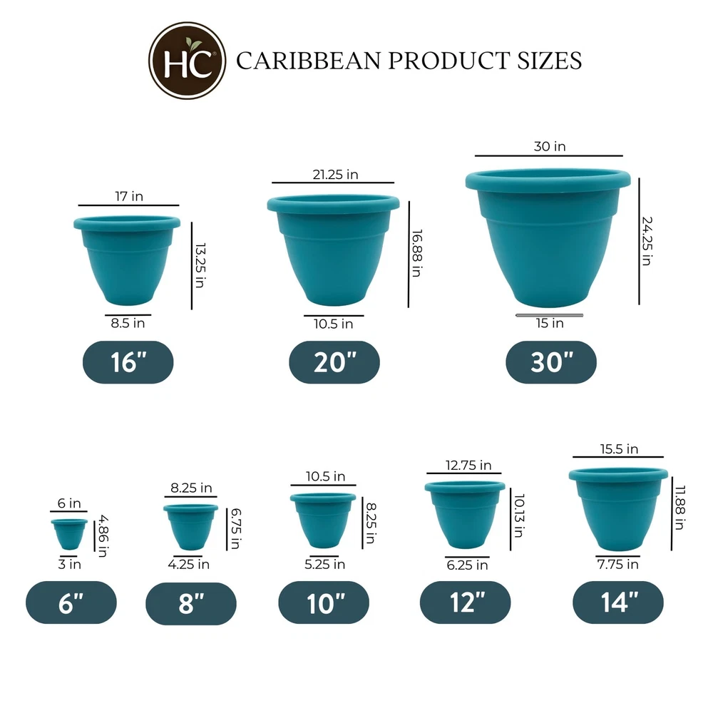 These colorful planters are perfect to beautify any area, outdoor or indoor. Lightweight and durable, these pots are weatherproof, so they can be left outside without the worry of them cracking or color fading. Grow a wide range of plants in these containers such as vegetables, ornamentals, herbs, and more. These pots nclude drain plug to avoid overwatering of your plants. DURABLE & LIGHTWEIGHT - Made from polypropylene plastic, these plant pots are sturdy and lightweight. The rolled rim helps you to easily move the container, even when it is full of soil. It won't break or crack when lifting. DRAINAGE HOLE WITH REMOVABLE PLUG – Remove the plug for drainage or leave it in. The contoured base of these pots helps protect plants from excess watering. TRADITIONAL DESIGN - Trendy colors and a classic look allow this decorative pot to fit into any indoor & outdoor setting. These plastic plant pots are UV resistant and will not crack or color-fade over time. GREAT FOR A VARIETY OF PLANTS - These round planters come in several sizes and are great for indoor houseplants, as well as outdoor gardening on your patio, porch or deck. Use them to grow vegetables, flowers, herbs, snake plants and more. MADE IN THE USA - For over 35 years, has been manufacturing horitcultural containers. This pot was proudly manufacturer at our factory in Ohio.