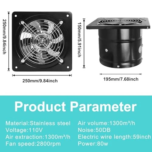 Return Policy Fast Delivery Trusted seller 8 Inch Exhaust Fan, Kitchen Exhaust Fan With Switch 60Hz 7 Blades Iron, 760 CFM Window Exhaust Fan, Small Wall Mounted Ventilation Fan for Attic, Greenhouse, Bathroom, Basement(Black, 80W) Product Description Powerful Ventilation Capacity: Featuring a 7 blade design, this exhaust fan provides stable airflow, high performance ventilation, large wind volume, and extended airflow delivery distance.Reserved Installation Hole Diameter:210-220 mm / 8.3-8.7 in Window Mounted Installation: Our Wall exhaust fan is equipped with four layer noise reduction technology, the ventilation fan ensures smoother airflow and reduces friction noise for a quieter environment Upgraded Switch Design: Our bathroom exhaust fan is Easy to use with a three pin socket for and stable operating, the exhaust fan with switch enhances convenience and safety Metal Construction: The kitchen exhaust fan is made of premium iron material, with low wind and a sealed pure copper motor, making it damp proof and long lasting Versatile Application: The vent fan is suitable for various ventilation needs in areas such as bathrooms, kitchens, garages, home offices, and commercial spaces, providing efficient airflow circulation and freshness, creating a healthier and more comfortable living or working environment Shipping Returns Payment Shipping Shipping is FREE to all addresses other than APO/PO boxes in the lower 48 states. All our stock ships from US-based warehouses. Shipped via USPS or UPS (depending on location and package weight) Unless stated otherwise, all orders will ship within 24-72 hours of your payment being processed. Check our feedback to see the great reviews of FAST shipping we offer. Returns Seller does not accept returns Payment We currently accept payment via eBay managed payments only. Once payment is cleared, we will dispatch your shipment within 1-3 business days. Please refer to the "Shipping" tab for more information regarding shipping speed to your destination.