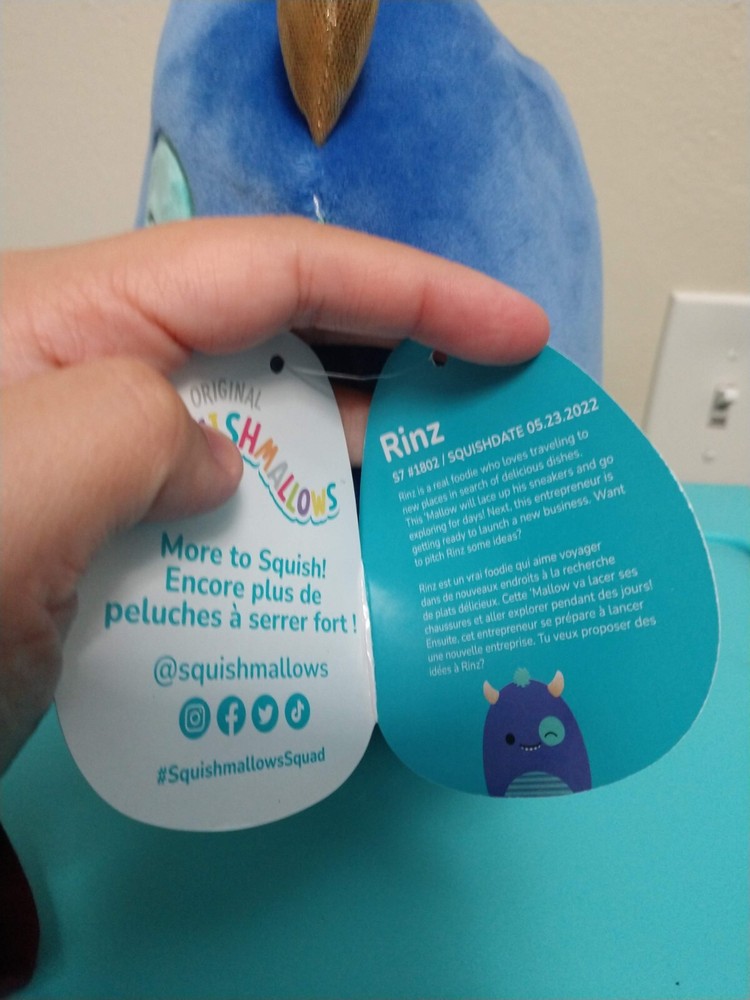 This adorable Squishmallows plush is so soft and huggable—perfect for cuddling or display! The vibrant blue color and cute monster design make it a fun addition to any collection. Super squishy and well-made, great for kids and adults alike. Love it!