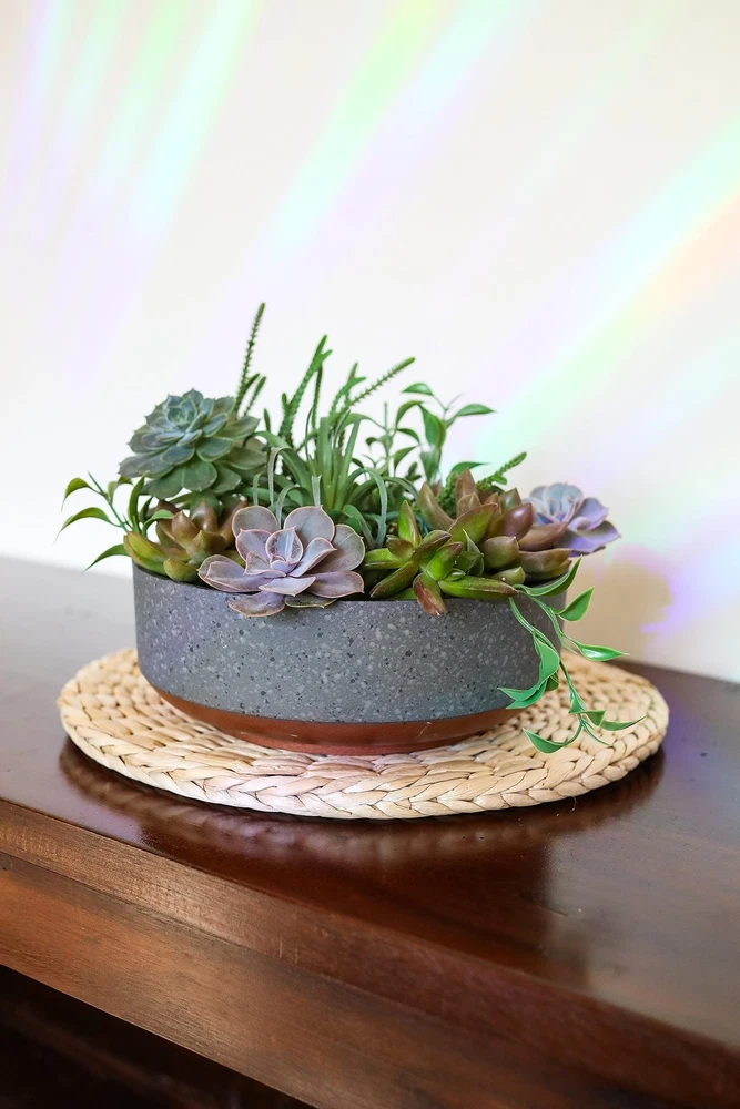 DECORATIVE ROUND PLANT POT: 8-inch round accent planter that's perfect for indoor container gardening in your living room, kitchen, and more MADE FOR DROP-IN GROWER CONTAINERS: Designed for use with 1.50-inch and 2.50-inch drop-in grower containers (containers not included) ALLOWS FOR EASY DRAINING: Features drain plug hole for proper succulent care STYLISH AND BUILT TO LAST: Crafted from heavy-duty, durable plastic material made to resemble stylish ceramic INDOOR OUTDOOR MULTIPLE USE: This succulent planter is sold in bulk. Use these pots for weddings, parties or craft projects.