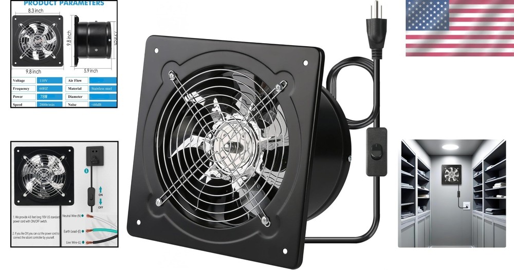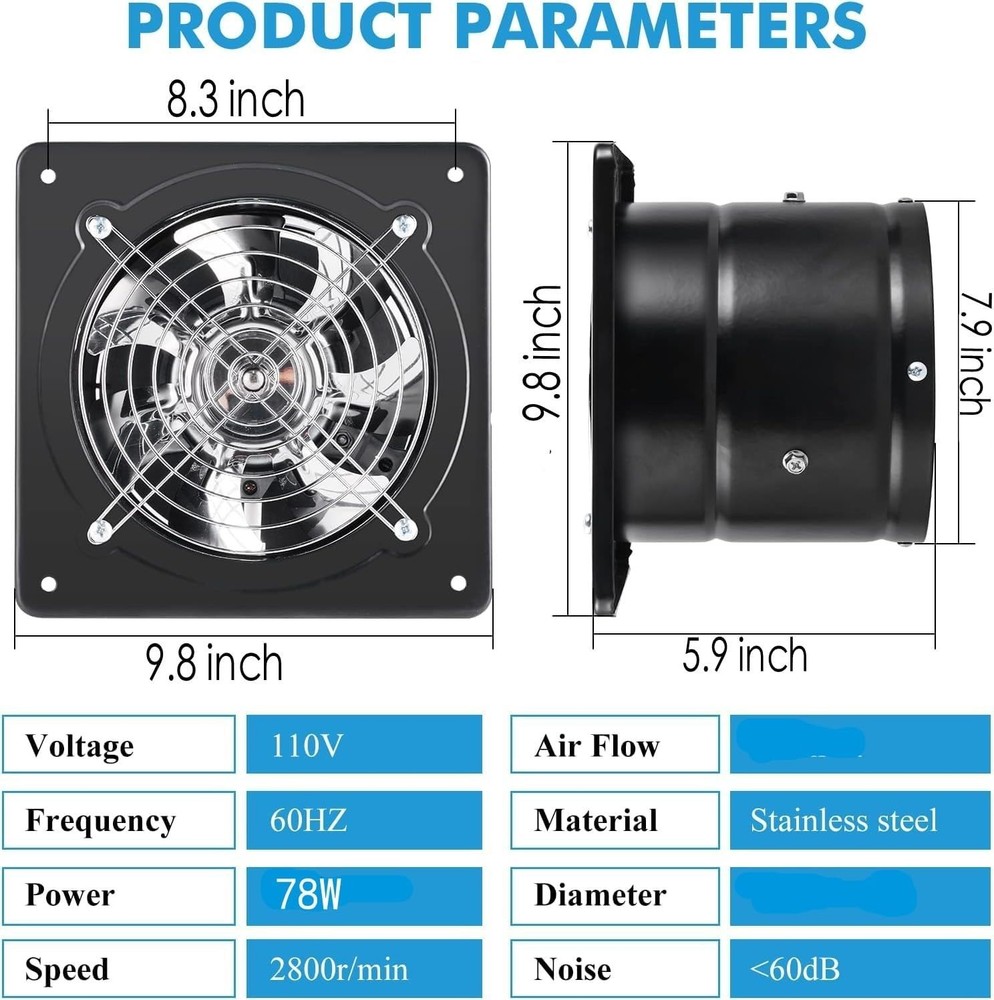 8 Inch Metal Exhaust Fan Waterproof Wall Mount Ventilation Fan with Switch ‹ › ‹ › ‹ › ‹ › ‹ › ‹ › ‹ › ‹ › ‹ › 8 Inch Metal Exhaust Fan Waterproof Wall Mount Ventilation Fan with Switch Features: Efficient Ventilation: Equipped with a double ball bearing outer rotor brush-less motor, ensuring high efficiency and quiet operation. Durable Construction: Made from corrosion-resistant stainless steel blades, steel wire guards, and an iron shell with anti-rust coating. Easy Installation: Suitable for wall or ceiling mounting with easy-to-follow installation instructions and convenient cleaning. Versatile Use: Ideal for workshops, basements, warehouses, kitchens, bathrooms, and any area requiring efficient ventilation. Comprehensive Support: 100% after-sales service with lifelong technical support and 24-hour service. Shockproof & Stable: Designed with a powder-coated steel wire guard and thickened protective mesh for safety and vibration prevention. Benefits: Energy-efficient operation with reduced electricity consumption. Longer service life due to high-quality construction and thermal protection. Low noise operation allows for a peaceful environment. Detachable design for easy maintenance and cleanliness. Why choose our 8 Inch Metal Exhaust Fan? This carefully designed exhaust fan not only enhances the air quality of your space but also provides a seamless blend of durability and efficiency. The corrosion-resistant materials ensure long-lasting use, while the efficient motor saves you money on electricity, allowing for an eco-friendly solution to indoor ventilation. With its sleek design, it complements any decor while ensuring your environment remains comfortable and well-ventilated. Invest in reliable ventilation today and elevate your indoor air quality with our 8 Inch Metal Exhaust Fan. Order now to experience the perfect balance of functionality and style! Shipping Free & Fast Shipping - We offer free shipping to most of the USA with a normal delivery time of 3-7 days. However, due to the current situation, additional delivery time (up to 3 weeks) may be required for some items. Alternative Carriers - We may use alternative carriers (e.g. USPS, FedEx, UPS, etc.) to ensure your package arrives safely and on time. Due to the use of multiple carriers, we are unable to provide a tracking number automatically. Handling Time - Orders are processed and shipped within 1-2 business days of receiving cleared payment. Shipping Restrictions - Shipping to Alaska, Hawaii, Puerto Rico, Guam, and other US territories may incur shipping charges or delivery restrictions. Please contact us before ordering, or your order can be refunded/cancelled. State Restrictions - There may be restrictions based on your state of purchase. For example, certain items may not be shipped to California due to state regulations. Contact for Tracking Updates - If you require tracking updates or have any concerns about the delivery of your order, please feel free to contact us, and we will be happy to assist you. Return 30-Day Hassle-Free Returns - We want you to be completely satisfied with your purchase. If you are not, you can return the item within 30 days of receiving it for a full refund or exchange. Easy Return Process - To start a return, simply contact us and we will provide you with a prepaid return shipping label and detailed instructions. Restocking Fee - There are no restocking fees for returns. However, the buyer is responsible for return shipping costs if the return is not due to a seller's error. Refund Processing Time - Refunds will be processed within 5 business days of receiving the returned item in its condition. Payment We accept all major credit cards, PayPal, and Apple Pay for your convenience. Your payment information is secure and encrypted to ensure a safe and seamless transaction. Please complete your payment within 3 days of purchase to avoid any delays in shipping. Feedback Your feedback is extremely important to us. We strive to provide the best products and customer service possible. If you are satisfied with your purchase, please take a moment to leave us a positive review. If you have any concerns or issues with your order, please contact us before leaving negative feedback. We are committed to resolving any problems and ensuring your satisfaction. Contact Us If you have any questions or concerns, please feel free to out to our customer support team. You can contact us through the eBay messaging system. We are available Monday to Friday, 9:00 am to 5:00 pm EST, and we will do our best to respond to your inquiry within 24 hours. Buy it now and enjoy a pleasant shopping experience! Unit Quantity: 1.0 count Material: Iron,Metal,Stainless Steel Features: Waterproof,Double Ball Bearing Motor,Scratch Resistant,Low Noise Operation,Detachable Motor for Cleaning,Thickened Protective Mesh Room: Attic,Basement,Bathroom,Garage,Kitchen,Laundry Room,Warehouse Mounting: Ceiling,Wall Power Source: Electric,AC Control Style: Touch Type: Exhaust Fan Ventilation System: Exhaust Fan Color: Black Item Depth: 6 in Item Height: 10.1 Inches Vent Style: Flat Item Diameter: 8 in Shape: Round Number of Blades: 3 Number of Speeds: 2 Voltage: AC Finish: Powder Coated Operating Sound Rating: Low Noise