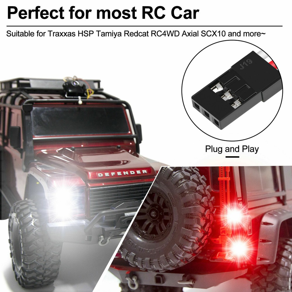 This LED light kit is a game-changer for my RC truck! The white and red LEDs give it a super realistic look, and the remote-operated switch is incredibly convenient—no more messing with wires mid-run. Installation was a breeze, plugging straight into the receiver, and the lights are bright enough to make my rig stand out even in daylight. Works perfectly with my Axial SCX10, adding awesome detail while staying durable. Highly recommend for anyone wanting to boost their RC's cool factor!