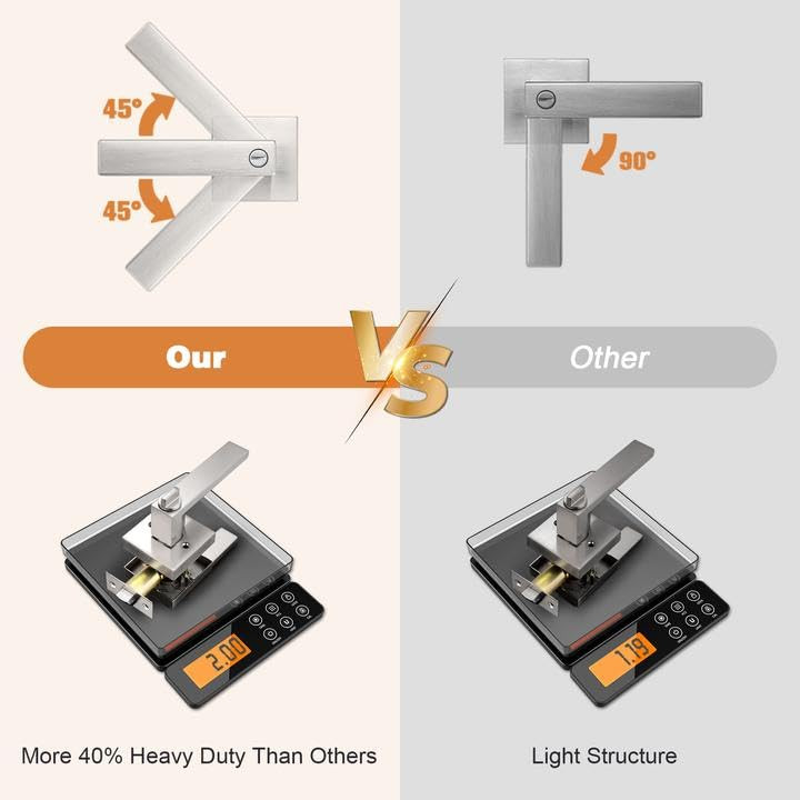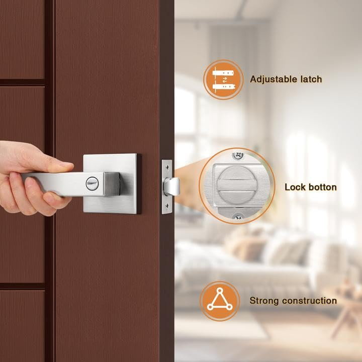 Menu 1. We require immediate payment. 2. We currently accept payment via eBay managed payments only. 3. Once payment is cleared, we will dispatch your shipment within 1-3 business days. Please refer to the "Shipping" tab for more information regarding shipping speed to your destination. 8 Pack Door Handles Brsuhed Nickel Privacy Door Levers with Lock for Bedroom & Bathroom, Heavy Duty Square Interior Door Handles,for Left & Right Handed Doors,Keyless Product description 【Improve Your Home】: These square door lock meant to create an elegant effect to give your home the perfect finishing touch. Upgrade handle with provides a comfortable grip but a decorations to be used to enhance the beauty of your home. In contrast to other metal door handles, these handles provide a comfortable touch, which more suitable for colder or wetter conditions 【Upgrade Version】: Compared with other door locks, this privacy door handle help you to open and close your doors with less effort and freed your hands for other tasks. Upgraded internal structure not only strengthens the stability, but also prolongs the service life of the door handles 【Keyless Privacy Feature】: Privacy door Lever without keys could be locked and opened by a thumb-turn button from inside and a coin or slotted screwdriver could be a emergency tool to open and lock it from outside. This privacy door lever is best used for the room of privacy function needs, like bedroom, bathroom, guest room or office meeting room, w the easy locking & opening needs from inside is needed 【Easy to Install】: This interior privacy door Knobs come with all accessories to help you complete installation and upgrade existing interior in less time with only a screwdriver and no need for professional door fitters. It fits both right and left handed doors, which help you to make a simple installation without reversible the hand levers 【Adjustable Latch】: This privacy door locks comes with an adjustable latch 2-3/8" or 2-3/4"(60mm or 70mm) to fit all standard doors from 1-3/8" to 1-3/4" (35mm-45mm) thick. Lever Length: 4.88" (124mm), Rosette Diameter: 2.56" (65mm). The latch plate is square, and can't be removable PLEASE MESSAGE US IF YOU HAVE ANY OTHER QUESTIONS, AND MANY THANKS FOR READING ALL OF THIS. Copyright ©#. All Rights Reserved.