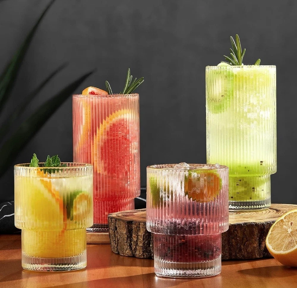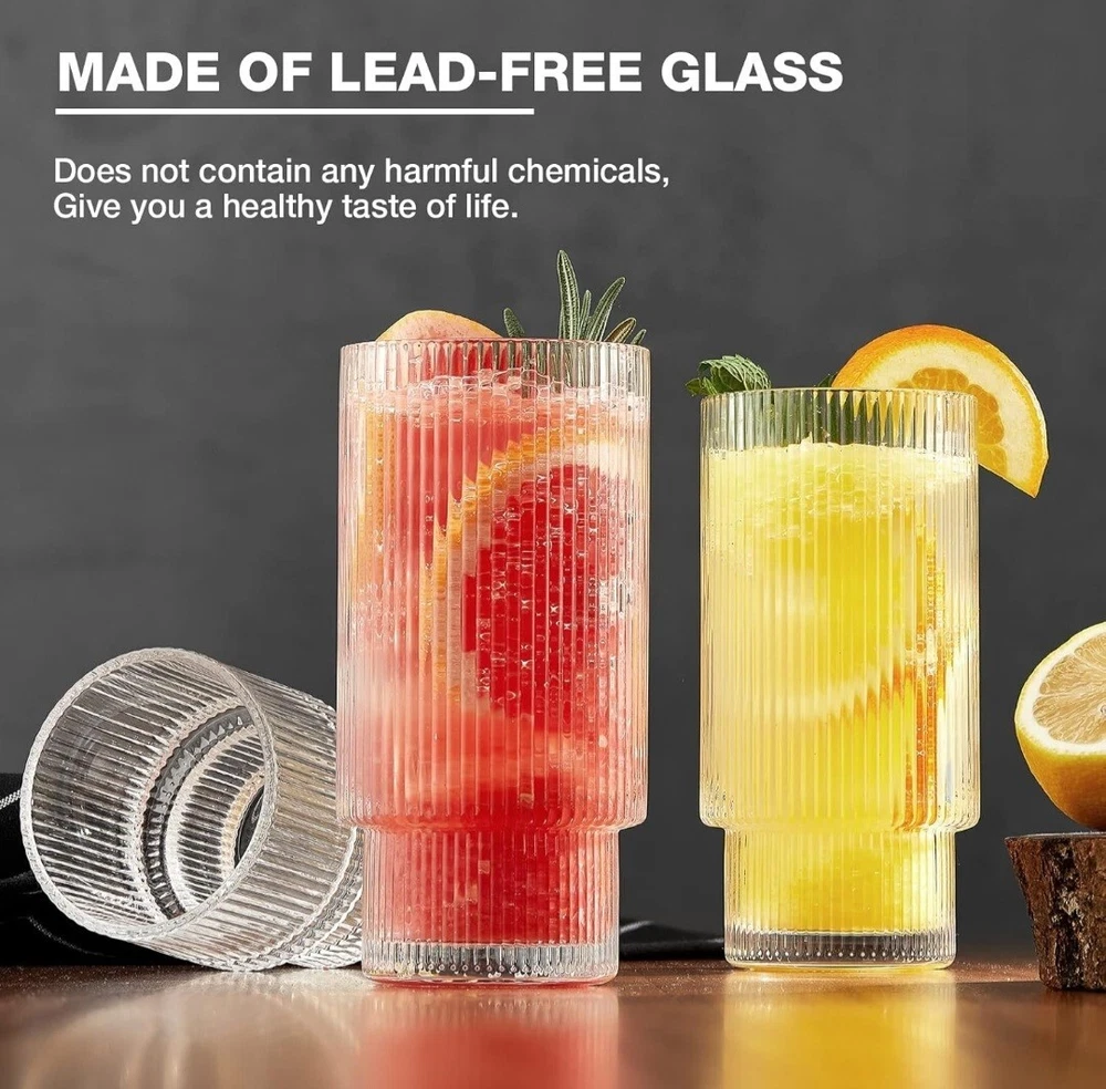 8 Pack Drinking Glasses, 4pcs Highball Glasses (11oz) & 4pcs Rocks Glasses (6oz), Vintage Glass Cups, Elegant Ribbed Glassware, Iced Coffee Glasses, Glass Tumbler for Cocktail, Whiskey, Juice TWO SIZE GLASSWARE SET The ribbed glassware set includes 4 highball glasse 11oz & 4 tumbler glasses 6oz, which is just what you’re looking for. TALL, Highballs – Our 11oz drinking glasses make it easy to stay hydrated or keep the party going even longer. SHORT, Tumbler Glasses – These 6 oz shorter cups can be used for whiskey, bourbon, scotch or even for small drink portions. QUALITY MATERIAL & DISHWASHER SAFE Glass cup is made of super quality glass, heat-resistant and durable, lead-free, and BPA-free. The drinking glasses have the ability to resist cracking and shattering. It can be cleaned in the dishwasher and easy to handwash. STACKABLE TO SAVE SPACE This unique origami style glass cup with a European retro flavor. Each cup can be stacked on the other, very convenient and easy to store. The perfect vessel for the perfect pour, whatever flows. It is ergonomically designed so that you will feel lightweight in hand and comfortable to hold. GLASSES MULTI-PURPOSE The glass tumbler can be used for many types of hot or cold beverages. It is widely loved by families, kitchens, breweries, cafes, bars, and restaurants. You can make it as an iced coffee cup, beer glasses, smoothie cup, whiskey glasses, margarita glass, tea cup, boba cup, fruit juice jar, or any other interesting holiday drinks glassware. BUY WITH CONFIDENCE This glass cups set is packaged in a heavy bubble holder and thick carton box to prevent damage during transportation. If you have any problem with your order, please feel free to contact our team, and we will gladly assist you. Payment ●Payment must be received within 3 business days of auction closing. ●Please Note: Import duties, taxes and chargers are not included in the item price or shipping charges. These charges are the buyer's responsibility. Shipping ●Items will be shipped within 3 days after the cleared payment. All items will be checked carefully and packages in good condition. ●We will ship to ebay's address only. Please make sure your address on ebay is the same with your shipping address before you pay. ●Shipping and Handling will be determined based upon the ship to address ●If you didn't receive your package, this time schedule, please do not hesitate to contact us. Within 24 hours we will try to update you with the latest tracking details of the shipment. Return and Feedback ●We sincerely hope that you can leave us a positive feedback. If, for any reason you are not satisfied with your purchase, please contact us through "Ask Seller Questions" before leaving neutral or negative feedback ●If you are not satisfied about your received item, please return it within 30 days for a refund. ●We will accept any return and give a full refund (without shipping cost) on any item. The item must be returned to us in original condition and the buyer need to pay return shipping cost