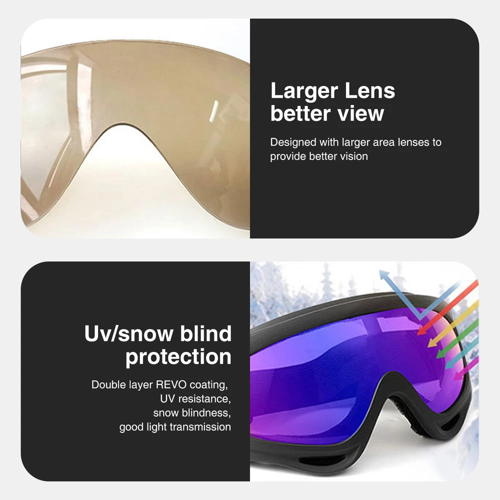 Description Multipurpose windproof goggle set Package includes: 2*colorful lens ski goggles 2*clear lens ski goggles 2*brown lens ski goggles 2*yellow lens ski goggles Application Scenario ·ski ·motorcycle ·biking ·climbing ·hiking If you have any questions about our products, please us by , and we will reply you in time. [Multi-color lenses] Our ski goggles set includes 4 different colors of lenses(colorful, clear, brown, yellow). In the 8-piece set, there are 2 goggles of each color lens to meet different needs [Excellent protective performance]This ski goggle adopts a unique design and provides excellent protection while ensuring comfort, allowing you to do whatever you want in various sports [Various usage scenarios] This windproof goggle can be used in a variety of sports scenarios. Such as off-road motorcycles, skiing, cycling, mountain climbing, hiking, etc., and provide multi-color lenses for you to choose from [Adjustable size] Our ski goggles have an adjustable strap design, you can freely adjust the strap tightness to suit everyone, whether it is a kid, teenager, or adult, you can easily wear our product [Reliable after-sales service] We are committed to providing services that satisfy our customers. If you have any questions after receiving the product or during use, please us in time, and we will provide you with satisfactory after-sales service and solve your issues