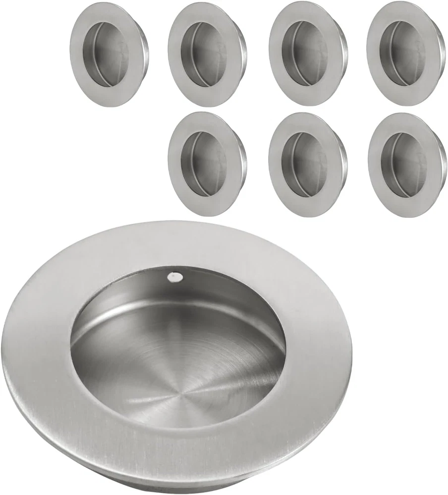 Store New Arrivals Add to Favorite View Feedback Contact 8 Pack round Sliding Closet Door Handles Diameter 2-1/2 In(65Mm) Brushed Stainless Steel Flush Pocket Pulls Recessed Bypass Door Handles, Stainless Steel Barn Door Finger Pull Set Description Finish Type Brushed Metal Type Stainless Steel Item Package Quantity 8 Batteries Required? No Finish Brushed Style Antique Shape Round Color Brushed Stainless Steel Special Feature Keyless, Easy to Install Material Stainless Steel Included Components Screw Item Weight 12 ounces Handle Material Stainless Steel Batteries Included? No Special Features Keyless, Easy to Install Size Dia 2-1/2 in Exterior Finish Stainless Steel Product Dimensions 2.5"L x 2.4"W Number Of Pieces 8 Seamless Integration: These round recessed pulls fit effortlessly into any door style. Chamfered edges and hand-polished finishes in matte black, brushed stainless steel, or brushed gold add a refined touch to your interior Flawless Fit: Designed with precision, these pulls perfectly match the pre-drilled holes on sliding and pocket doors. With an outer diameter of 65 mm and a groove diameter of 50 mm, they ensure a secure and snug fit Versatile Application: Ideal for sliding closet doors, pocket doors, barn doors, and even kitchen cabinets. These pulls offer a versatile solution that enhances both functionality and aesthetics across various spaces Invisible Design: Mounting screws are cleverly hidden on the top surface, ensuring a clean and uninterrupted look. The real round back box securely anchors the pull without compromising the door's sleek appearance Smooth Operation: Enjoy a comfortable grip and smooth operation with finely chamfered edges. Each pull is carefully crafted to offer a pleasant tactile experience, making door usage effortless and stylish Product Description 1 Recessed Design 2 Easy to Install 3 Beautiful Plating Recommend Add to Cart Add to Cart Add to Cart Add to Cart Add to Cart Add to Cart Add to Cart Customer Reviews 4.7 out of 5 stars 81 4.4 out of 5 stars 85 4.4 out of 5 stars 85 4.5 out of 5 stars 277 4.5 out of 5 stars 277 4.5 out of 5 stars 277 4.2 out of 5 stars 4 Price $9.99 $ 9 . 99 $9.99 $ 9 . 99 $6.99 $ 6 . 99 $7.99 $ 7 . 99 $9.99 $ 9 . 99 $13.99 $ 13 . 99 $9.99 $ 9 . 99 Quantity Per Pack 2 2 2 2 2 2 4 Flat Size(mm) 70x70mm 70x70mm 65x65mm 120x40mm 150x50mm 180x60mm 120x40mm Cavity Size(mm) Dia 54mm Dia 60mm Dia 50mm 254x90mm 30x120mm 35x146mm 254x90mm Black ✔ ✔ ✔ ✔ ✔ ✔ ✔ Brushed Stainless Steel ✔ ✔ ✔ ✔ ✔ ✔ ✘ Gold ✔ ✔ ✔ ✔ ✔ ✔ ✘ ABOUT US We offer the best prices around on high quality products. Our E-store includes media such as books, movies, music and games while offering electronics, toys, sporting apparel, clothing, tools, general home, garden items and more. SHIPPING We are always working hard to ensure your package arrives as soon as possible. Please understand that some factors like weather, high postal traffic, and the performance of shipping companies are outside of our control. We offer free shipping to the lower 48 states and ship within 2 business days of payment, usually sooner. We do not accept P.O. Boxes. Please provide a physical address. For shipping outside of the continental USA, we only use eBay's Global Shipping Program.The item is shipped to KY and then sent to the rest of the world. International customers are responsible for all duties and taxes. Continue to check out in order to calculate costs for shipping the item to your country. Messages regarding eBay's Global Shipping Program MUST be directed at eBay EXCLUSIVELY. RETURNS We offer a 30-Day Return Policy on items which you are not completely satisfied with. You have the option for a full-refund or an exchange of the item. No returns are available on items shipped outside of the USA. PAYMENT We accept PayPal. CONTACT US This page content is yet to come Please ad us to your favorite seller and visit again later Thank You CUSTOMER SATISFACTION We try our very best to make sure every customer is completely satisfied. If there's a problem, message us! We're happy to help. WE ACCEPT Copyright © 2021 AutoDS. | All Rights Reserved