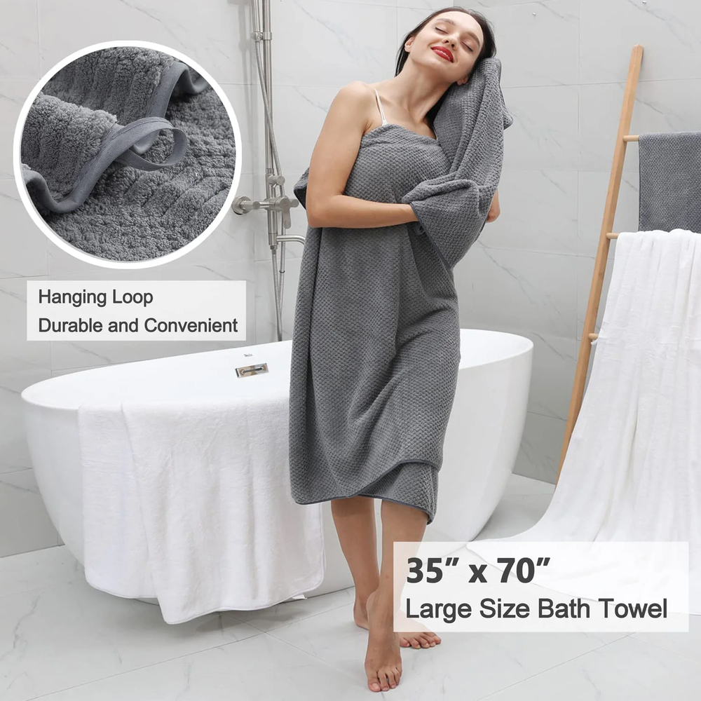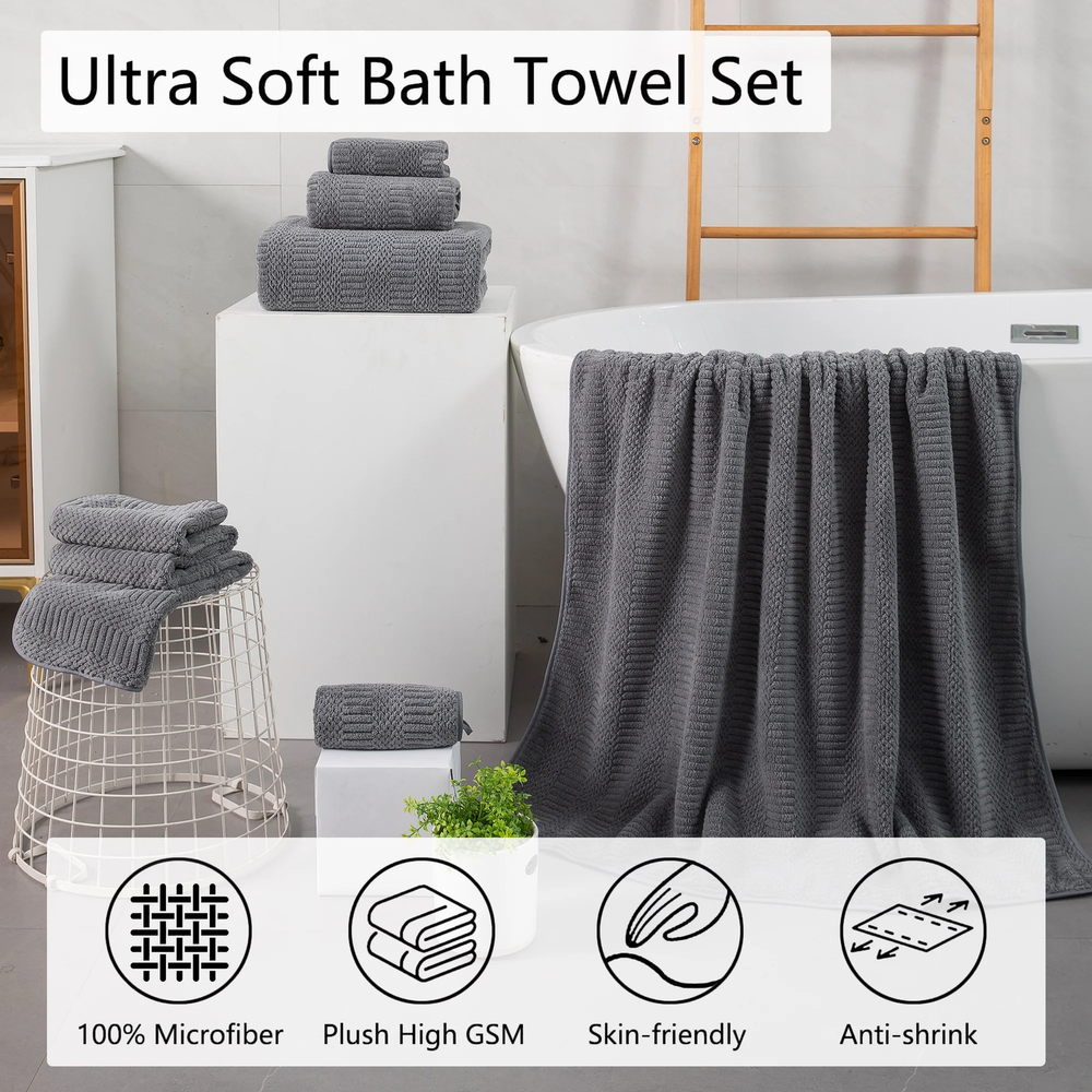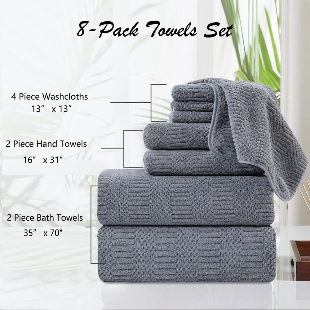 8 Piece Oversized Dark Gray Bath Towel Set-2 Extra Large Bath Towel Sheets, 2 Ha