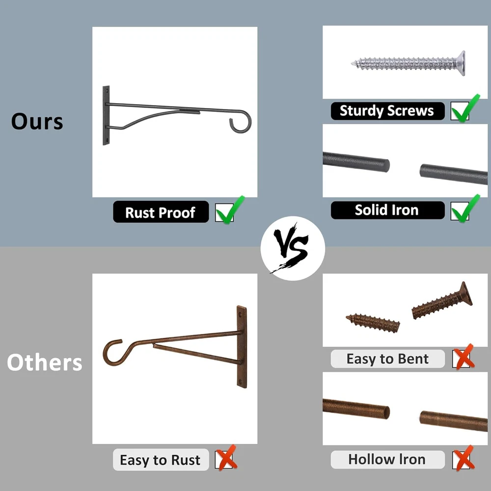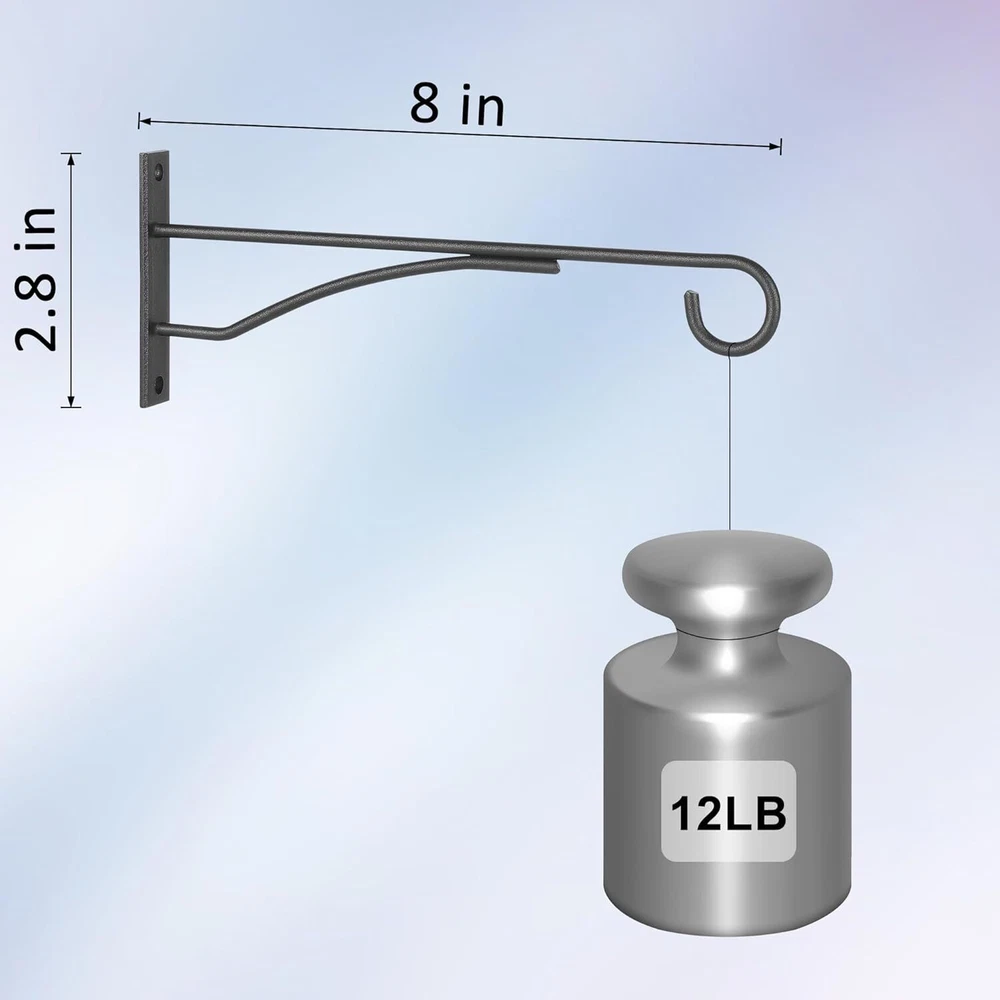 8" Plant Hangers 6 Pack, Hanging Bracket for Wall Fence Porch Black Product Details Color: Black Brand: Eyrosa Material: Metal Finish Type: Polished Mounting Type: Wall Mount Weight Limit: 12 Pounds Special Feature: Heavy Duty, Rust Resistant Recommended Uses For Product: Wall, Outdoor, Indoor Item Weight: 0.82 Pounds Number of Hooks: 6 Minimum Weight Capacity: 12 Pounds Maximum Weight Recommendation: 12 Pounds Manufacturer: Eyrosa Item Weight: 13.1 ounces Package Dimensions: 8.66 x 7.09 x 0.75 inches Finish: Polished Maximum Weight Capacity: 12 Pounds Special Features: Heavy Duty, Rust Resistant Usage: Outside Batteries Included?: No Batteries Required?: No Color: Black Brand: Eyrosa Material: Metal Finish Type: Polished Mounting Type: Wall Mount Value Package: Six Planter hangers. Not only useful, but also affordable Load 12 Pounds: 8" Plant hanger can hold max 12 pounds, its suitable for plants, flowers, feeder, wind chime Small & Strong: Outdoor plant hook has a simple yet sturdy design, Minimalist shape is nice for a variety styles Easy Installation: It can be easily mounted indoors or outdoors, wherever you want to hang your plants Long Lasting: The plant hanger is made by metal, its durability