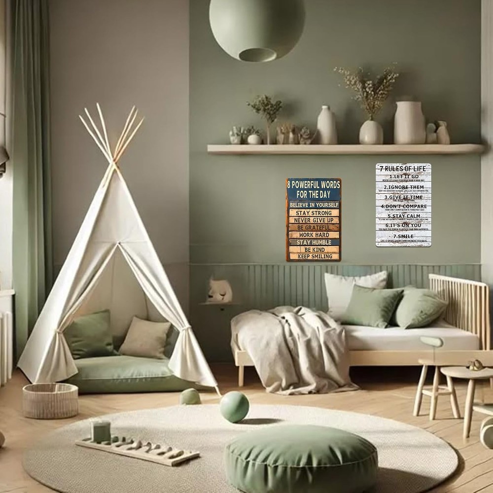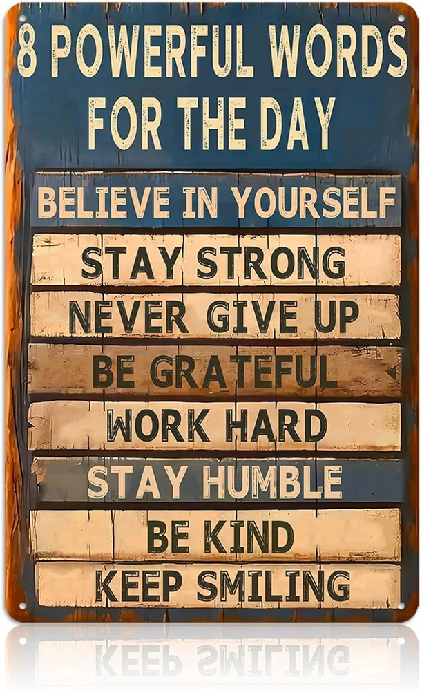 This metal tin sign is a fantastic addition to my home decor! The vintage look and sturdy quality give it a cool, retro vibe, and the motivational words add a nice touch of inspiration. Perfect size for any wall, and the colors pop beautifully. Highly recommend for anyone looking to spice up their space!
