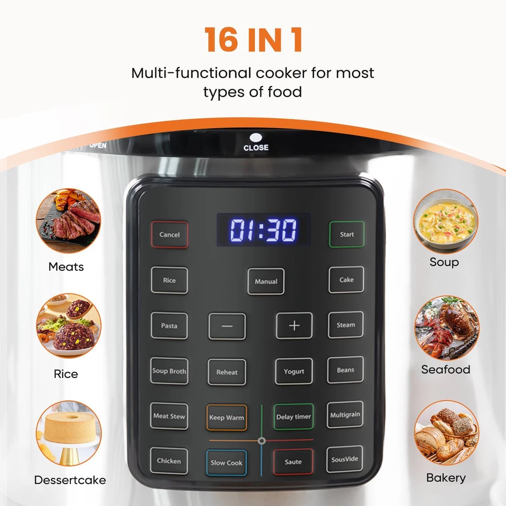 Store Categories Store Categories Chair Fabric Vanity Chair Mesh Office Chair Leather Office Chair Bar Stools Dining Chair Gaming Chair Storage Chair Outdoor Supplies Bed and Beddings Bed Frame Nightstand Mattress Bedings Desk Electric standing Desk Computer Desk Classic Desk Dresser Table Dining Table Mirror Electric Furniture Pet supplies Sofa Storage box/shelf Office supplies Kitchen supplies Nightstands Other 16 IN 1 Multi-functional Pressure Cooker Product Description 【Large Capacity】This electric pressure cooker offers a generous 8QT capacity, making it perfect for family meals, gatherings, and meal prepping. 【Safe and Reliable】Safer than a traditional gas pressure cooker, our electric cooker ensures your kitchen remains a secure environment while providing quick and efficient cooking. 【Durable Stainless Steel】Constructed with high-quality stainless steel, this electric pressure cooker is not only durable but also easy to clean, ensuring longevity and convenience. 【Versatile Cooking Options】Our electric cooker offers an array of cooking functions to suit your culinary needs, whether you're slow cook, steam, yogurt, saute, meat/stew, cake, porridge, multigrain, rice, soup, bean/chili, poultry. 【User-Friendly Design】Featuring an intuitive interface and simple controls, this product is designed for ease of use, making it a perfect addition to any kitchen. 【Delay Function】You can freely choose the time to delay, and make a reservation, automatic heat preservation function at the same time to fully save your time. 【Easy to Clean】Inner liner and complimentary accessories including rice scoop, measuring cup, and steamer rack are dishwasher safe. Payment Policy Shipping Policy Returns Policy Contact Us Payment Policy Pay secure with any major credit card through PayPal and eBay manages payments. For International buyers, Import d u ties, tax and charges are not included in the item price or shipping charge. Shipping Policy We only sh ip to US mainland 48 states. Contact Us if you live in Hawaii, Alaska or Virgin Islands. We offer UPS delivery in optional which can make it faster, charge additional Shipping fees. We "Do Not" offer shipping to APO or FPO or PO Boxes addresses . If you place an order with a APO/FPO/PO Box address, we will not ship until we receive a physical address. Returns Policy If any item is found to be missing parts or damaged please contact us via the "Contact Seller" option within 14 days of delivery so that we can provide you with the details on how to resolve your issue. You can return unused items to us by contacting us within 30 days of delivery. Please contact us using the “contact seller” option for important information, before attempting to return the goods. For any exchange or refund, we need the original receipt or a record of the purchase in our system, and the product must be in its original condition, including the box, UPC bar code, packaging, and all the accessories. Please note that for all returns deemed unsuitable, we are not responsible for the return shipping and are unable to refund this cost. Please do not ship any goods to any address without our authorisation as it might lead to you not receiving your refund. [Please do not initiate a return without our authorisation as this could result in a delay in issuing your refund. Contact Us We want you to be satisfied with your purchase. However, if you have any issues regarding your order, we have a dedicated customer service centre who will be delighted to help and resolve any issues that may arise. We strive for 100% customer satisfaction at all times. If you are not satisfied with your purchase or experience with our company, please do not hesitate to contact us. We will do our best to resolve this for you. Please check Business seller information or email through the eBay messaging system. You will need to select the "contact the seller" option (found on your eBay Order). We aim to respond within 24 hours. Our office opening hours are Monday to Friday, 9 am to 5 pm. Copyright © 2023 Dianxiaomi