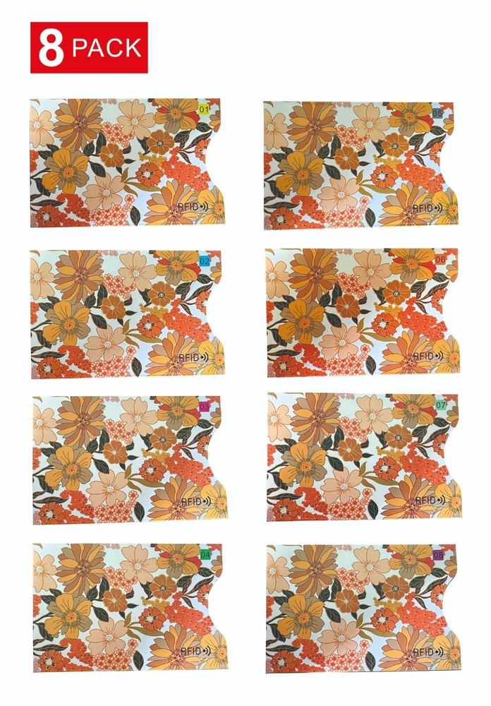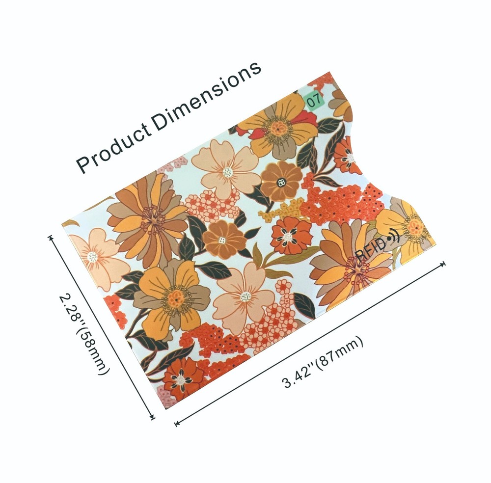 Specification Color: Yellow Flowers Material: Paper Aluminum Foil Size: 8.7 * 5.8 cm (card sleeve) Printing: four-color printing Thickness:0.30 mm Quantity: 8 PCS Features Advanced RFID secure sleeve designed to protect credit cards, money cards, identification cards from electronic fraud or theft;Designed to defend against RFID signals 13.56 MHz; RFID shields are a superb debit card protector to provide superior travel security. Made from high grade ultra-lightweight durable material, water & tear resistant. Slim profile design fits easily into your wallet or purse without taking up extra space. Engineered to allow you to freely slip your card in and out of the sleeve with ease. Snug fit with no modifications required. Perfect for traveling & everyday use. RFID sleeve with electronic armor is the identity theft protection for your bank cards; the credit card and ID holder prevents electronic access to your cards; valuable credit card protection, the ID card protector to block scanning and skimming. The Set of card sleeves including 8 pieces of RFID card holders. We make No.1-No.8 on the surface of card holders. You could take A Credit Card to Card Holder No.1, and you could take B Saving Card into our Card Holder No.2 separtely...... Finially, your cards will be kept very well, and you will get it quickly when you need it.