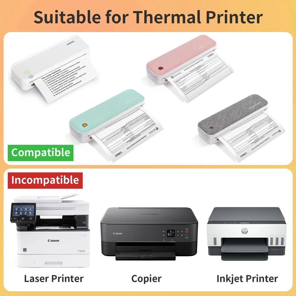 8 Rolls Thermal Printer Paper 8.5" x 11" US Letter Size Quick-Dry Thermal Paper 8 Rolls US Letter Thermal Printer Paper 8.5" x 11" Multipurpose Thermal Paper for Thermal Printer 8 Rolls thermal printer paper, all standardized to the US Letter Paper Size - 8.5” x 11'' Each roll of thermal printer paper measures 8.5 inches, total 275"/roll (Can print 25 sheets of 8.5 "x11"), providing ample space for printing various types of documents, images, labels, and more. The thermal paper comes in a roll format, allowing for easy installation and carry in the thermal printer. Wide Printer Compatibility: Tailored to work with portable letter size thermal printers. Thermal paper 8.5 x 11 compatible with Munbyn, Jadens, HPRT, Phomemo, Aixiqee, Gloryang and other thermal printers. Inkless: No need to warry about out of ink Smooth Printing: thermal paper use advanced thermal technology. This paper delivers smooth and clear printing results consistently. The quick-drying thermal paper ensures that prints are legible, and efficient every time. Wide applications: Great for printing student homework, office, receipt, work from home, home, travel, ontracts, agreements, homework, question collections, and more. Multilpurpose thermal paper. Quantity: 8 Rolls US Letter Size paper (200 Sheets)