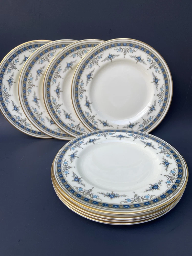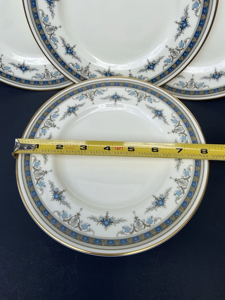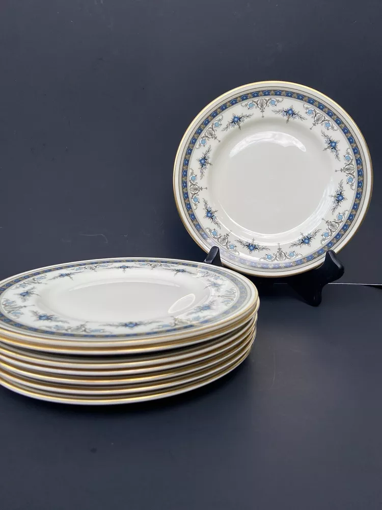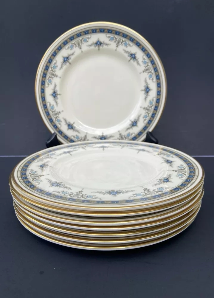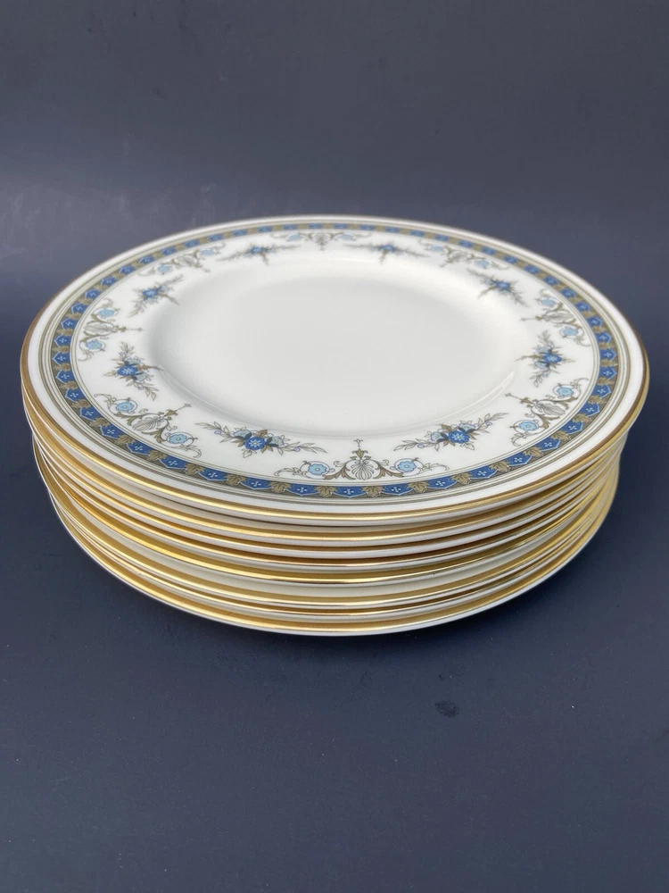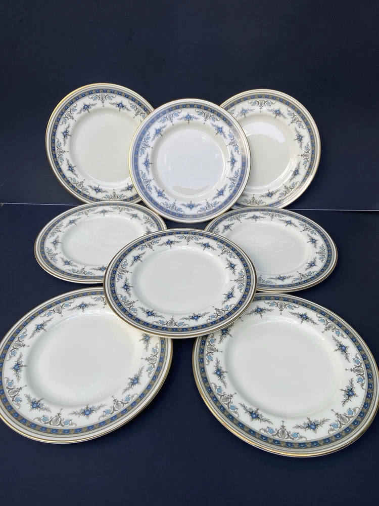 8 Vintage 1973 limited edition Minton GRASMERE BLUE Luncheon/Salad Plates Gold Trims Each measures approximately 8 inches wide in diameter. All are in excellent condition and appear unused. Few plates noted with few surface scratches,seen best at an angle under bright lights, likely occurred from shearing and stacking. Very minimal gold wear such as orange discoloration noted. No chips, no cracks nor repairs found. All of the pictures were taken in natural daylight to capture the closest actual shade of color; however and in person, the plates might be slightly brighter or darker than the photos due to camera’s autofocusing features. The set weighs approximately 5 pounds 12 ounces without packaging material. Will package with great care and thank you kindly for your consideration. REASONABLE SHIPPING: Calculated shipping: Weight and distance based shipping via USPS Ground Advantage domestically USA from South Florida. USPS Ground Advantage is lowest shipping cost. Estimated delivery of 2-8 business days. Shipping costs is based on item(s) weight including packaging materials and the distance from the seller’s zip code to the buyer’s zip code. Buyers whose shipping address/zip code is in the East coast of USA tend to have higher shipping costs as distant is longer from seller’s South Florida zip code. Ships globally via Ebay International Shipping Delivery.