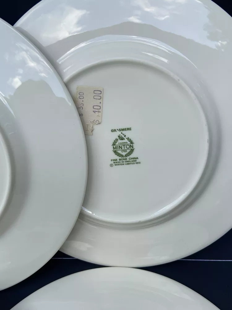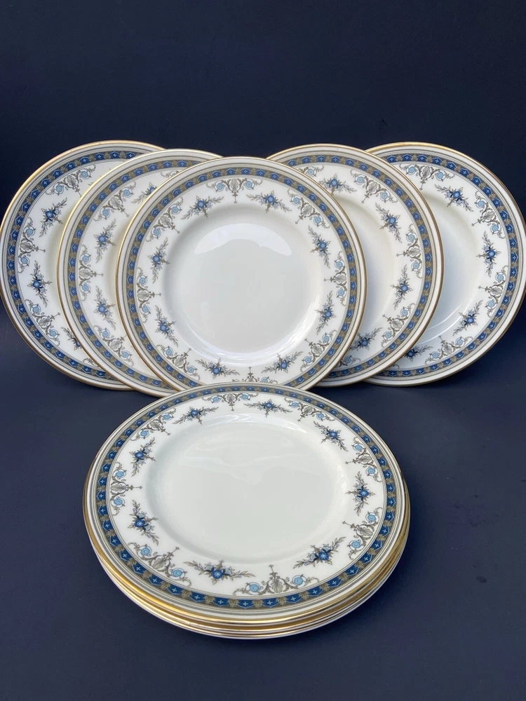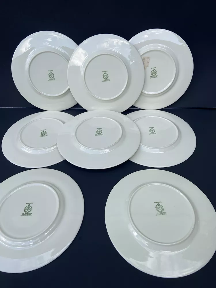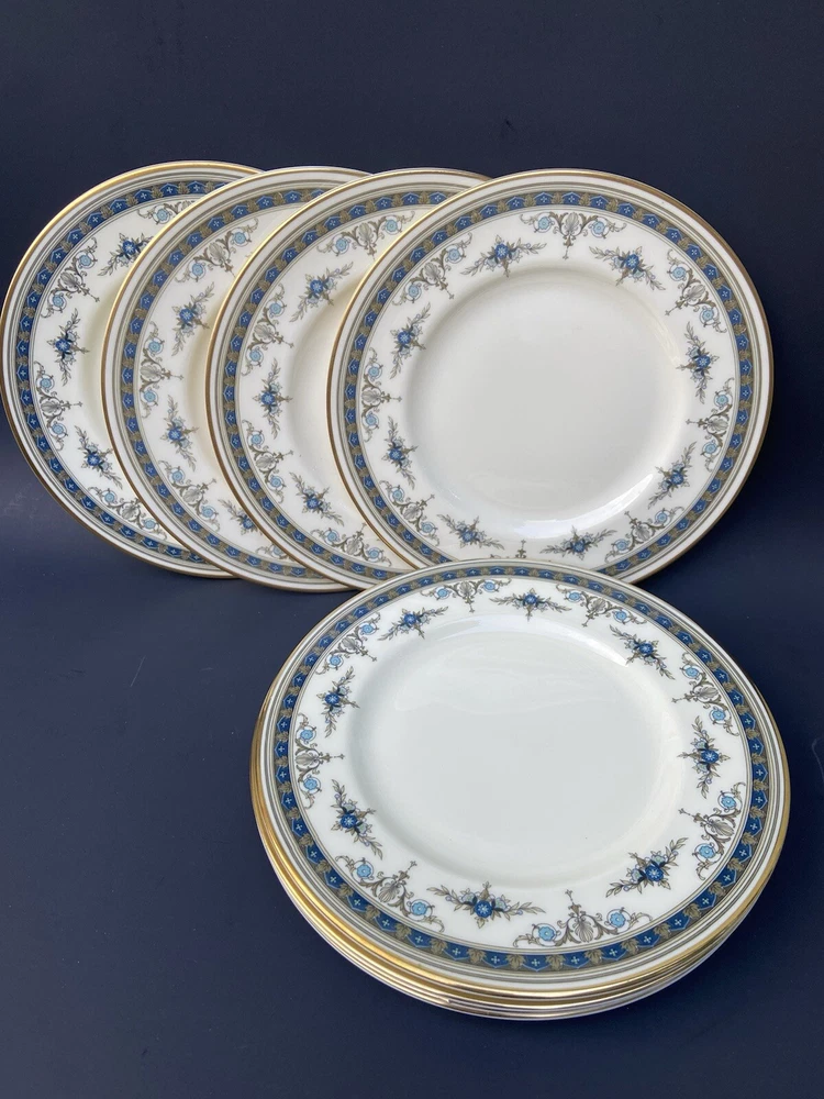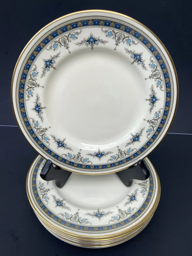 8 Vintage 1973 limited edition Minton GRASMERE BLUE Luncheon/Salad Plates Gold Trims Each measures approximately 8 inches wide in diameter. All are in excellent condition and appear unused. Few plates noted with few surface scratches,seen best at an angle under bright lights, likely occurred from shearing and stacking. Very minimal gold wear such as orange discoloration noted. No chips, no cracks nor repairs found. All of the pictures were taken in natural daylight to capture the closest actual shade of color; however and in person, the plates might be slightly brighter or darker than the photos due to camera’s autofocusing features. The set weighs approximately 5 pounds 12 ounces without packaging material. Will package with great care and thank you kindly for your consideration. REASONABLE SHIPPING: Calculated shipping: Weight and distance based shipping via USPS Ground Advantage domestically USA from South Florida. USPS Ground Advantage is lowest shipping cost. Estimated delivery of 2-8 business days. Shipping costs is based on item(s) weight including packaging materials and the distance from the seller’s zip code to the buyer’s zip code. Buyers whose shipping address/zip code is in the East coast of USA tend to have higher shipping costs as distant is longer from seller’s South Florida zip code. Ships globally via Ebay International Shipping Delivery.