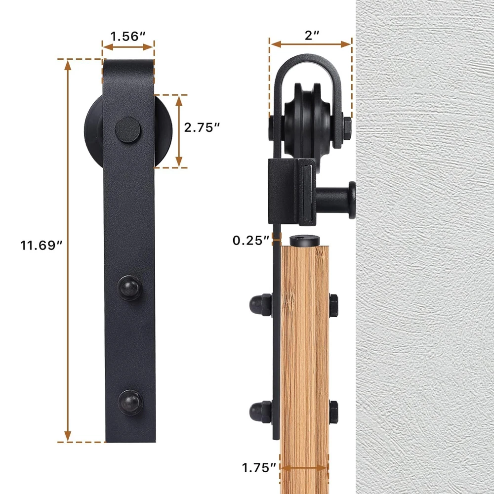 Heavy Duty Sliding Barn Door Hardware Single Track Bypass Double Doors Kit Black
