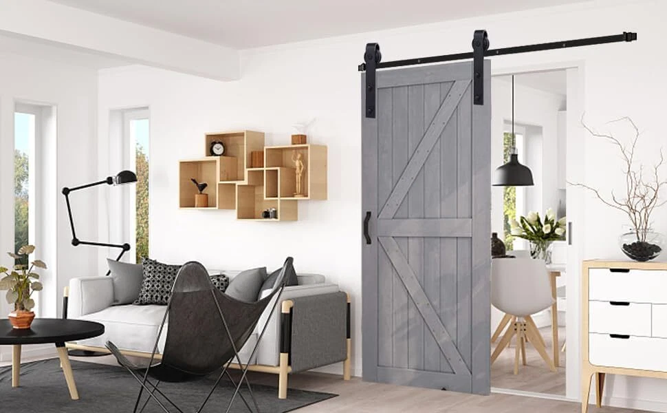 8 ft Sliding Barn Door Hardware Kit, Smoothly and Quietly - Simple and Easy t...