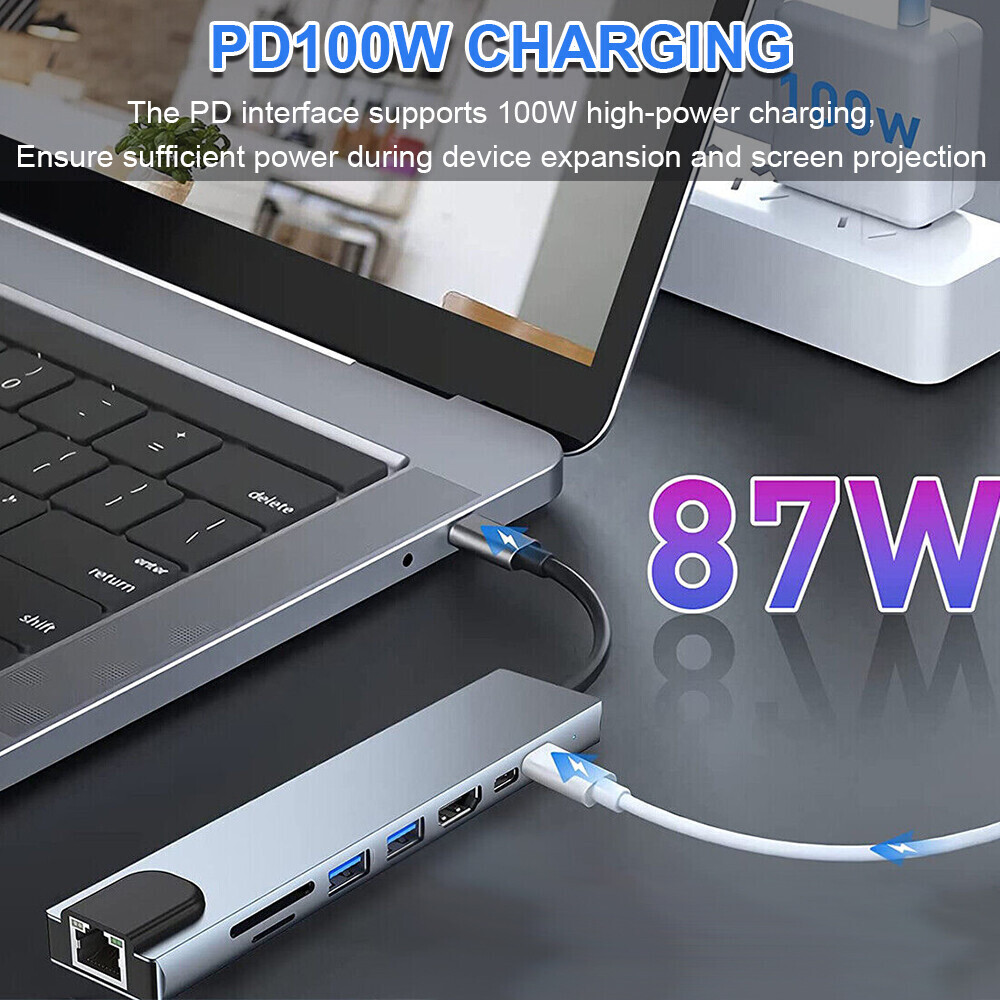You may also like 8-Push 4-Pins Massage Chair Remote Control 6806 Compatible AM989 Massage Chair 63.8 USD 67.16 USD Free shipping 5% off 1080P 1x8 HDMI Splitter 1 in 8 Out, 8 Port Powered HDMI Splitter Multi Monitor 30.39 USD 31.99 USD Free shipping 5% off Car Cup Phone Holder 2in1 Car Cup Holder with Phone Mount, Cell Phone Cup Holder 13.29 USD 13.99 USD Free shipping 5% off Control Circuit Board Dashboard Assembly Set for Ninebot Segway ES1 ES2 ES3 ES4 28.49 USD 29.99 USD Free shipping 5% off Mini Fridge Stand Cart with Wheels - 220 LBS with Charging Station For Kitchen 59.99 USD Free shipping Waterproof Smart Bluetooth Fingerprint Padlock&keys Heavy Duty Locker Lock APP 46.54 USD 48.99 USD Free shipping 5% off 8 in 1 USB-C Hub Type C To USB 3.0 4K HDMI PD Adapter For iPhone Macbook Pro/Air Feature: -You can connect USB drivers, external disks to MacBook Pro, and other USB-C port equipped devices with this 8 in 1 Type C adapter. 4K HDMI-compatible video output, 1 Ethernet RJ-45 Port, 2 USB 3. 0 Ports, 2 Type C PD port, SD & TF card reader. It is also portable. You just need to slip this adapter into your bag for movies or business presentations on-the-go, etc. -4K 30 Hz or 2K 60 Hz displays are supported by the HUB HDMI-compatible Port. The Type-C to HDMI-compatible Adapter lets you extend the screen of your device and receive images in 4K UHD or full HD 1080P on HDTVs and PC Monitors or Projectors. -You can download more quickly and steadily when working or playing on the RJ45 Ethernet connection. Instant Ethernet is available at speeds of up to 100Mbps. -Three 3.0 USB ports to support transmission speed rates of up to 5 Gbps, which can connect to your smart phone, tablet and hard drive for effortless data transfer. -This product adopts cutting-edge heat dissipation technology to increase working life and provide superior performance, making it reliable and safe when 8 ports are used. Description: The 8-in-1 multifunctional Type-C HUB multiport adapter can solve the problem of a single device interface, and it can connect a variety of devices. The product is equipped with 4K HD dual-screen display, which can be connected to large-screen devices such as projectors, TVs, monitors, etc., and greatly improve office efficiency. Specification: Material: Aluminum Alloy Color: Silver HDMI-compatible Output Resolution: Up to 4K UHD Gigabit Ethernet: Up to 100Mbps USB-C Charging Port: Up to 60W Type: 8 in 1 USB C Hub Multiport Adapter 1 * 4K Ultra HD HDMI-compatible Port - Connect the device to the HDMI-compatible Port, your TV or computer or projector will deliver you 4K * 2K (3840 * 2160) high quality video and audio. Enjoying your big screen time. 1 * Ethernet - Max Ethernet speed 1000mbps. 1 * USB C PD Port - 3A/20V support max 87W power adapter. You can charge your phone faster while working. 1 * USB C Data Port - High Speed Power Supply Up to 4.5W Max. 1 * USB 2.0 Port- High Speed Power Supply Up to 4.5W Max. 1 * USB 3.0 Port - High Speed Power Supply Up to 4.5W Max. Supports USB flash drive, external hard drive, keyboard, mouse, printer, MP3 player etc. 2 * SD/TF Card Reader - SD/TF can work simultaneously. Read an werite speed depends on card's quality. Examples of compatible devices: Applicable to Apple MacBook, Huawei MateBook, Xiaomi notebook and Huawei P30, Mate20, Samsung S9, S10 series mobile phones. Laptop Support list: For Apple: 12-inch MacBook, 2016/2017/2018 MacBook Pro, Mac Mini/ 2018 MacBook Air For Huawei: MateBook13, MateBook, MateBook X, MateBook X Pro, MateBook E For Glory: MagicBook For Xiaomi: Air 12.5, 13.3-inch, Pro 15.6-inch, 15.6-inch GTX version, Xiaomi game book, Xiaomi game book 8th generation For HP:Pavilion x2, Spectre 13, EliteBook Folio G1, Envy 13 For ASUS:Lingyao 3, U306, U321 series, U4100, ROG series For Dell : XPS13, XPS15 For Lenovo : Xiaoxin Air 12 inches, Yoga5 Pro, Yoga900 13 inches, ThinkPad X1 Carbon 2017 For Samsung: NoteBook series, GalaxyBook series For Google : ChromeBook Pixels, PixelBook Pen For Razer: Blade Stealth Spirit Blade, Spirit Blade Stealth Edition For Microsoft : Surface Book2, Surface GO PC Support list: For Apple: 2018 11-inch iPad Pro, 2018 12.9-inch iPad Pro For Huawei: HuaweiM6 10.8 inch, Matepad Pro Mobile phone Support list:For Samsung: S8, S8+, S9, S9+, S10, S10+, Note 8, Note 9, Samsung Galaxy For Huawei: Mate 30, 30 Pro, 30 RS, Mate 20, Pro Mate 20X, Mate RS, P20/Pro, P30/Pro, P40/P40 Pro/P40 Pro+Mate 10/10 Pro For Glory: Note 10, V20 For Microsoft: Microsoft 950XL Microsoft 950 For OPPO: R17 Pro For LG: FGF70 (G5), V300L For One Plus: 7 Pro, 7T/7T Pro, 7T Pro McLaren Edition For Awl: Nut R1, Nut Pro 2S For Black Shark: Black Shark 2 For ZTE: Tianji 9 Package Content: 1*8 in 1 USB C Hub Multiport Adapter