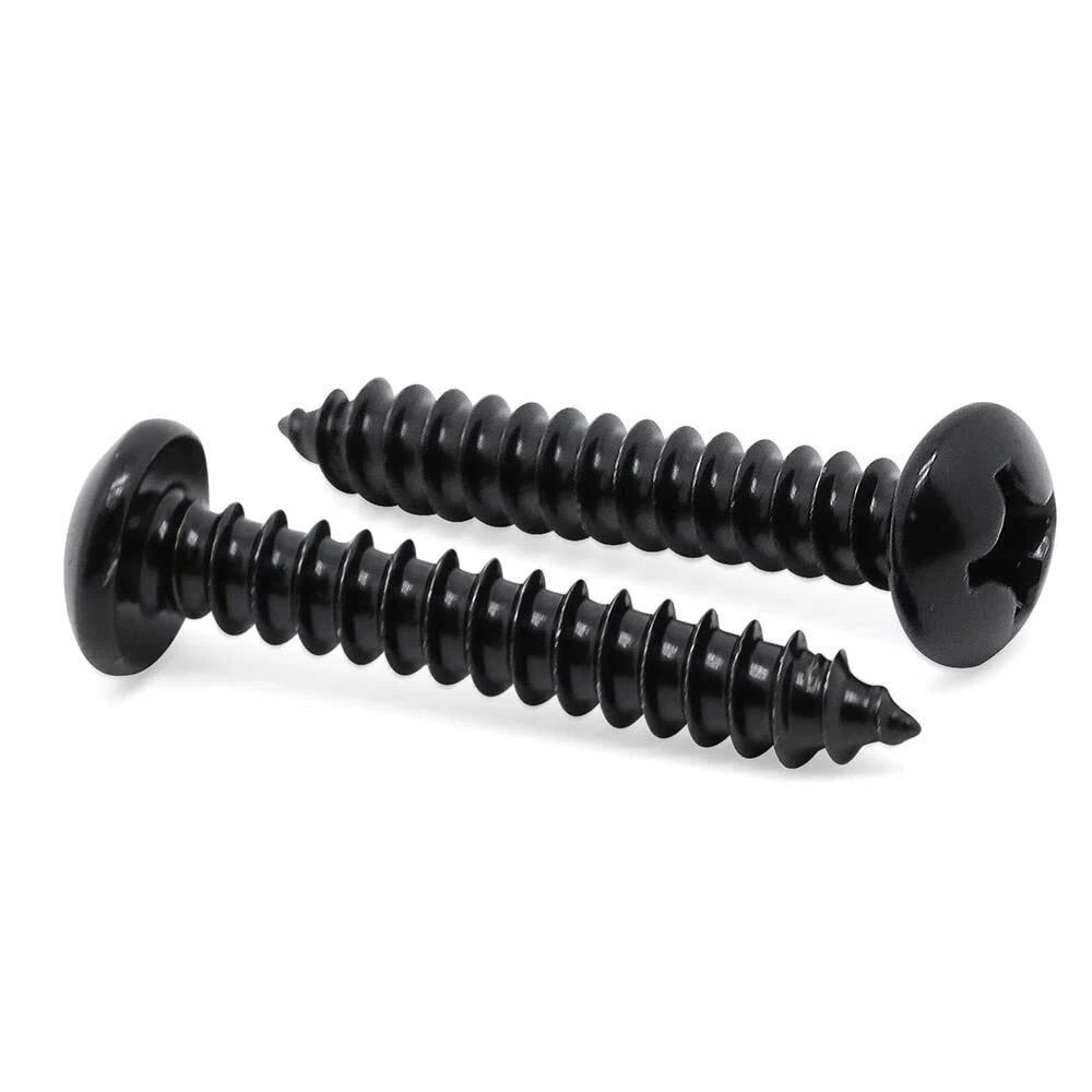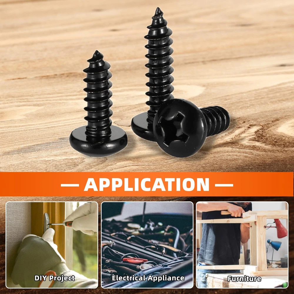 Product Specification Phillips pan heads are slightly rounded with short vertical sides. Phillips drive is x-shaped for installation with a phillips screw driver. System of Measurement: Inch Size: #8 x 1-1/2" Material: 18-8 (304) Stainless Steel Finish : Black Oxide Head Type: Pan Head Package Included 100 x Phillips Pan Head Screws #8 x 1-1/2" hardware has the highest quality on the market. Buy with confidence. Money back or exchange guarranteed. Product Type: Pan Head Sheet Metal Screws; System of Measurement: Inch. Material: Stainless Steel 18-8 (304); Finish: Black Oxide. Screw Size: #8 x 1-1/2". Package Included: 100 PCS Pan Head Self Tapping Screws #8 x 1-1/2". Used widely in wood, furtinure, and other purposes.
