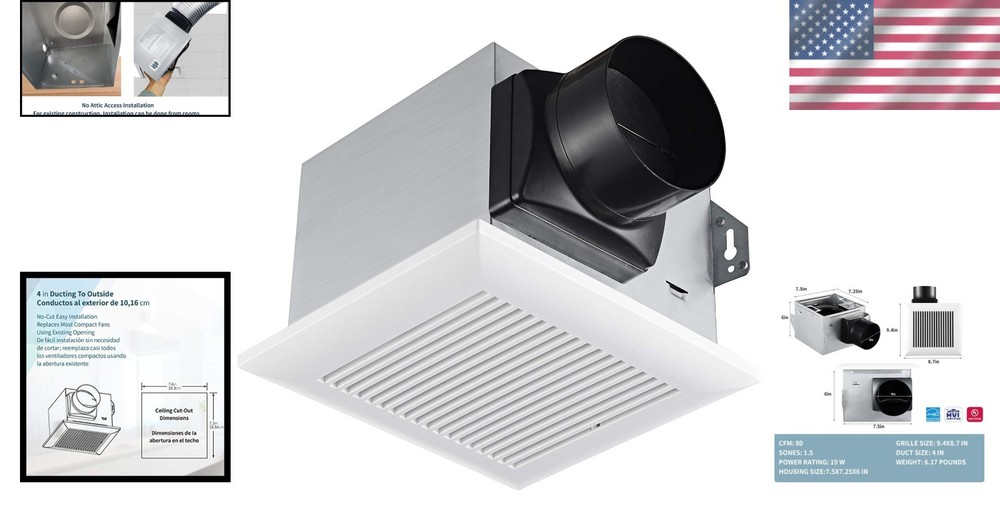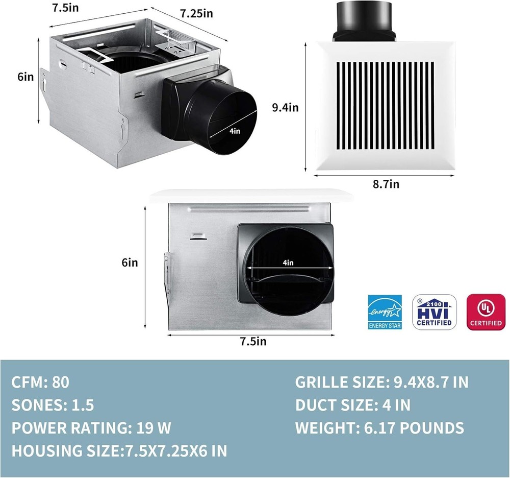 This fan is a game-changer for my bathroom! Super quiet at just 1.5 sones, yet moves air powerfully with 80 CFM. Installation was a breeze thanks to the no-cut housing, and it fits perfectly in my existing space. Love the Energy Star rating—efficient and effective. No more humidity or lingering odors, just fresh air and peace. Highly recommend for anyone looking to upgrade their bathroom fan!