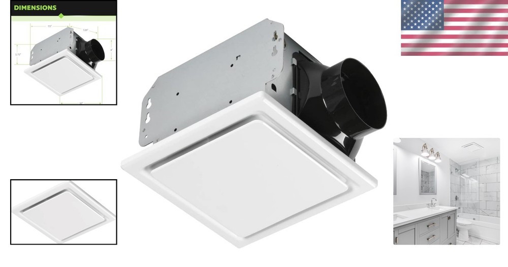 Bathroom Fan Ceiling Mount Exhaust Ventilation 80 CFM Quiet White ‹ › ‹ › ‹ › ‹ › ‹ › ‹ › ‹ › ‹ › ‹ › ‹ › Bathroom Fan Ceiling Mount Exhaust Ventilation 80 CFM Transform your bathroom into a haven of comfort and freshness with this bathroom exhaust fan. The minimalist design and efficient functionality come together flawlessly, ensuring you enjoy a relaxing experience every time you step inside. Outstanding Performance This bath fan operates at an impressive 1.5 sones at 110 CFM , efficiently managing spaces up to 110 square feet . Quietly eliminates moisture and humidity, keeping your bathroom comfortable and inviting. Odor Removal Say goodbye to harsh chemical odors with the powerful ventilation capability of this fan. Designed to swiftly remove unpleasant smells, ensuring a pleasant environment during and after cleaning. Build Quality Crafted with corrosion-resistant galvanized steel for unmatched durability. Features a sleek, modern grille style that seamlessly blends with most ceiling designs. Easy Installation The no-cut design simplifies installation, making it a breeze to mount with a ceiling opening of 7-1/2 in x 7-1/4 in x 5-3/4 in and a 4" round duct connector . Trusted Quality Assurance With a commitment to excellence, this fan meets local, national, and international industry standards. Purchase with confidence, backed by a 3- Limited . Listed and HVI Certified for exceptional safety and performance. Why Choose Our Bathroom Fan? Upgrade your bathroom with a reliable ventilation solution that combines efficiency and aesthetic appeal. Our Bathroom Fan is not just about airflow; it's about comfort, cleanliness, and creating a space you love. Enjoy the simplicity of installation and the satisfaction of a product built to last. Don't let moisture and odors define your bathroom experience—choose our Bathroom Fan today for a breath of fresh air! Shipping Free & Fast Shipping - We offer free shipping to most of the USA with a normal delivery time of 3-7 days. However, due to the current situation, additional delivery time (up to 3 weeks) may be required for some items. Alternative Carriers - We may use alternative carriers (e.g. USPS, FedEx, UPS, etc.) to ensure your package arrives safely and on time. Due to the use of multiple carriers, we are unable to provide a tracking number automatically. Handling Time - Orders are processed and shipped within 1-2 business days of receiving cleared payment. Shipping Restrictions - Shipping to Alaska, Hawaii, Puerto Rico, Guam, and other US territories may incur shipping charges or delivery restrictions. Please contact us before ordering, or your order can be refunded/cancelled. State Restrictions - There may be restrictions based on your state of purchase. For example, certain items may not be shipped to California due to state regulations. Contact for Tracking Updates - If you require tracking updates or have any concerns about the delivery of your order, please feel free to contact us, and we will be happy to assist you. Return 30-Day Hassle-Free Returns - We want you to be completely satisfied with your purchase. If you are not, you can return the item within 30 days of receiving it for a full refund or exchange. Easy Return Process - To start a return, simply contact us and we will provide you with a prepaid return shipping label and detailed instructions. Restocking Fee - There are no restocking fees for returns. However, the buyer is responsible for return shipping costs if the return is not due to a seller's error. Refund Processing Time - Refunds will be processed within 5 business days of receiving the returned item in its condition. Payment We accept all major credit cards, PayPal, and Apple Pay for your convenience. Your payment information is secure and encrypted to ensure a safe and seamless transaction. Please complete your payment within 3 days of purchase to avoid any delays in shipping. Feedback Your feedback is extremely important to us. We strive to provide the best products and customer service possible. If you are satisfied with your purchase, please take a moment to leave us a positive review. If you have any concerns or issues with your order, please contact us before leaving negative feedback. We are committed to resolving any problems and ensuring your satisfaction. Contact Us If you have any questions or concerns, please feel free to out to our customer support team. You can contact us through the eBay messaging system. We are available Monday to Friday, 9:00 am to 5:00 pm EST, and we will do our best to respond to your inquiry within 24 hours. Buy it now and enjoy a pleasant shopping experience! Unit Quantity: 1.0 Material: Plastic,Alloy Steel Features: Quiet Bath Fan,Corrosion Resistant,No-Cut Design,Easy Installation,Moisture Management,Low Noise Levels,Powerful Ventilation Room: Bathroom Mounting: Ceiling Power Source: Electric,AC Control Style: Touch Type: Exhaust Fan Ventilation System: Exhaust Fan Color: White Item Depth: 7.5 in Item Diameter: 7.25 in Item Weight: 8.5 lb Shape: Rectangle Number of Blades: 1 Number of Speeds: 1 Voltage: 120 V Finish: Steel Power: 28 W Operating Sound Rating: 1.5 dB Timer Control: Timerless