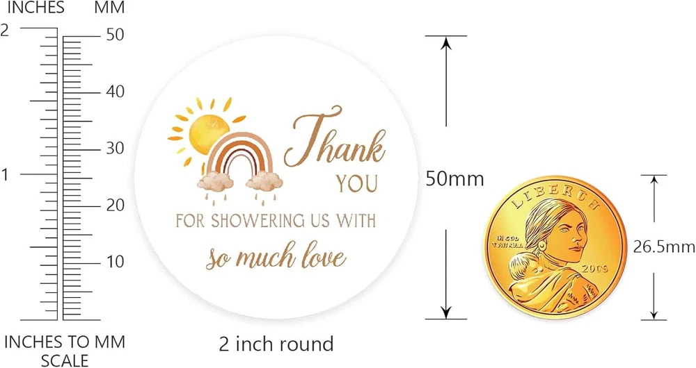Store New Arrivals Add to Favorite View Feedback Contact 80 Pcs Baby Shower Thank You Stickers, Thank You for Celebrating Stickers Labels, round Circle Labels Stickers for Baby Shower Birthday Party Favor Label Decorations (2 Inches Sunshine Rainbow) Description Reusability Single Use Item dimensions L x W x H 10.39 x 8.46 x 0.28 inches Special Feature Personalized Indoor/Outdoor Usage Indoor Color Yellow, Gold Pattern Sunshine Rainbow Recommended Uses For Product Bottle, Bag, Box Style function(f) {var _np=(window.P._namespace("DetailPageProductOverviewTemplatesJava"));if(_np.guardFatal){_np.guardFatal(f)(_np);}else{f(_np);}}(function(P) { P.when('A').execute(function(A){ A.on('a:truncate:po-attribute-truncate-8:updated', function(data) { var isTruncated = !data.truncateInstance.getIfTextFits(); var seeMoreElement = document.getElementById('po-attribute-see-more-id-8'); if(seeMoreElement) { seeMoreElement.style.display = isTruncated ? '' : 'none'; } }) }); })); Classic or Vintage (based on the 'sunshine rainbow' design and occasion of baby showers, birthdays, weddings) See more Number of Pieces 80 Item Weight 1.44 ounces Theme Love Age Range (Description) Baby Shape Round Unit Count 80.0 Count Surface Recommendation Removable Material Paper Item Form Sheet Product Dimensions 10.39 x 8.46 x 0.28 inches Cartoon Character Bubble Number of Items 80 4 Different Designs 80 Thank You Stickers: With 4 unique thank you baby girl boy sticker designs, our pack of 80 stickers adds a personalized touch to your baby shower, wedding, or birthday gifts and decorations Premium Quality: Digitally printed on premium paper, our stickers boast vibrant colors, crisp printing, and strong adhesion, ensuring they stay put on envelopes, gift boxes, and more Wide Application: Suitable for baby showers, weddings, and birthday parties, our round stickers adorn invitations, gift bags, and formal letters, serving as decorative accents for various occasions Easy to use: Easy to peel and stick, these personalized thank you stickers effortlessly adhere to candy wrappers or beverage cups without the need for tape or glue, simplifying your decorating process Cute Stickers: Whether for outdoor themed baby showers or DIY woodland party favors, our stickers enhance the charm of your event with minimal effort, making them a versatile choice for any celebration Product Description ABOUT US We offer the best prices around on high quality products. Our E-store includes media such as books, movies, music and games while offering electronics, toys, sporting apparel, clothing, tools, general home, garden items and more. SHIPPING We are always working hard to ensure your package arrives as soon as possible. Please understand that some factors like weather, high postal traffic, and the performance of shipping companies are outside of our control. We offer free shipping to the lower 48 states and ship within 2 business days of payment, usually sooner. We do not accept P.O. Boxes. Please provide a physical address. For shipping outside of the continental USA, we only use eBay's Global Shipping Program.The item is shipped to KY and then sent to the rest of the world. International customers are responsible for all duties and taxes. Continue to check out in order to calculate costs for shipping the item to your country. Messages regarding eBay's Global Shipping Program MUST be directed at eBay EXCLUSIVELY. RETURNS We offer a 30-Day Return Policy on items which you are not completely satisfied with. You have the option for a full-refund or an exchange of the item. No returns are available on items shipped outside of the USA. PAYMENT We accept PayPal. CONTACT US This page content is yet to come Please ad us to your favorite seller and visit again later Thank You CUSTOMER SATISFACTION We try our very best to make sure every customer is completely satisfied. If there's a problem, message us! We're happy to help. WE ACCEPT Copyright © 2021 AutoDS. | All Rights Reserved